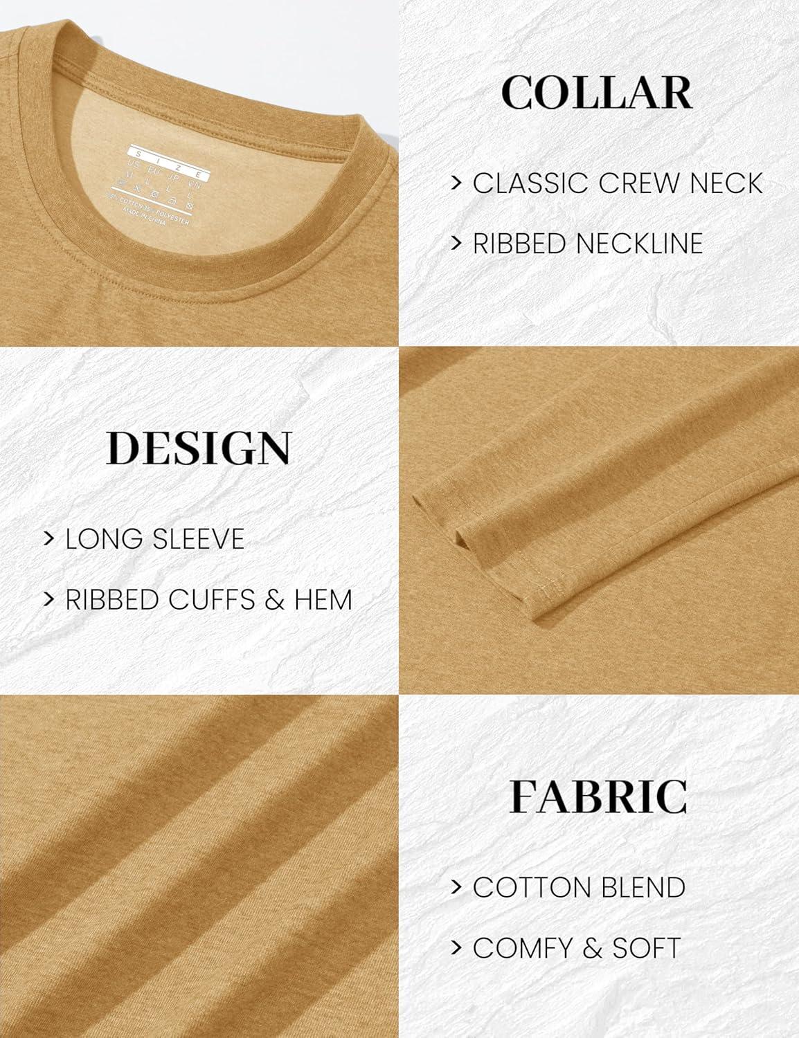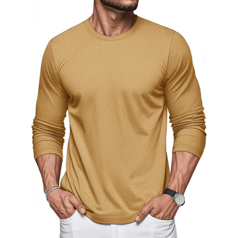 MAGCOMSEN Men’s Long Sleeve Shirts Cotton Crew Neck T Shirt Solid Casual Shirt Lightweight Work Tee Shirts(Earthy Yellow)