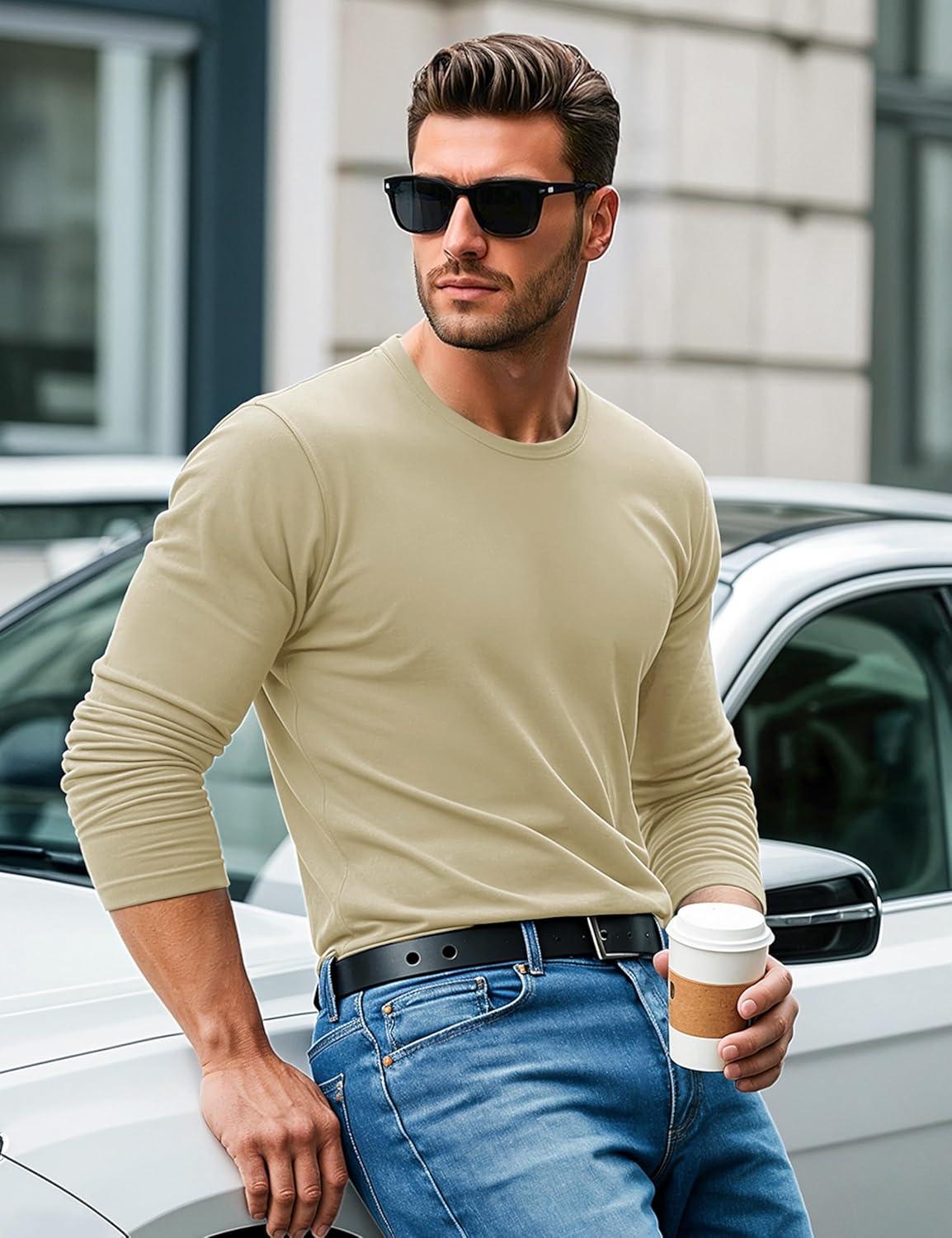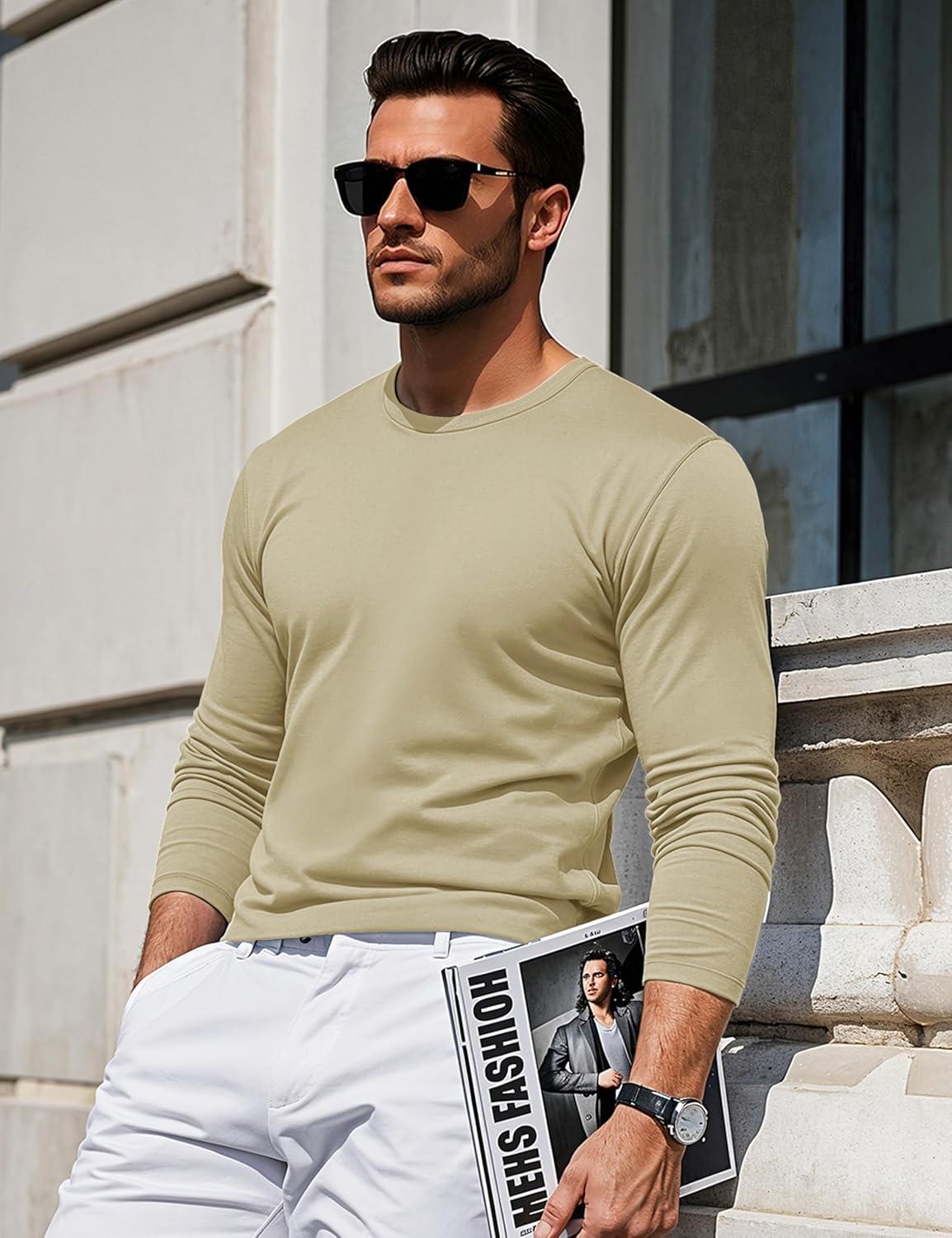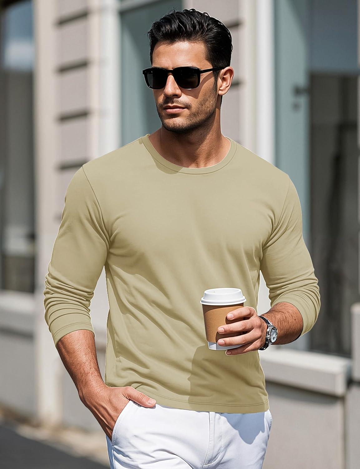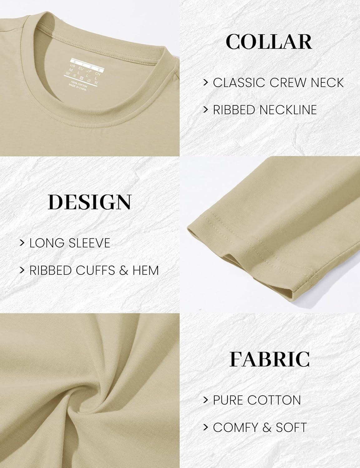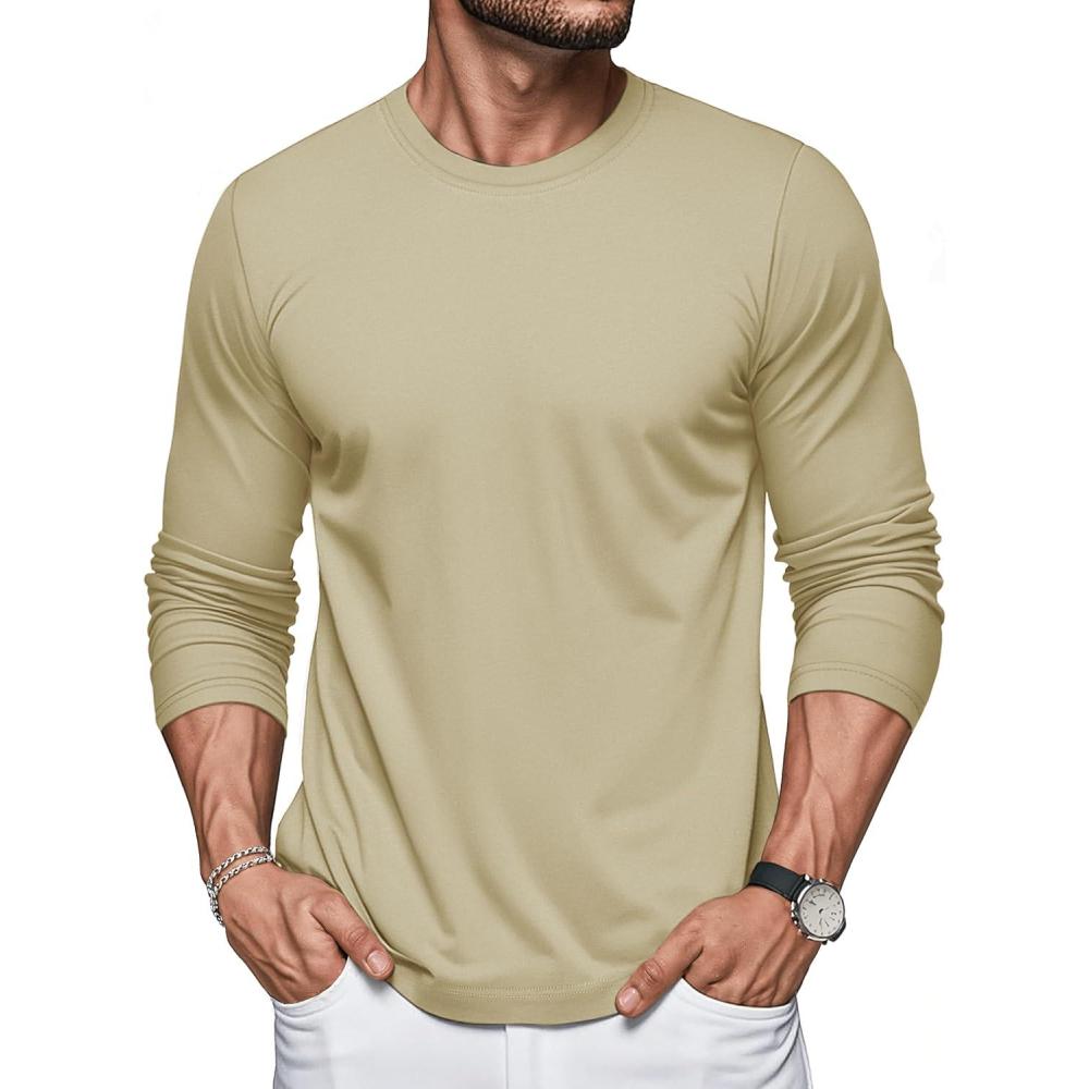 MAGCOMSEN Men’s Long Sleeve Shirts Cotton Crew Neck T Shirt Solid Casual Shirt Lightweight Work Tee Shirts(Khaki)