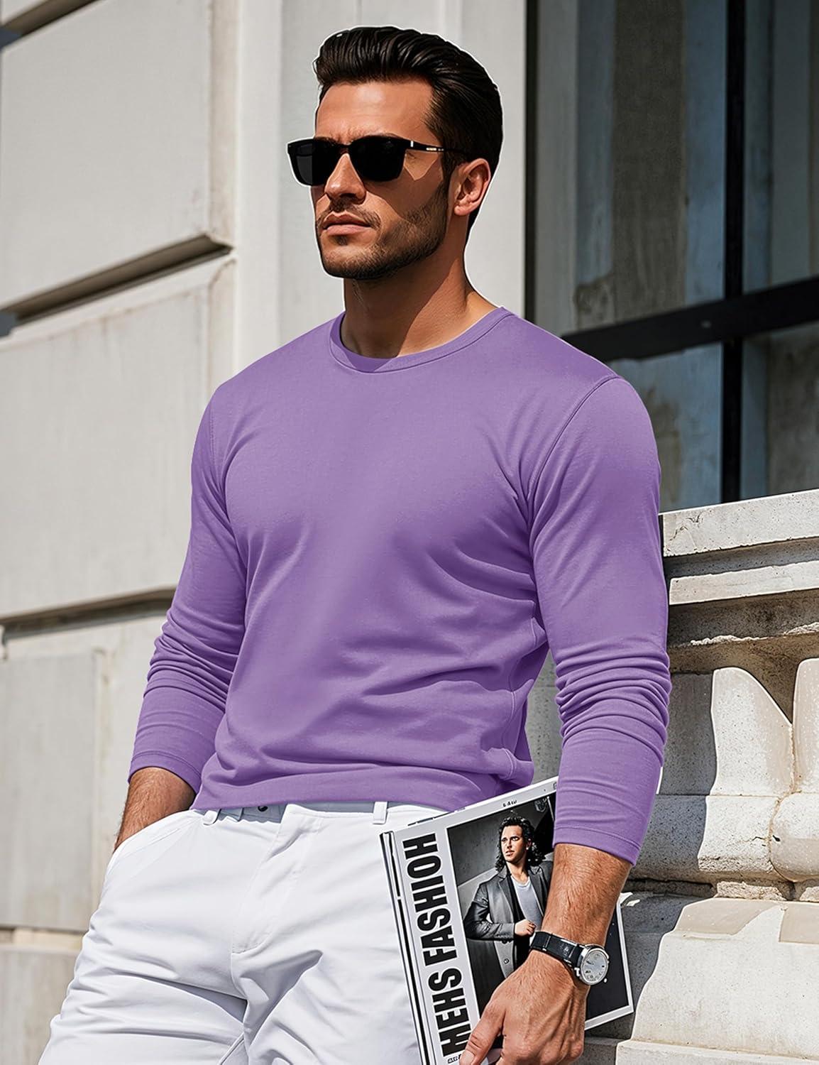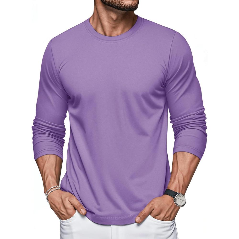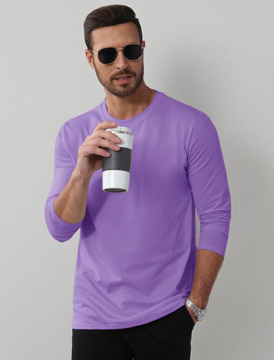 MAGCOMSEN Men’s Long Sleeve Shirts Cotton Crew Neck T Shirt Solid Casual Shirt Lightweight Work Tee Shirts(Light Purple)