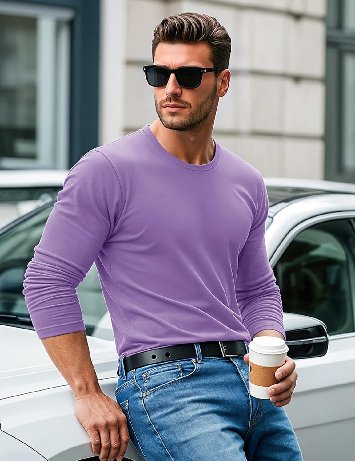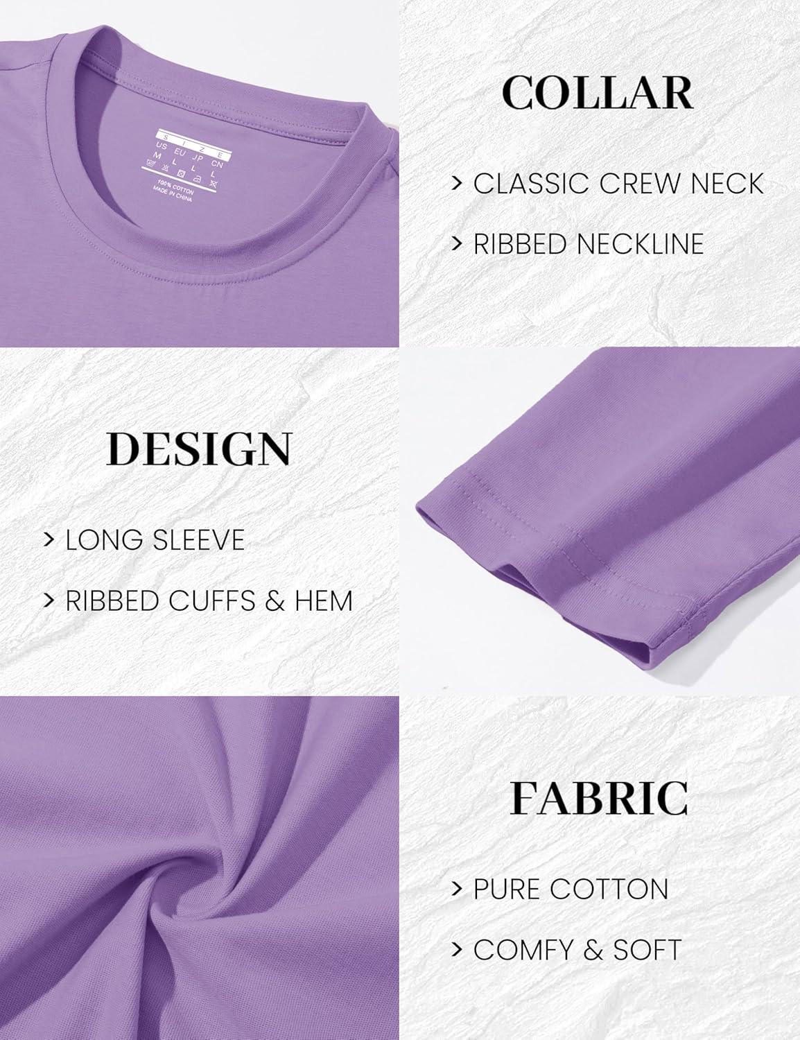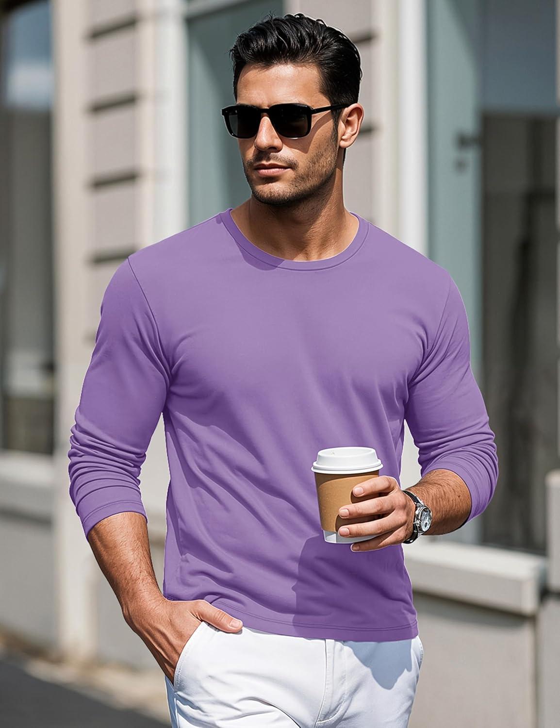 MAGCOMSEN Men’s Long Sleeve Shirts Cotton Crew Neck T Shirt Solid Casual Shirt Lightweight Work Tee Shirts(Light Purple)