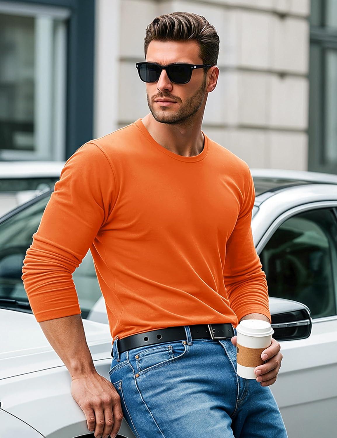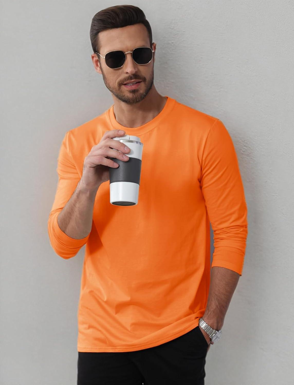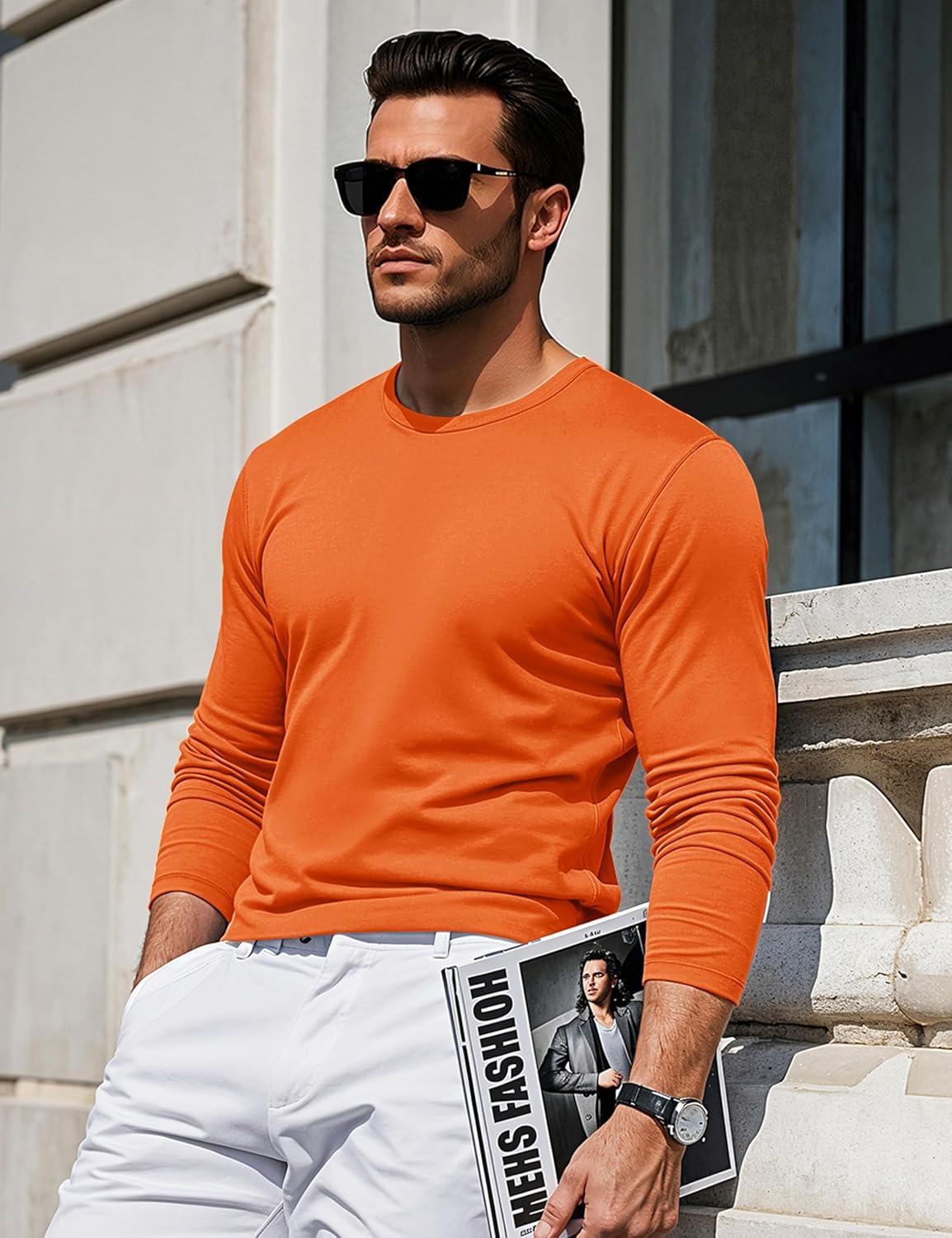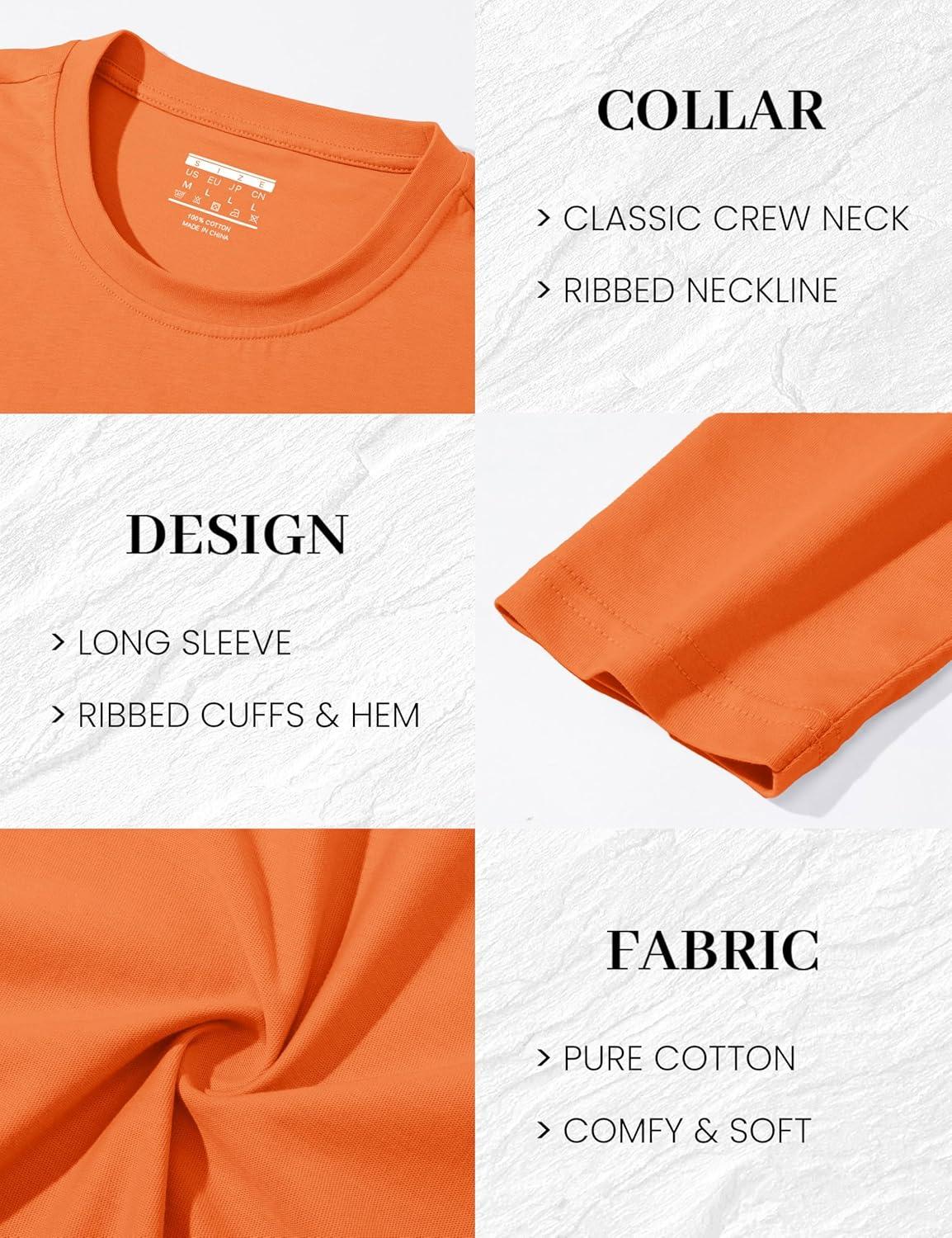 MAGCOMSEN Men’s Long Sleeve Shirts Cotton Crew Neck T Shirt Solid Casual Shirt Lightweight Work Tee Shirts(Orange)