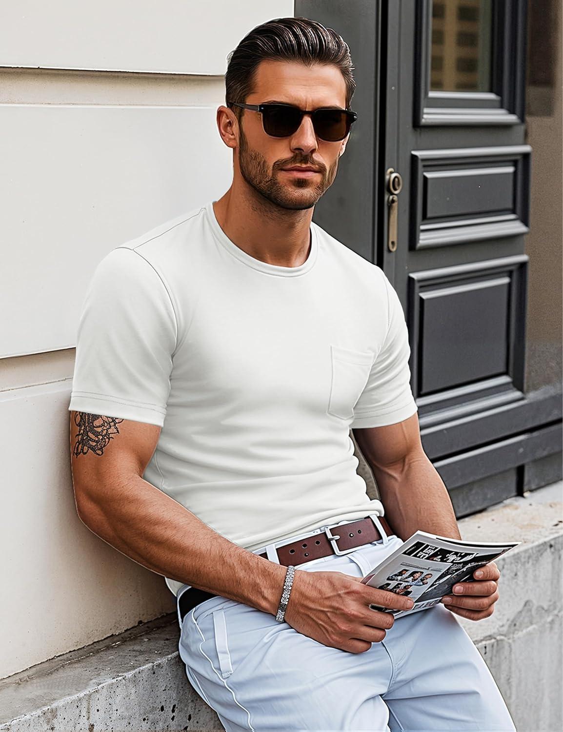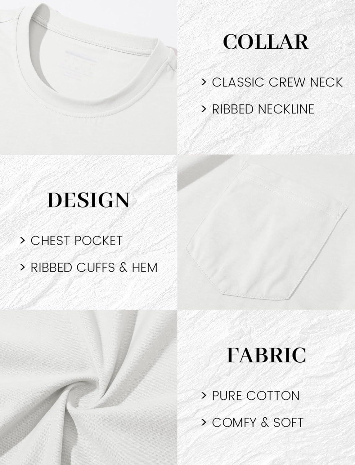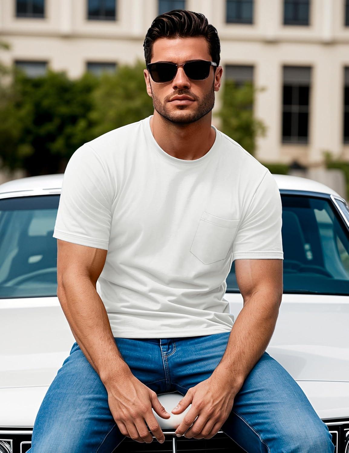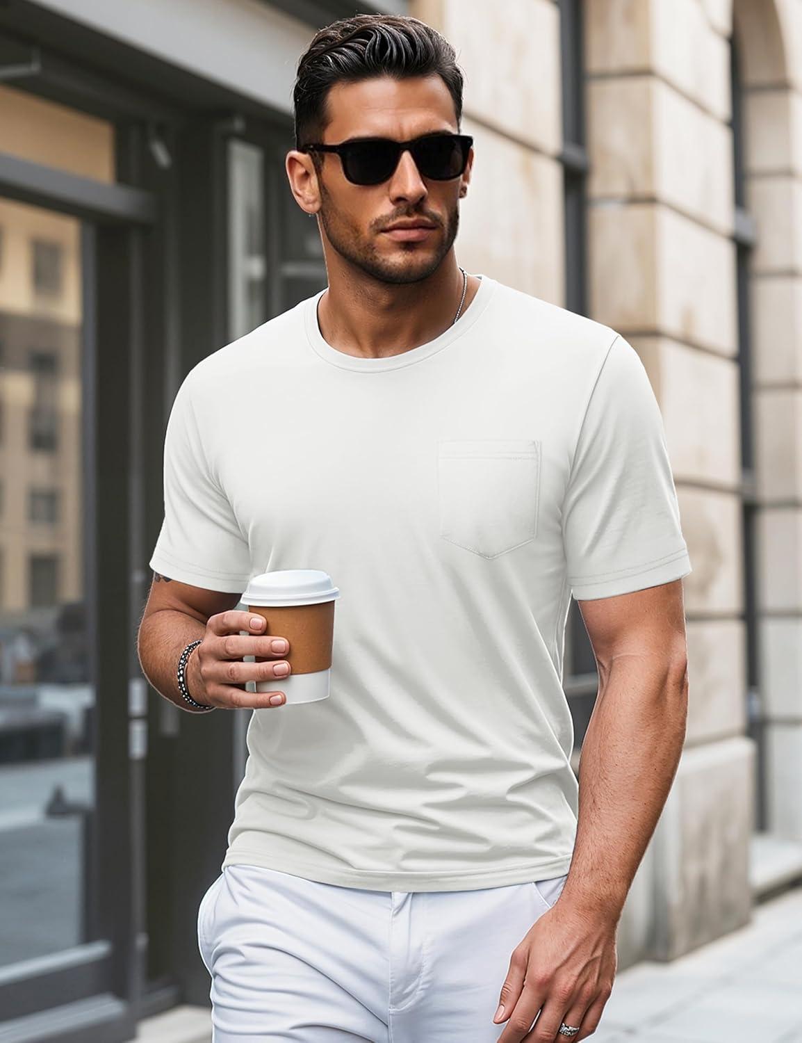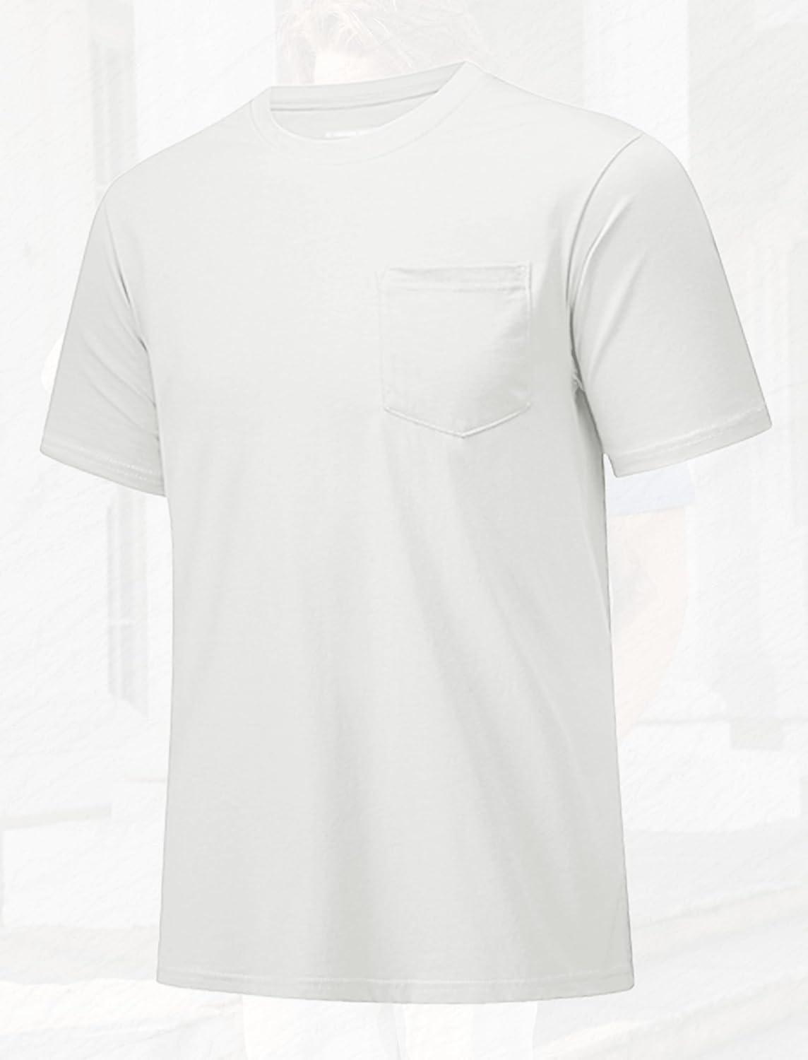 MAGCOMSEN Mens Pocket T Shirts Short Sleeve Cotton Moisture Wicking Plain Tshirts Casual Lightweight Summer Basic Tees(White-cotton)
