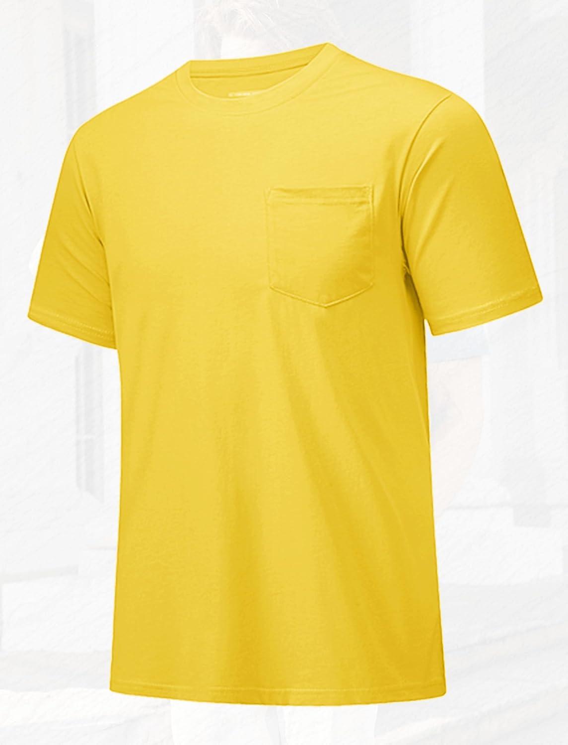 MAGCOMSEN Mens Pocket T Shirts Short Sleeve Cotton Moisture Wicking Plain Tshirts Casual Lightweight Summer Basic Tees(Yellow-cotton)