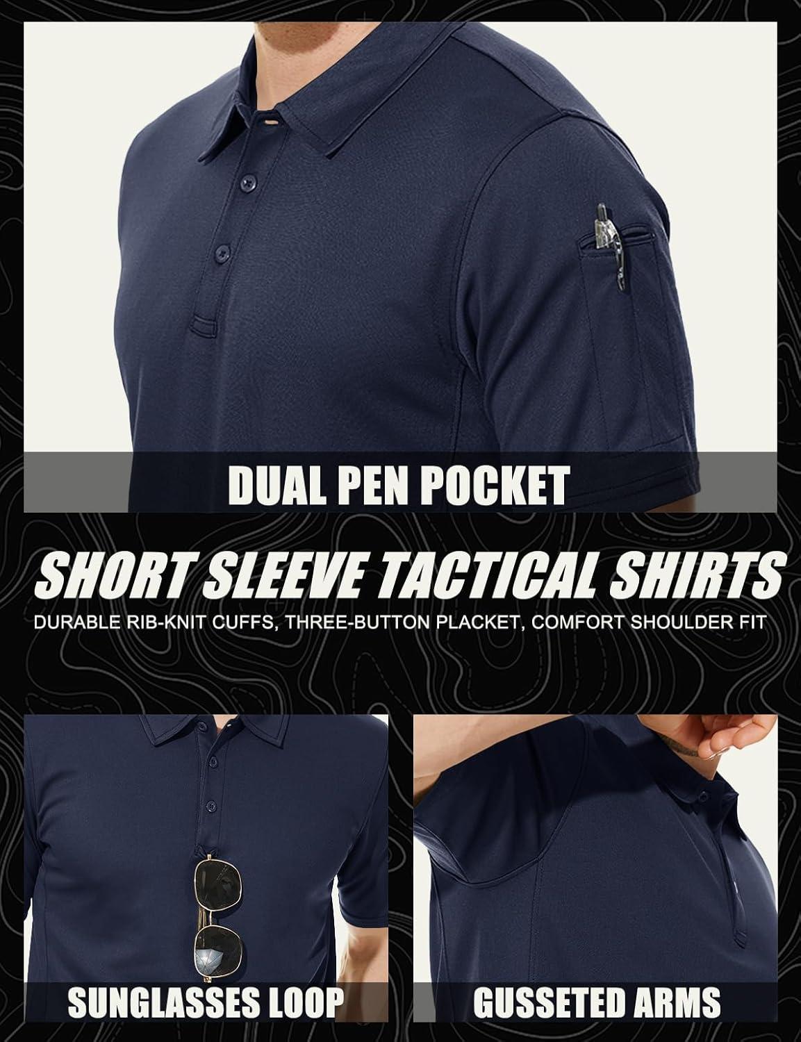MAGCOMSEN Men’s Polo Shirt Quick Dry Performance Short Sleeve Tactical Shirts Pique Jersey Golf Shirt(#02 Navy)