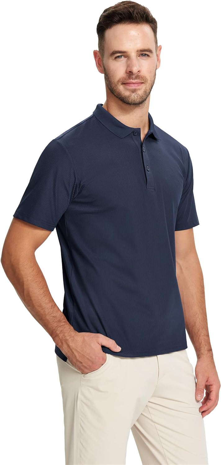 MAGCOMSEN Men’s Polo Shirts 3 Buttons Casual Work T Shirts Short Sleeve Golf Shirts Quick Dry Summer Shirts(Navy)