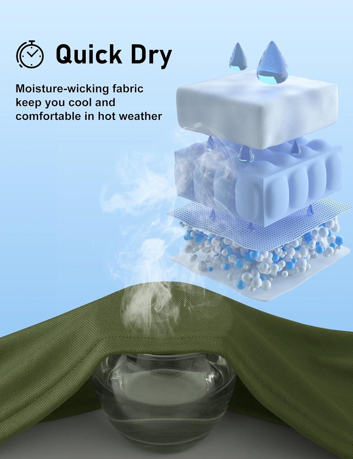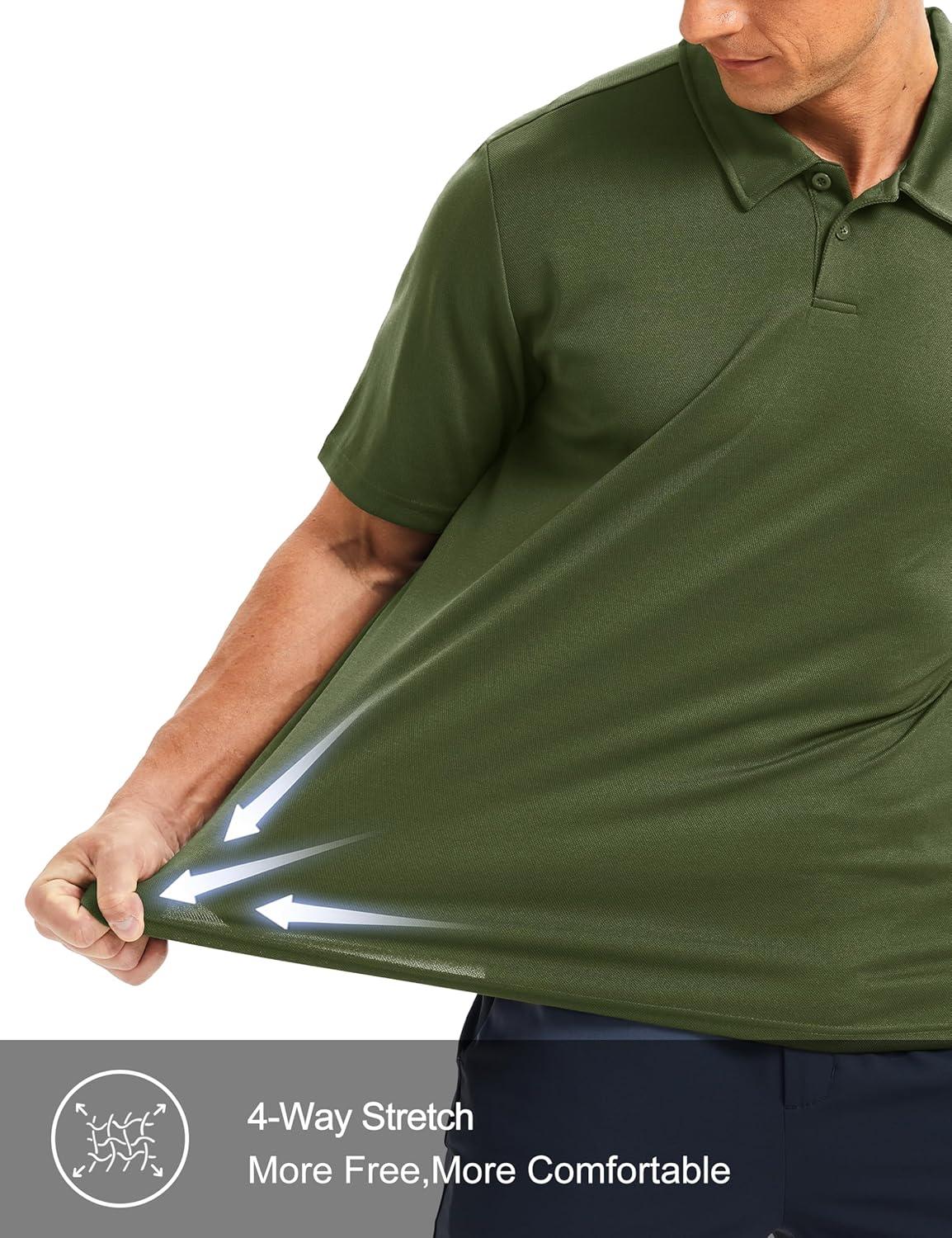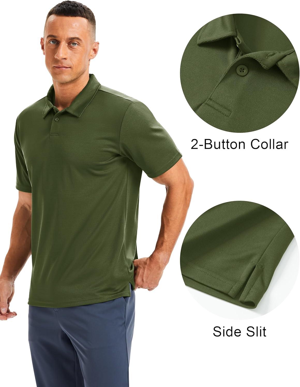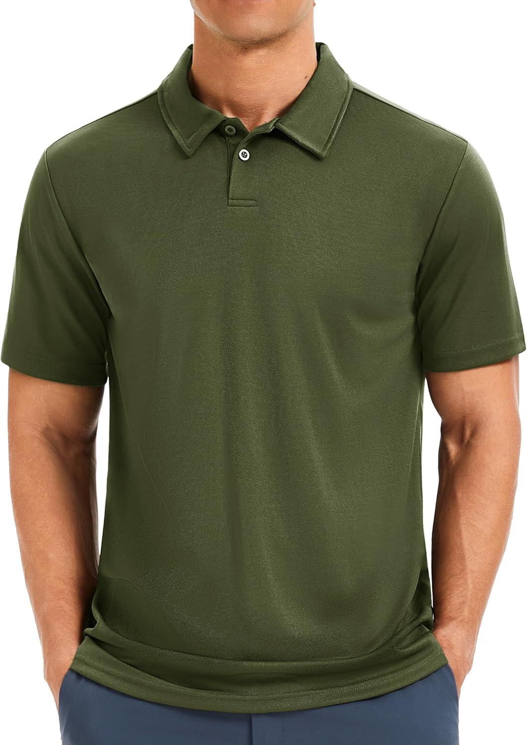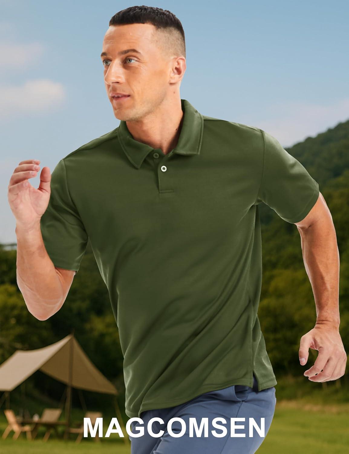 MAGCOMSEN Men’s Polo Shirts Short Sleeve Collared Performance Dry Fit Breathable Golf Athletic Casual(Army Green)