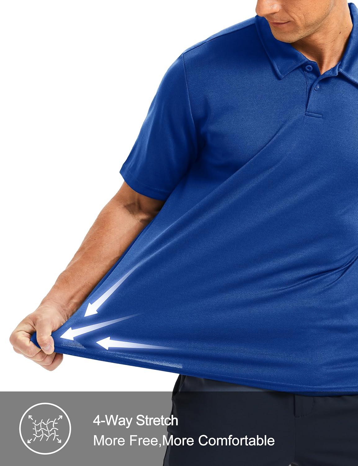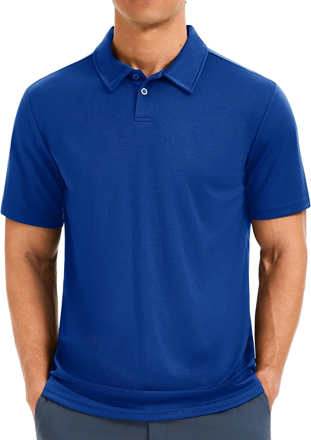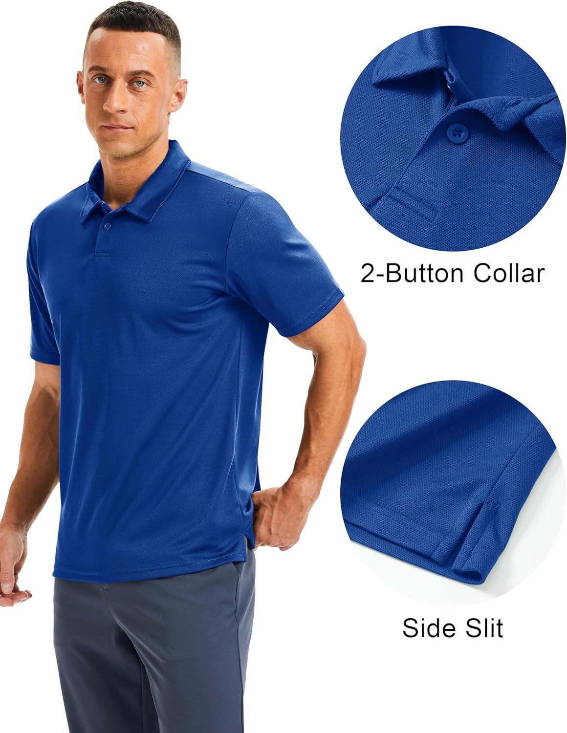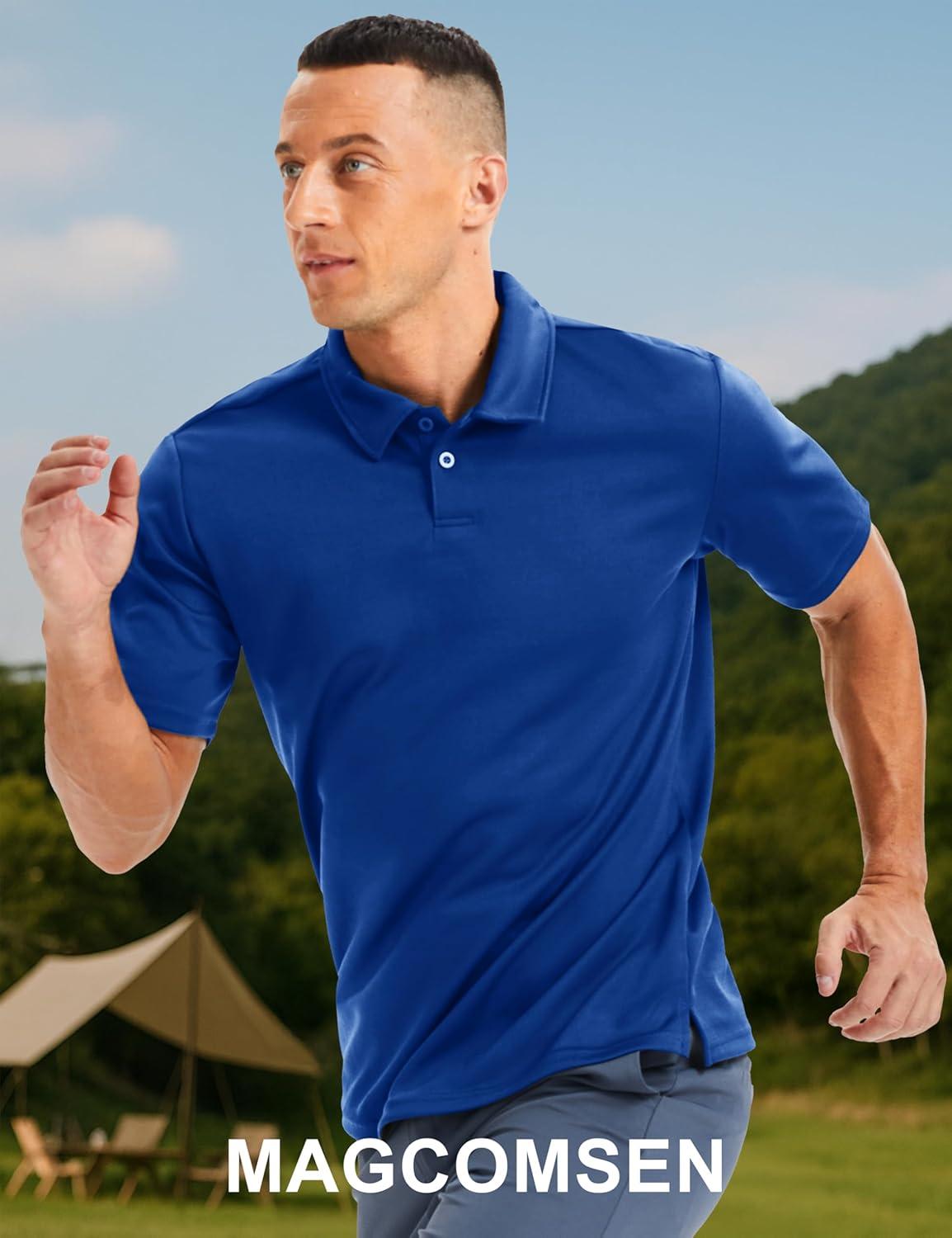 MAGCOMSEN Men’s Polo Shirts Short Sleeve Collared Performance Dry Fit Breathable Golf Athletic Casual(Color Blue)