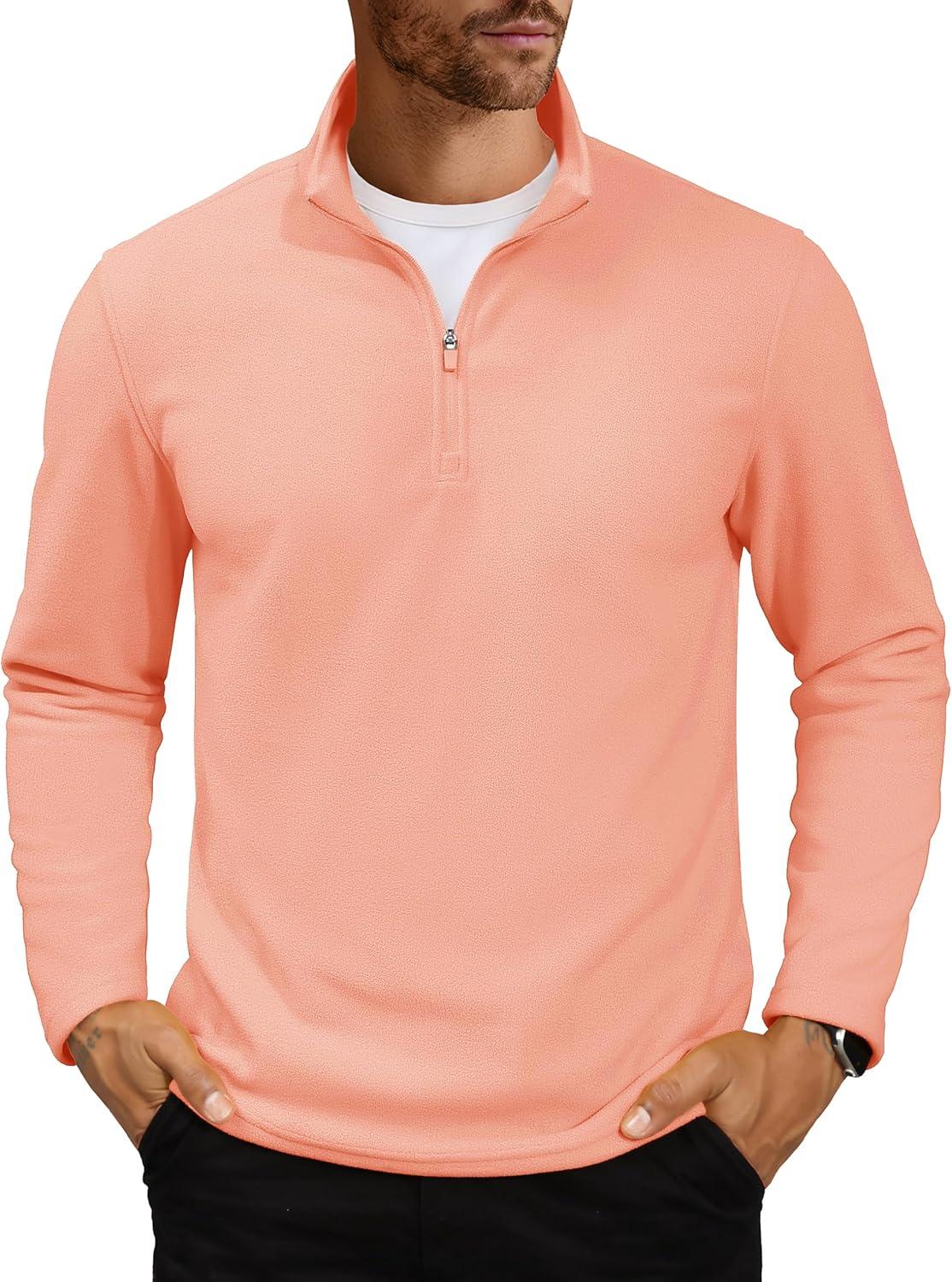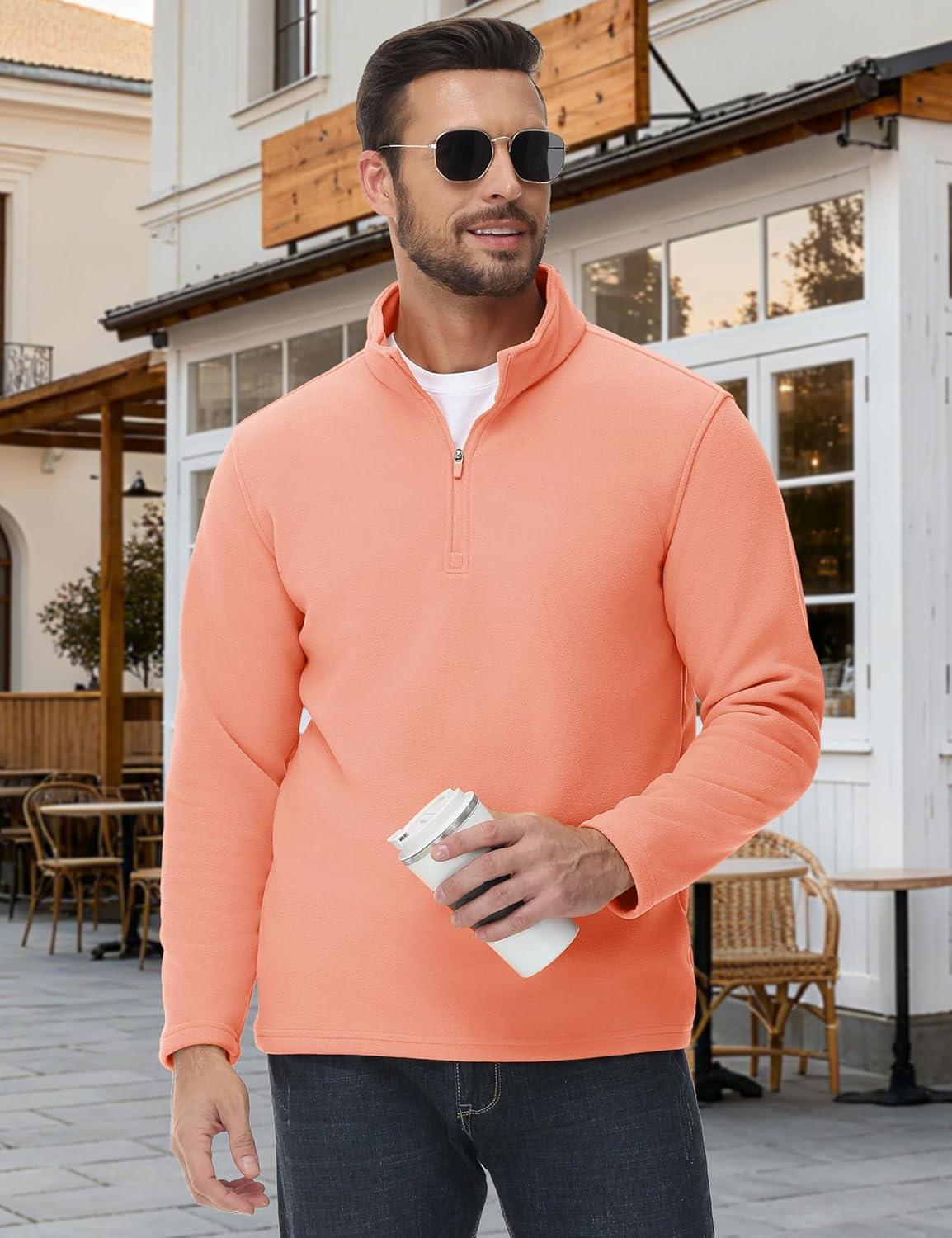 MAGCOMSEN Men’s Quarter Zip Pullover Polar Fleece Sweatshirt Casual Long Sleeve Shirts for Men Winter Fall Thermal(Apricot)