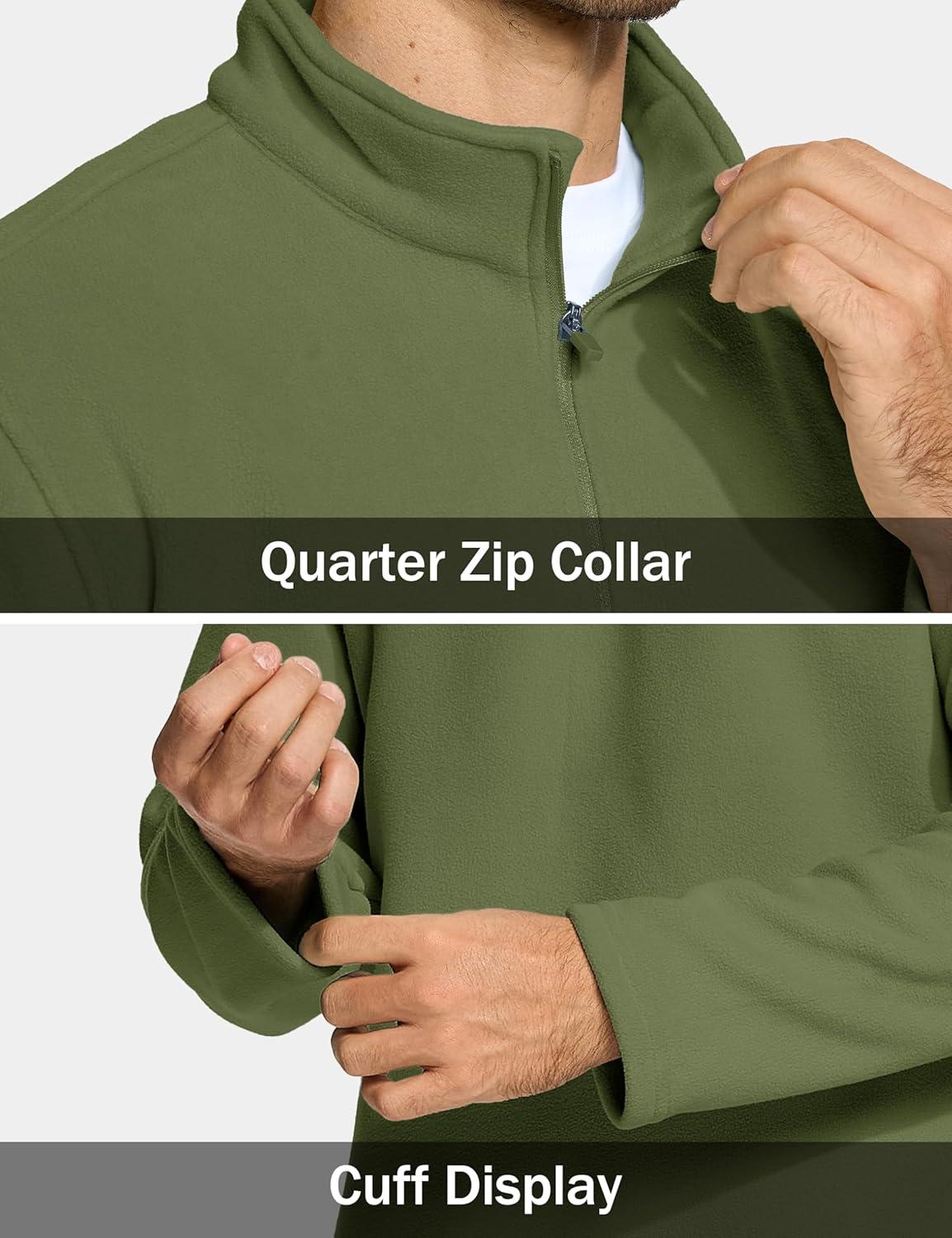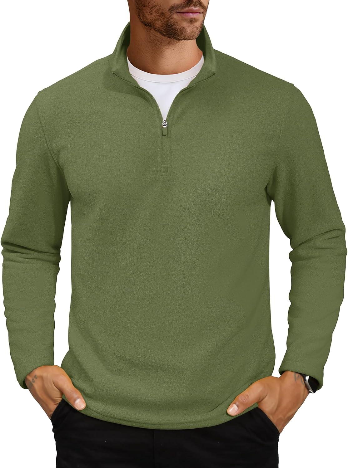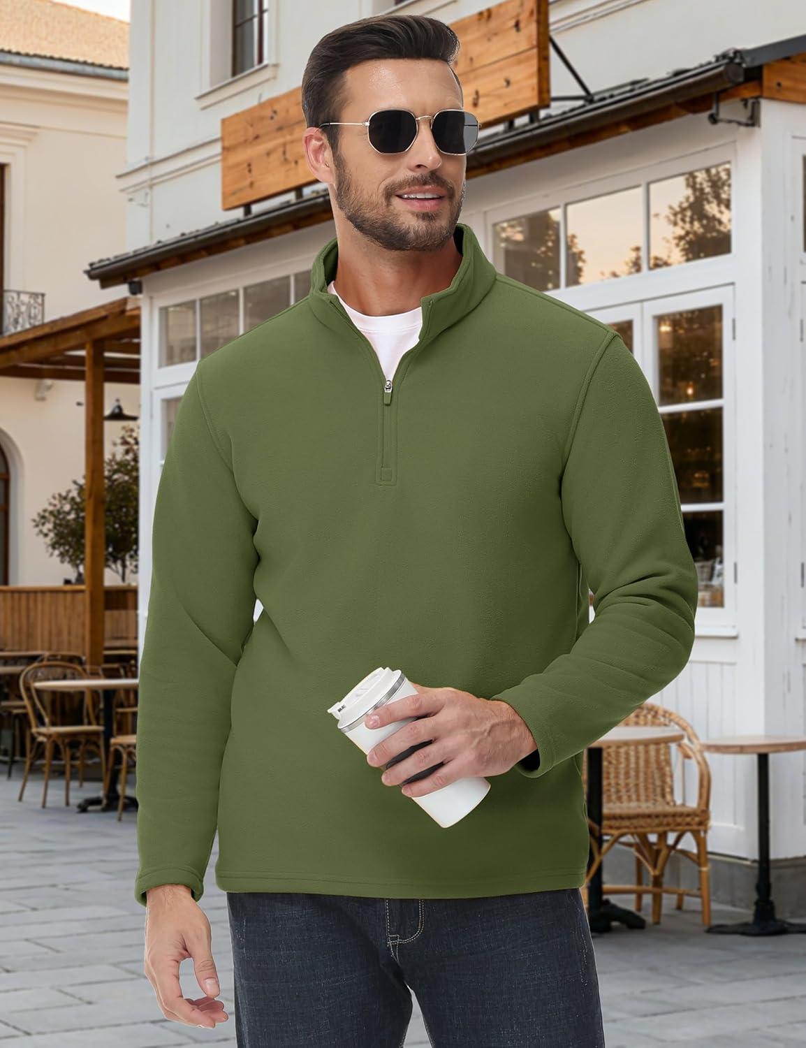 MAGCOMSEN Men’s Quarter Zip Pullover Polar Fleece Sweatshirt Casual Long Sleeve Shirts for Men Winter Fall Thermal(Army Green)