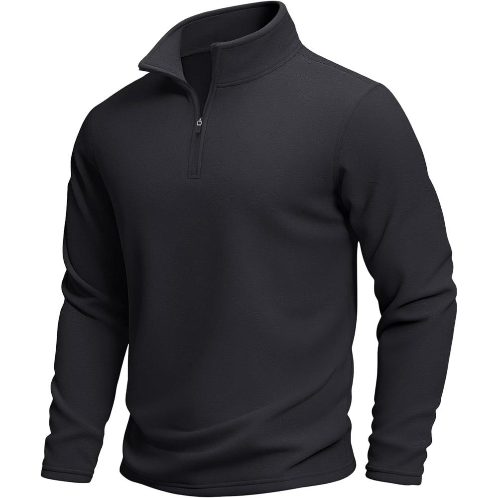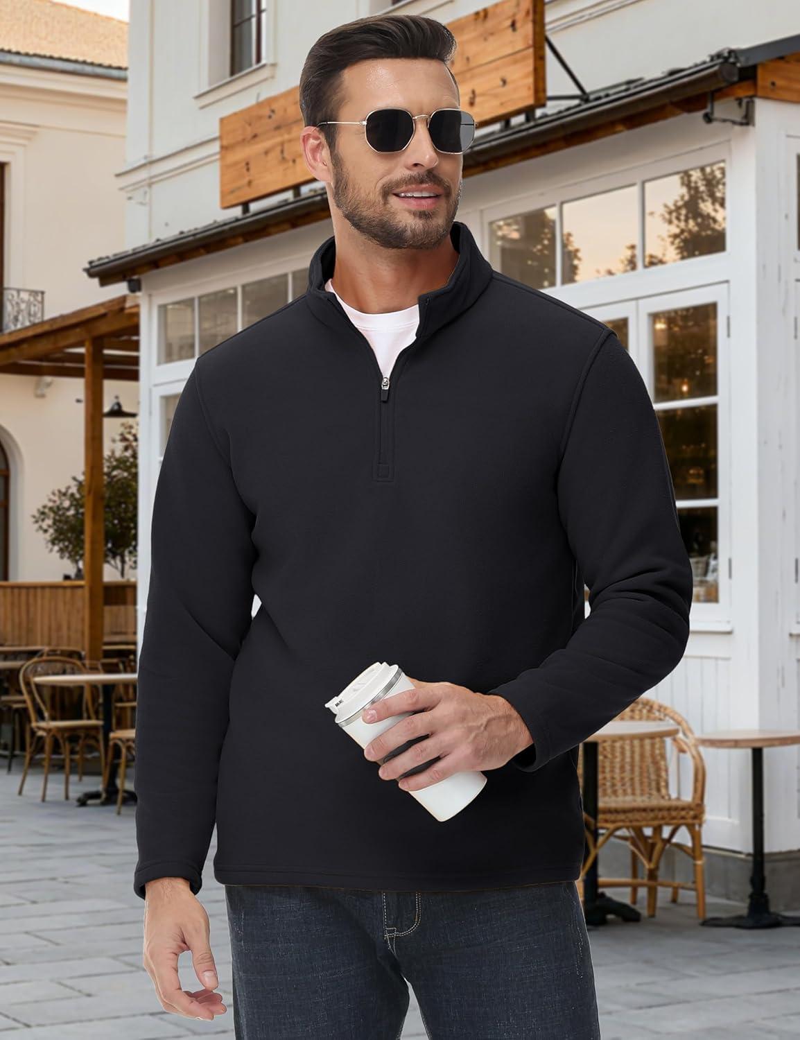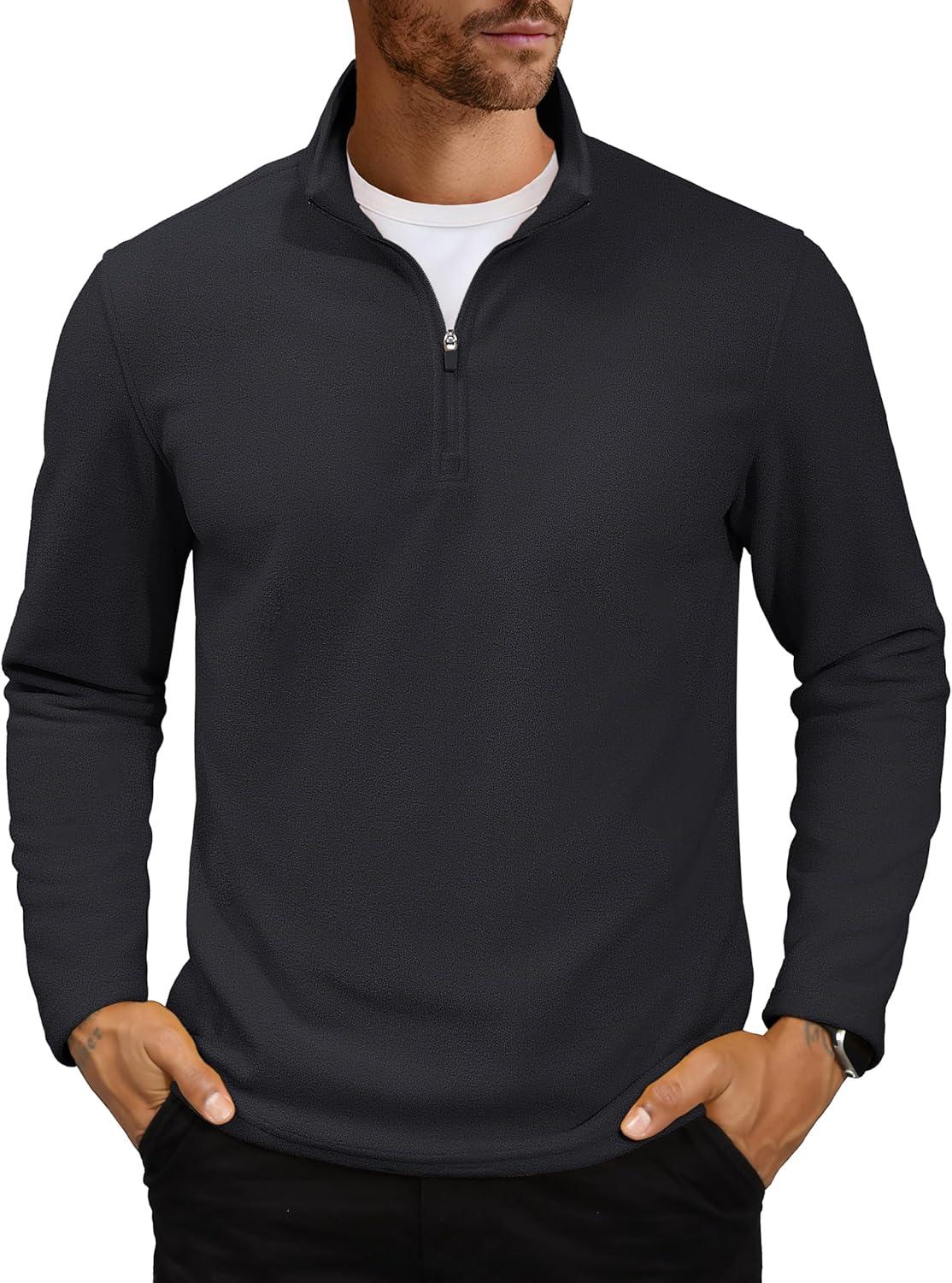 MAGCOMSEN Men’s Quarter Zip Pullover Polar Fleece Sweatshirt Casual Long Sleeve Shirts for Men Winter Fall Thermal(Black)