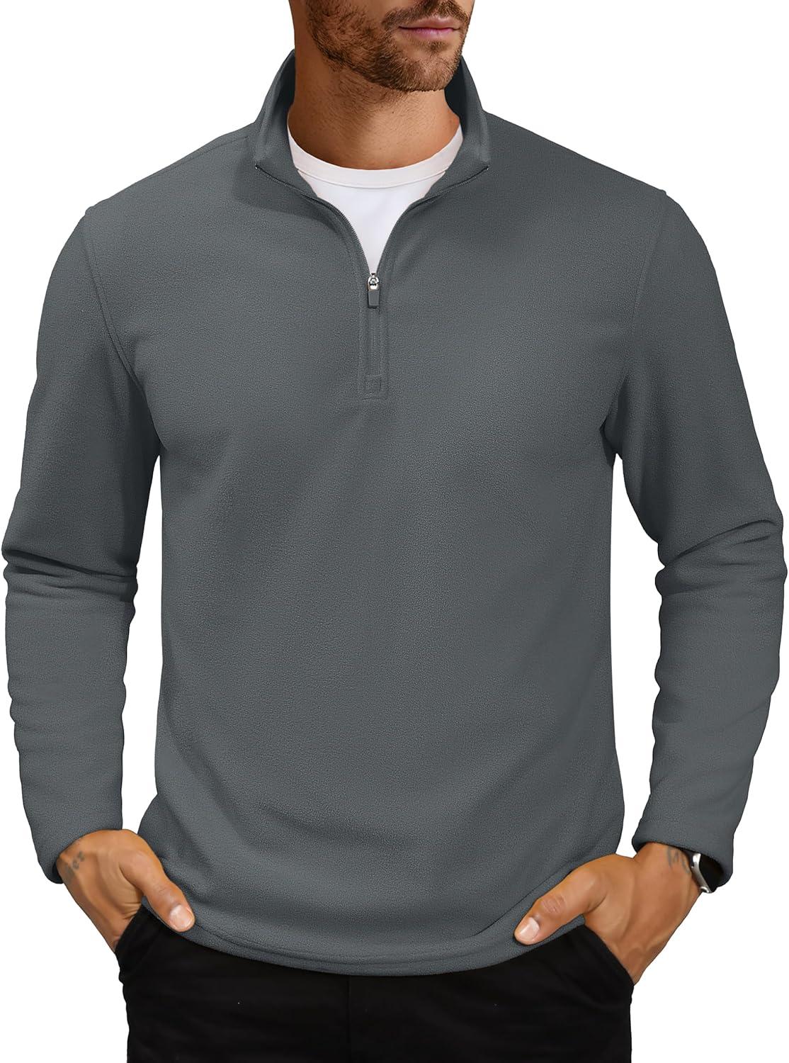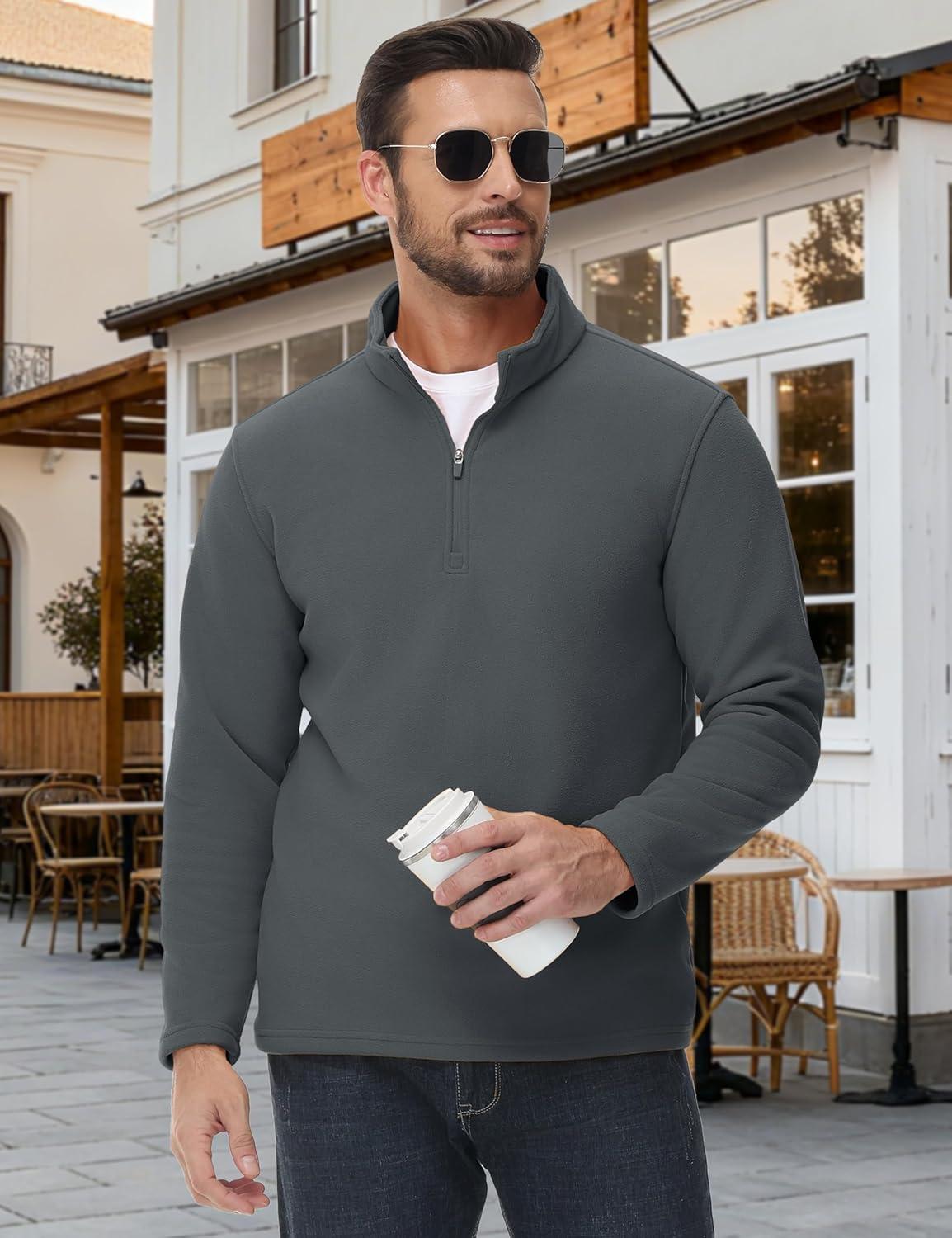 MAGCOMSEN Men’s Quarter Zip Pullover Polar Fleece Sweatshirt Casual Long Sleeve Shirts for Men Winter Fall Thermal(Dark Grey)