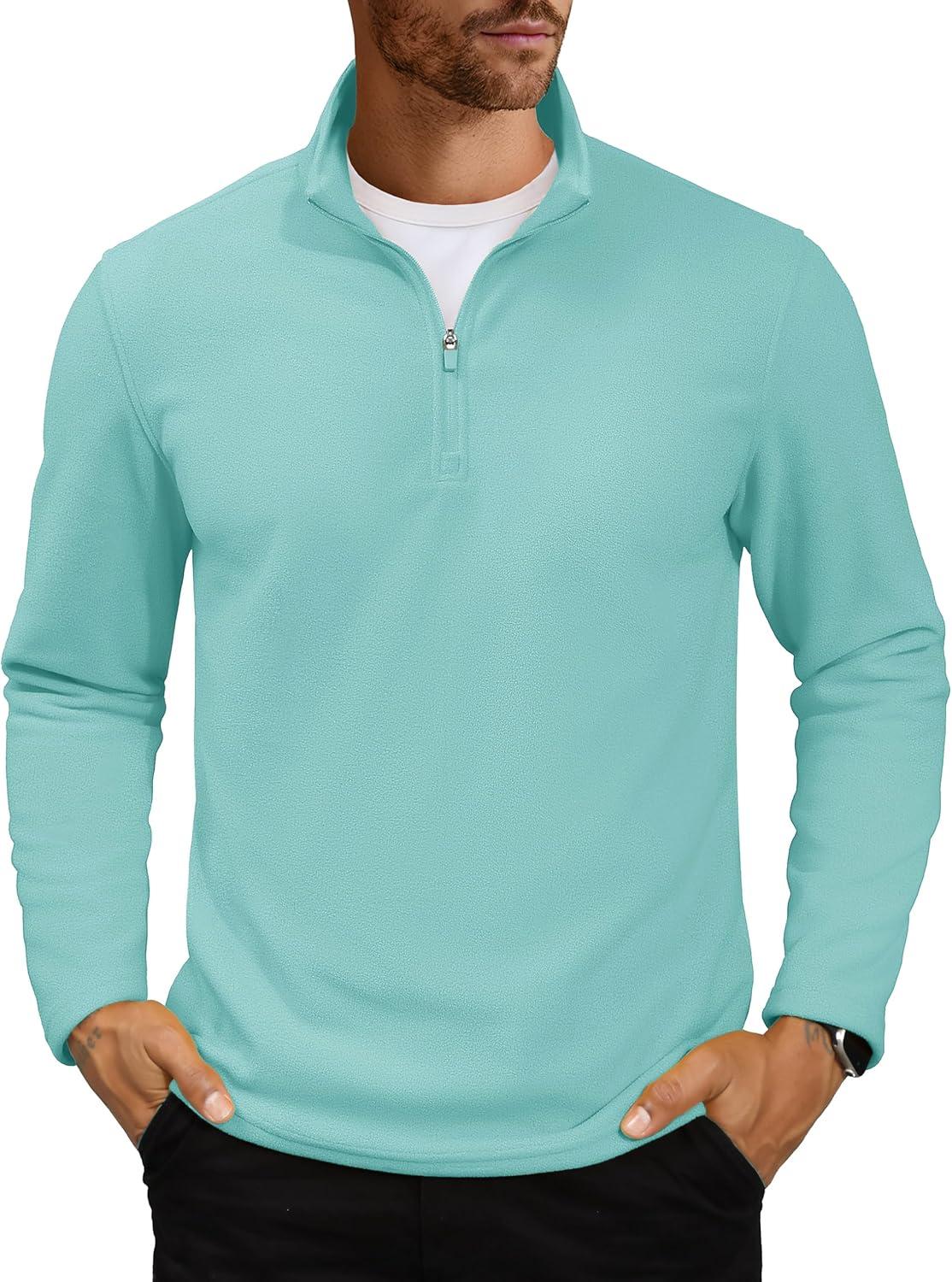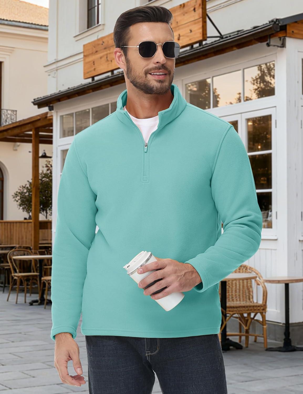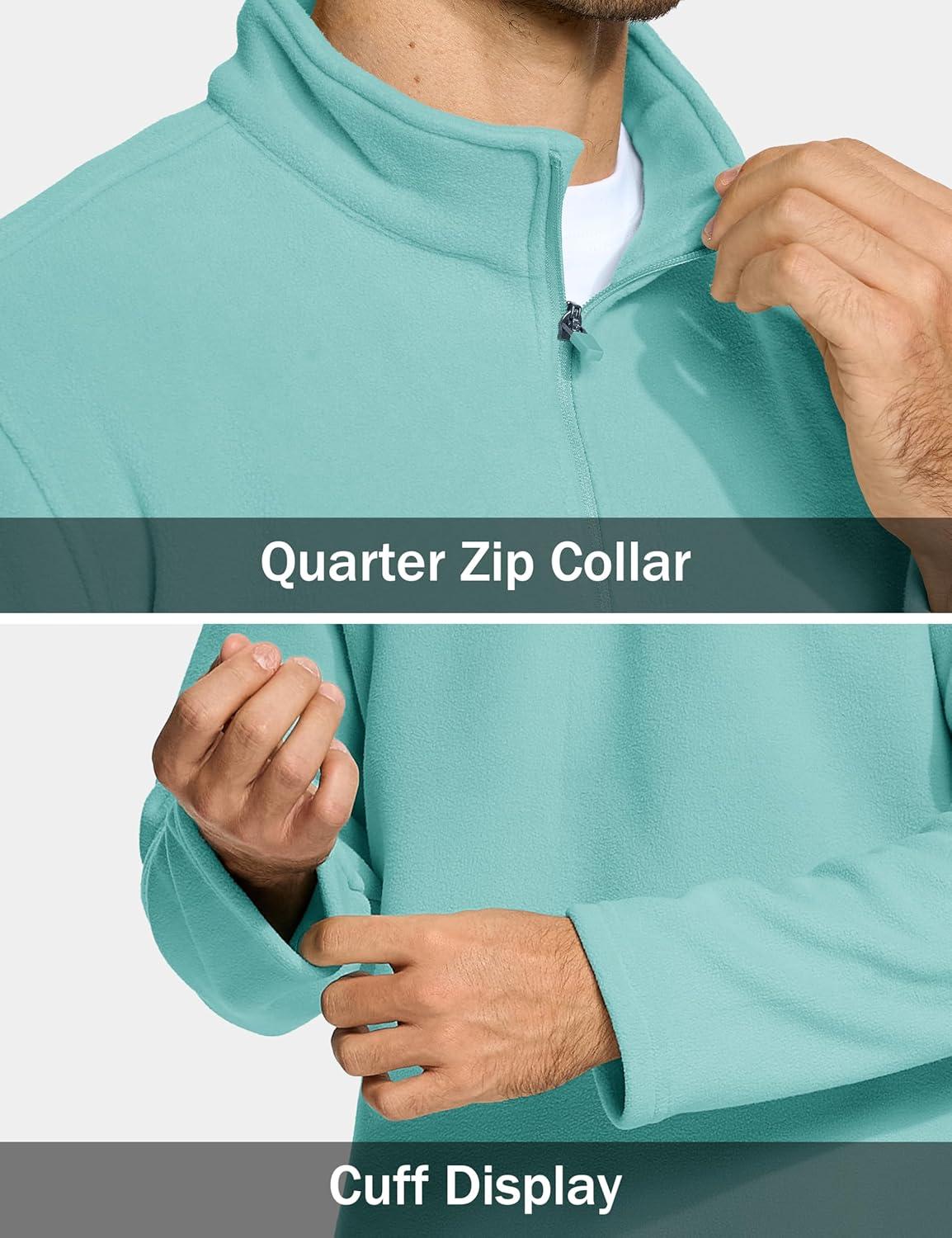 MAGCOMSEN Men’s Quarter Zip Pullover Polar Fleece Sweatshirt Casual Long Sleeve Shirts for Men Winter Fall Thermal(Grey Green)