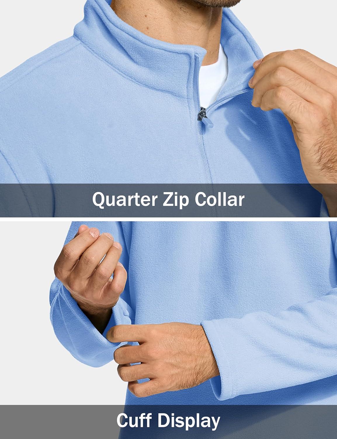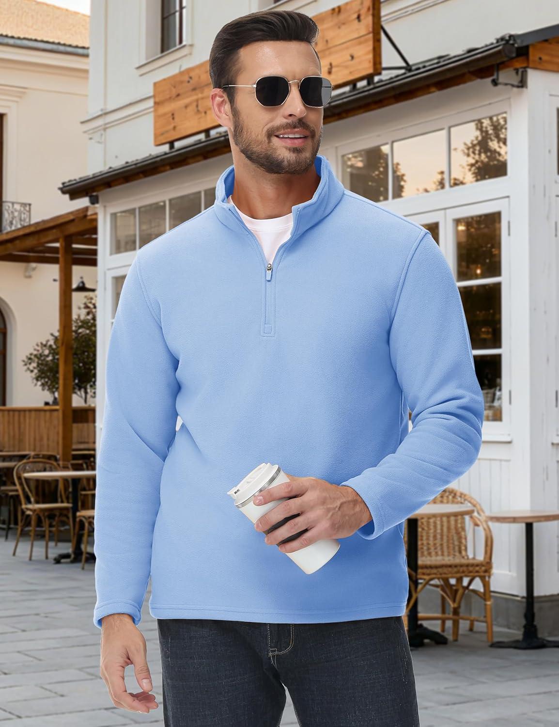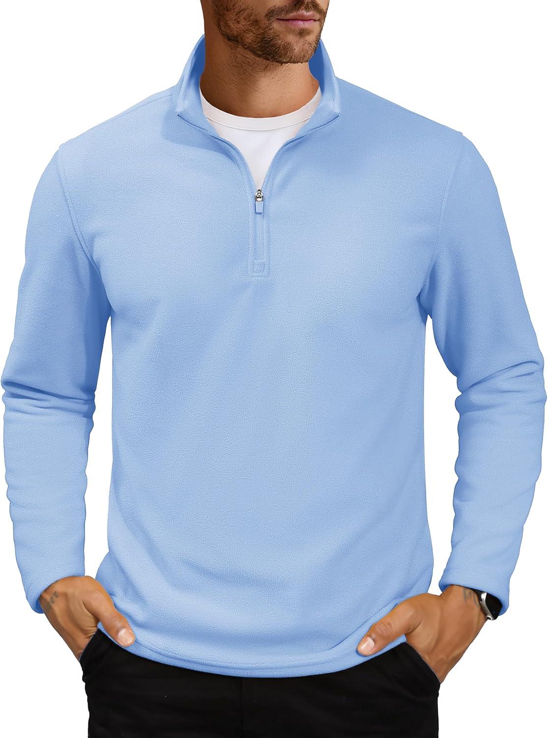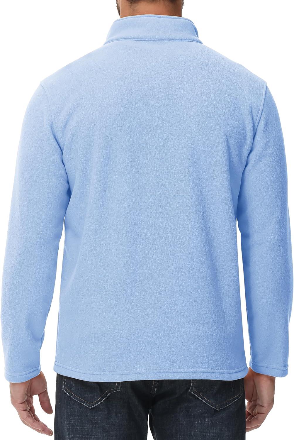 MAGCOMSEN Men’s Quarter Zip Pullover Polar Fleece Sweatshirt Casual Long Sleeve Shirts for Men Winter Fall Thermal(Light Blue)