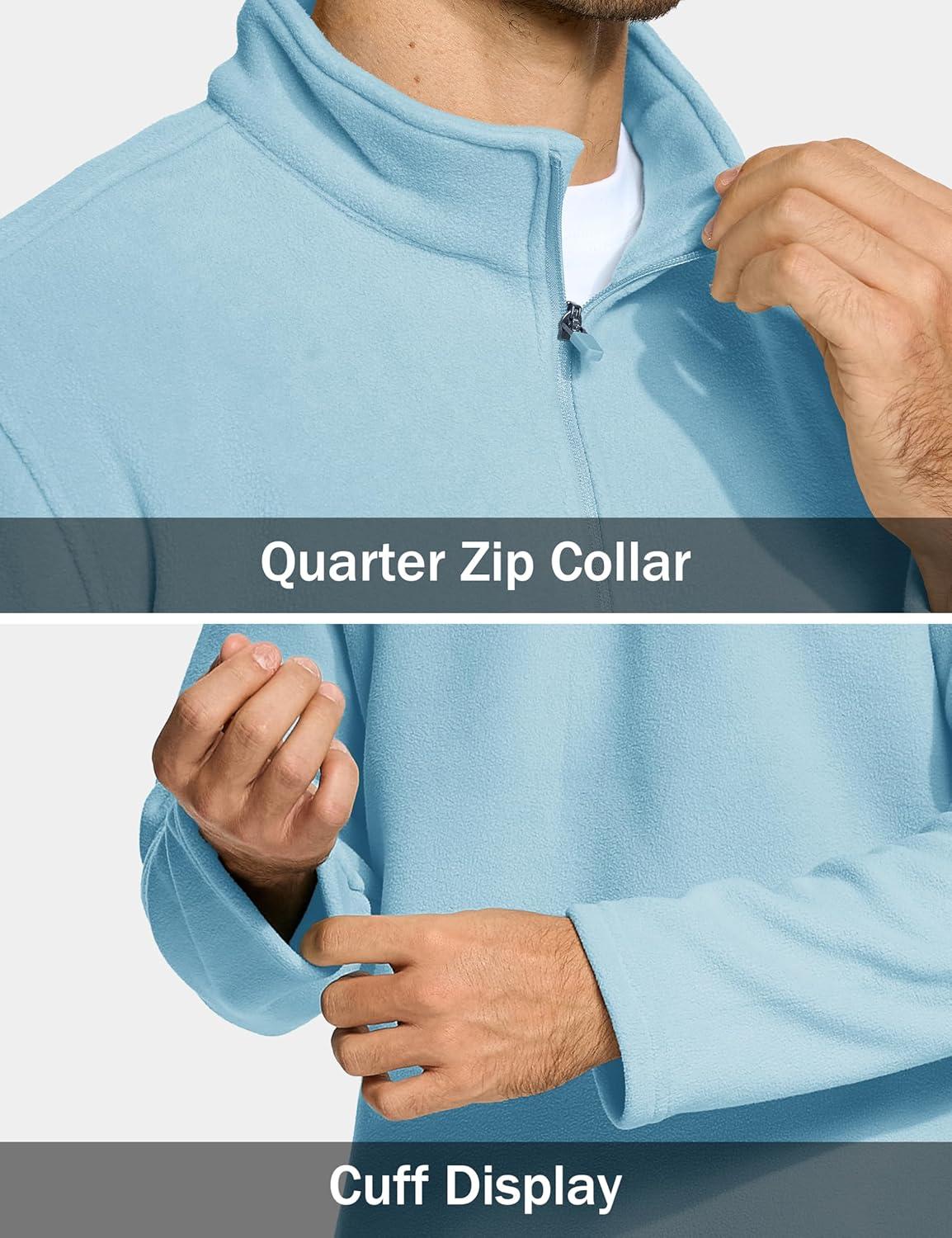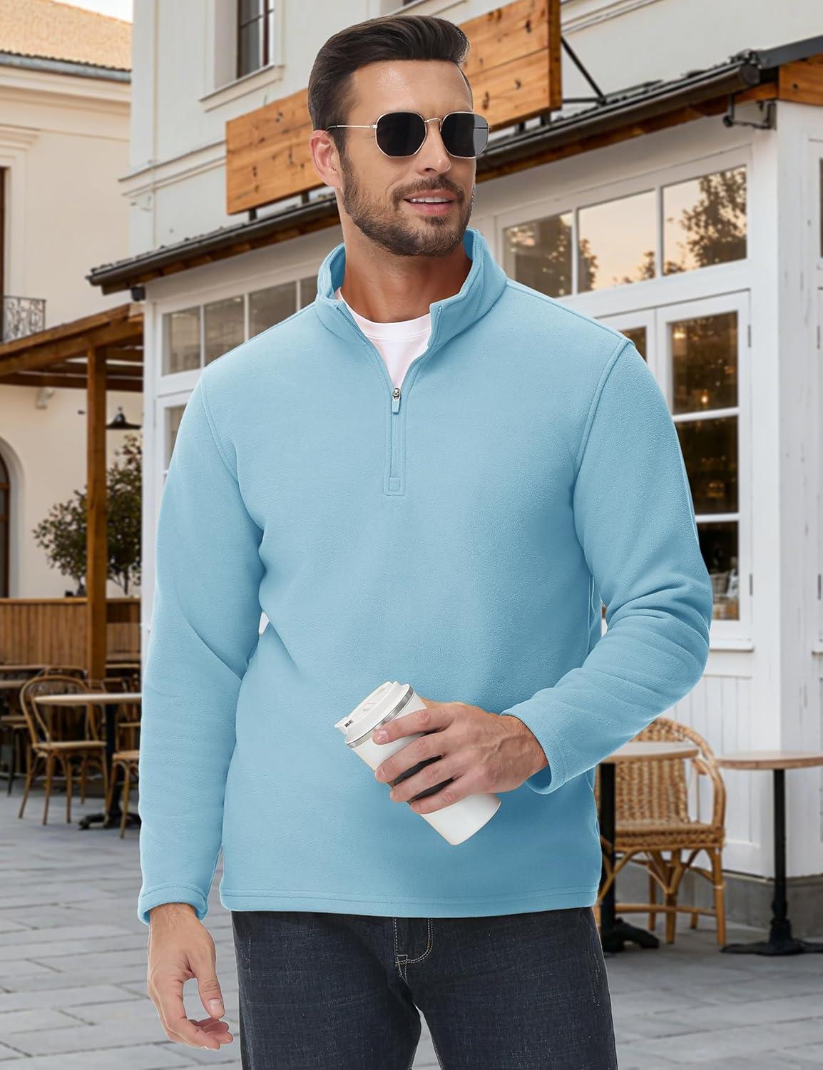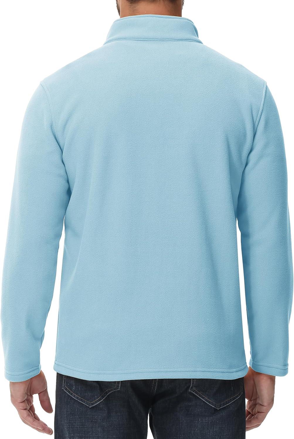 MAGCOMSEN Men’s Quarter Zip Pullover Polar Fleece Sweatshirt Casual Long Sleeve Shirts for Men Winter Fall Thermal(Water Blue)