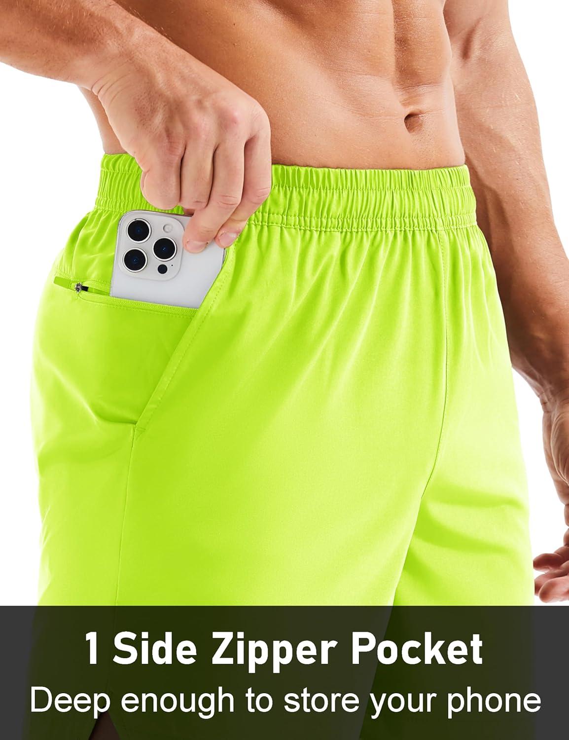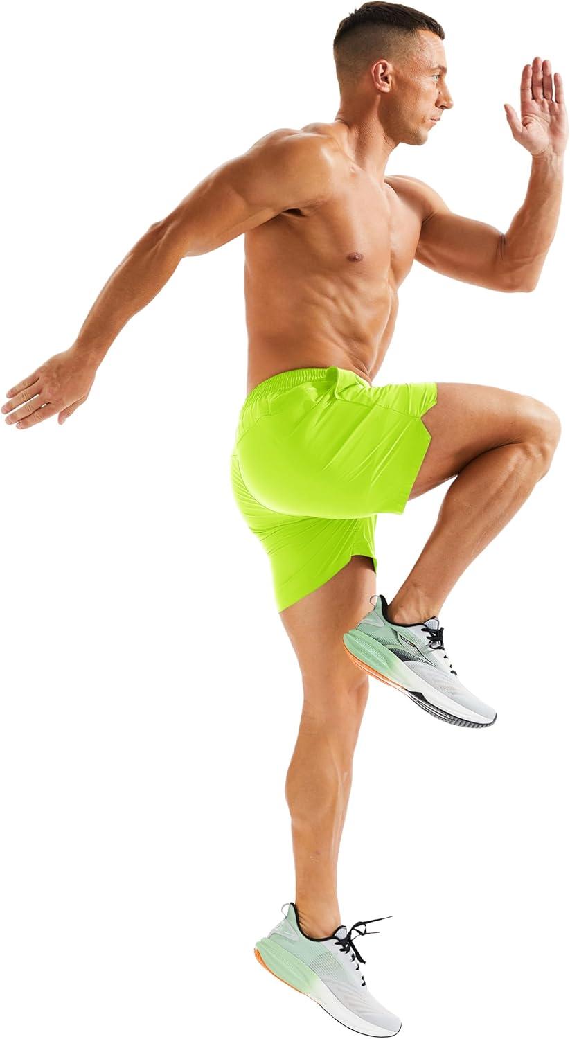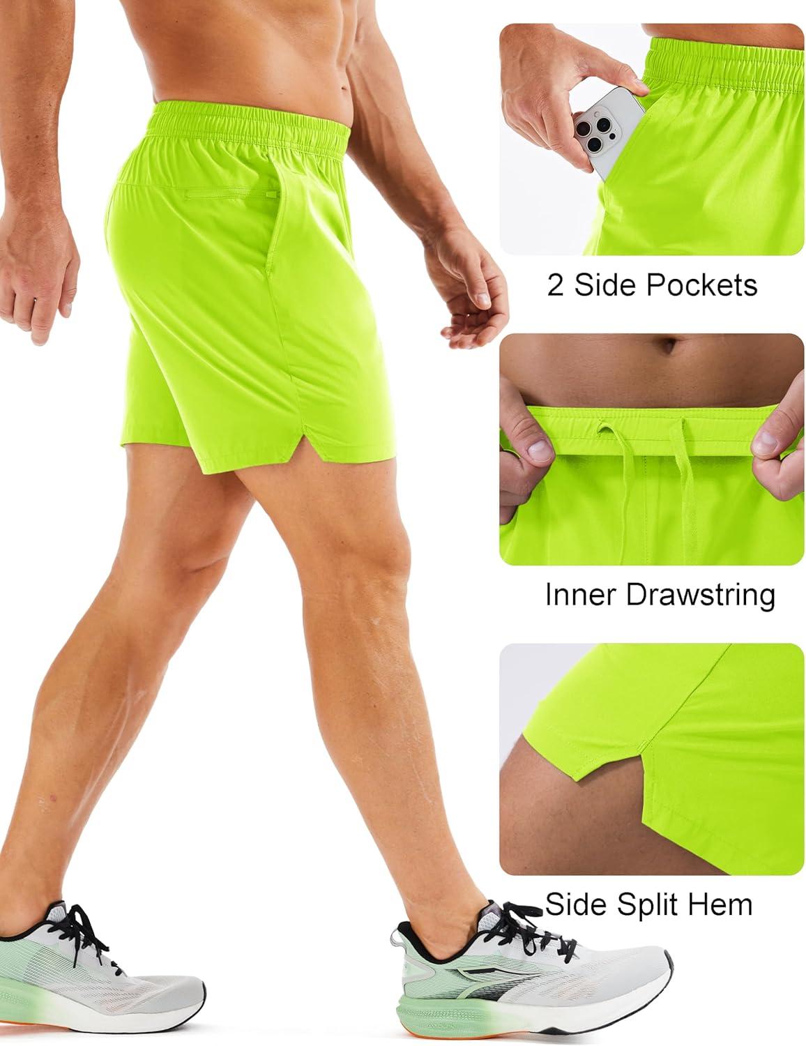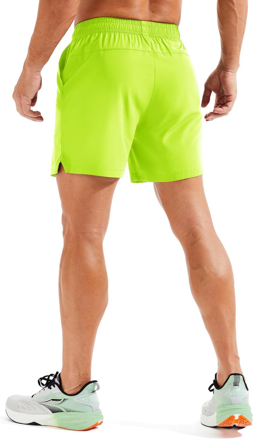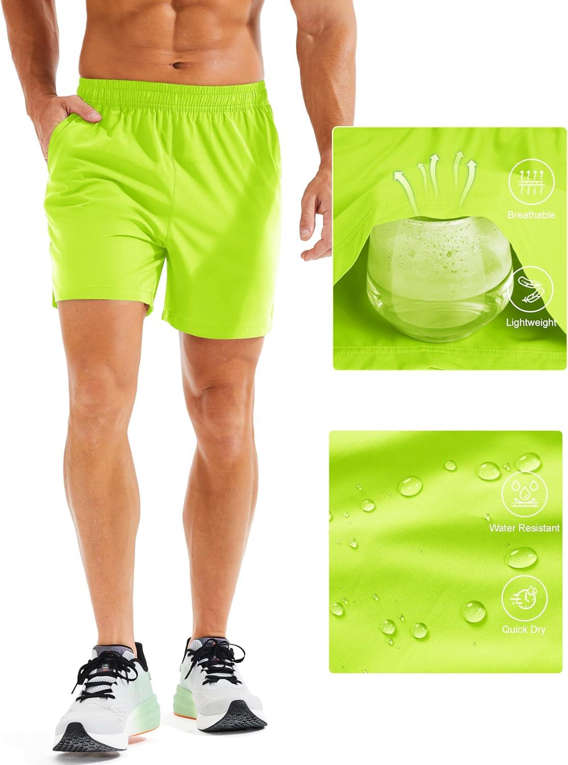 MAGCOMSEN Men’s Running Shorts 5″ Quick Dry Lightweight Hiking Shorts with Pockets for Workout Athletic Gym(02.neon Green)