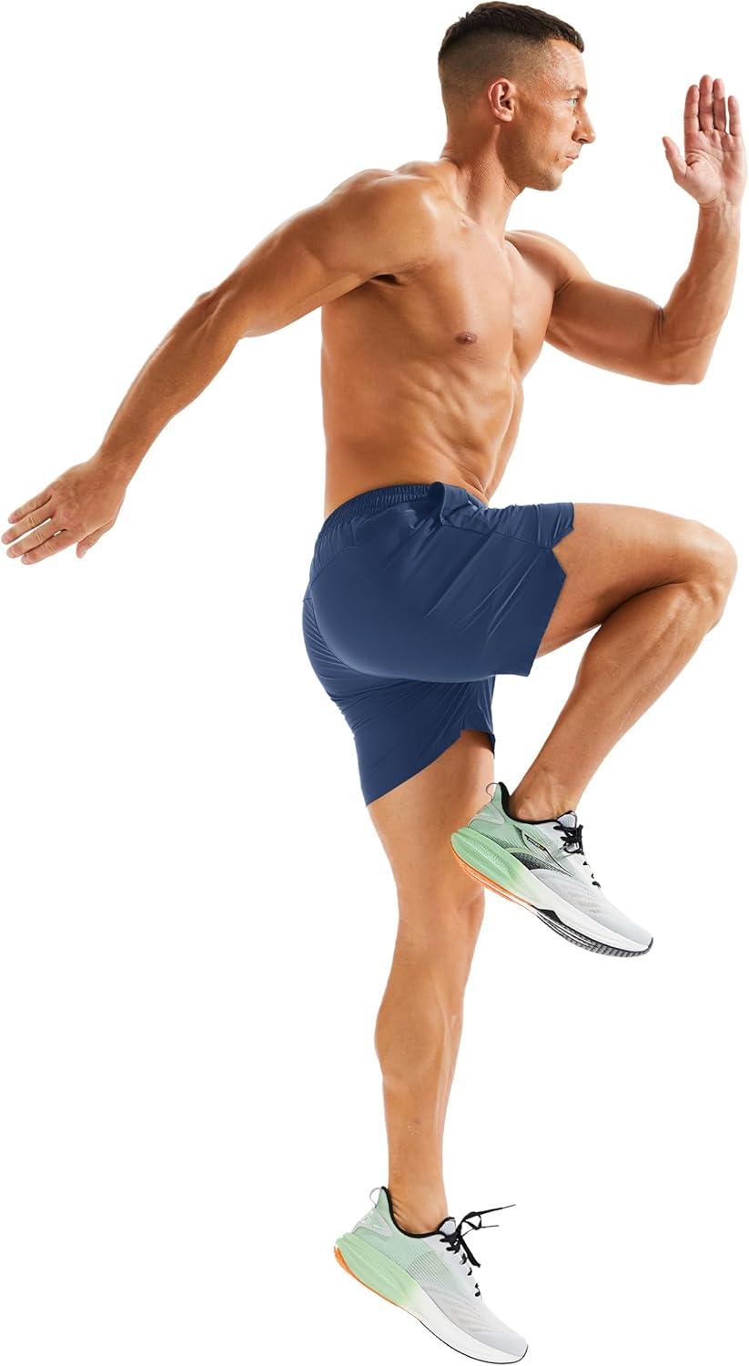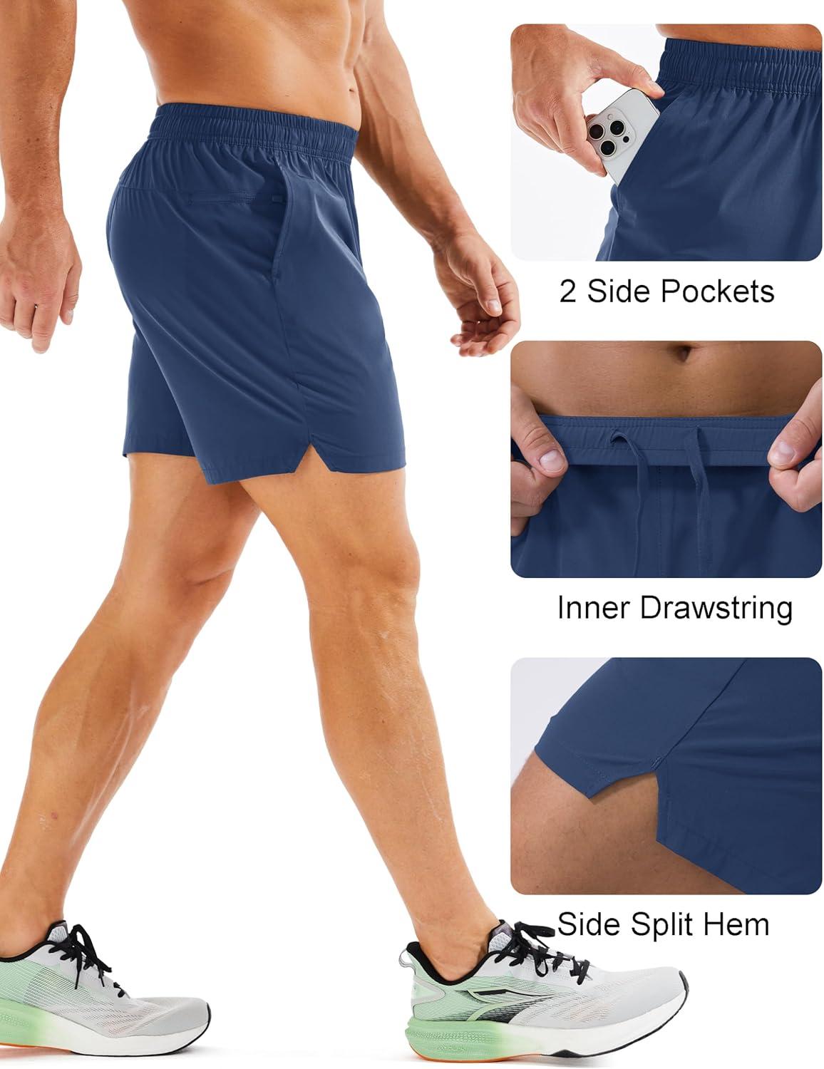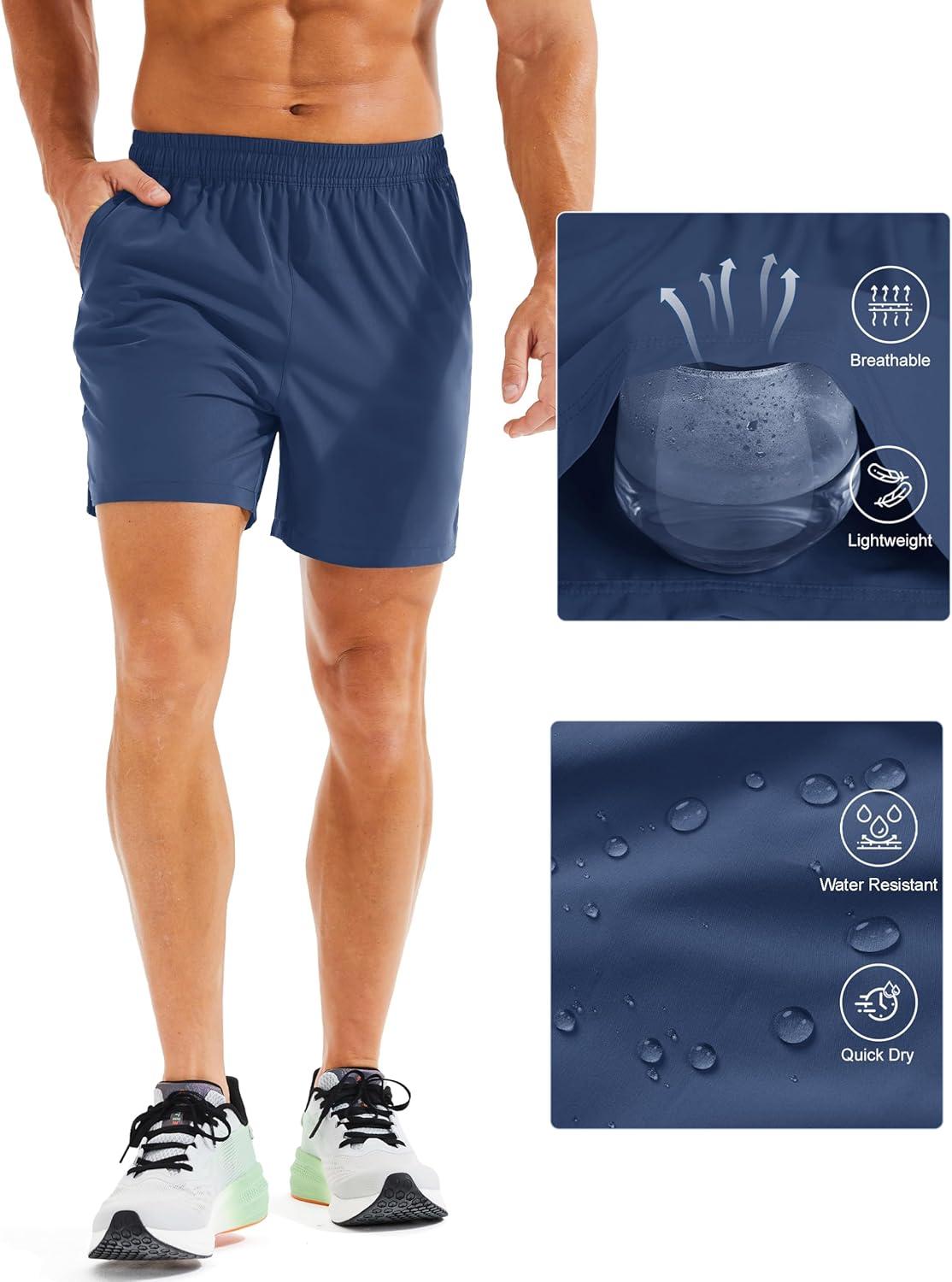 MAGCOMSEN Men’s Running Shorts 5″ Quick Dry Lightweight Hiking Shorts with Pockets for Workout Athletic Gym(06.blue Grey)