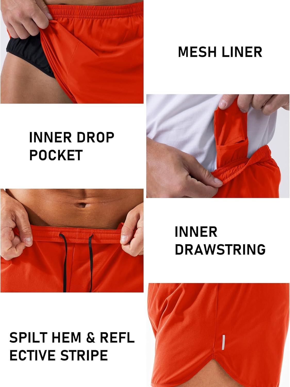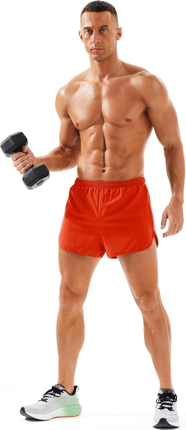 MAGCOMSEN Men’s Running Shorts Mens 3 Inch Shorts Quick Dry Lightweight for Athleic Workout Gym Sports with Liner Pocket(Orange Red)