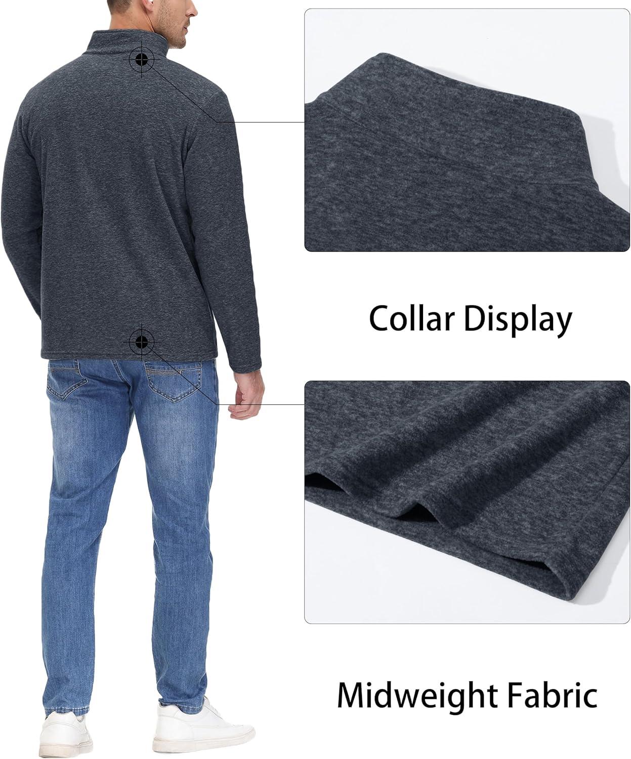 MAGCOMSEN Men’s Shirts 1/4 Zip Fleece Pullover Mid-Weight Long Sleeve Sweatshirts Athletic Shirts(Black)