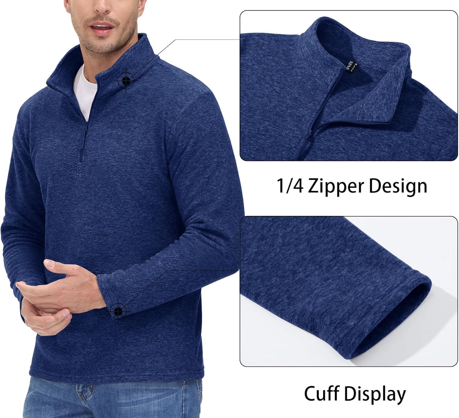 MAGCOMSEN Men’s Shirts 1/4 Zip Fleece Pullover Mid-Weight Long Sleeve Sweatshirts Athletic Shirts(Dark Blue)