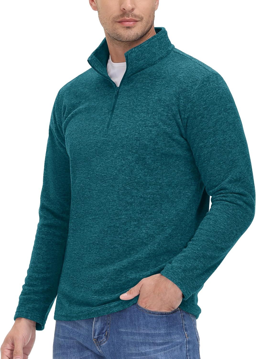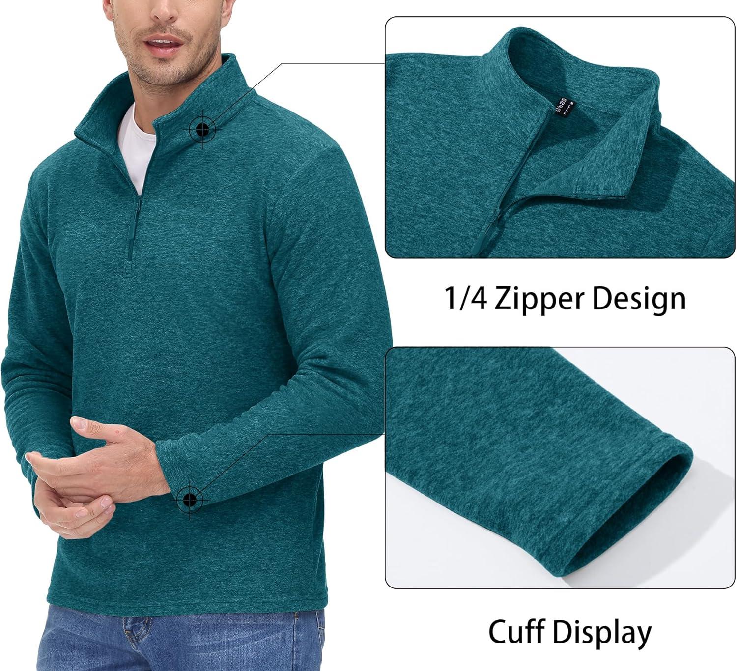 MAGCOMSEN Men’s Shirts 1/4 Zip Fleece Pullover Mid-Weight Long Sleeve Sweatshirts Athletic Shirts(Peacock Blue)