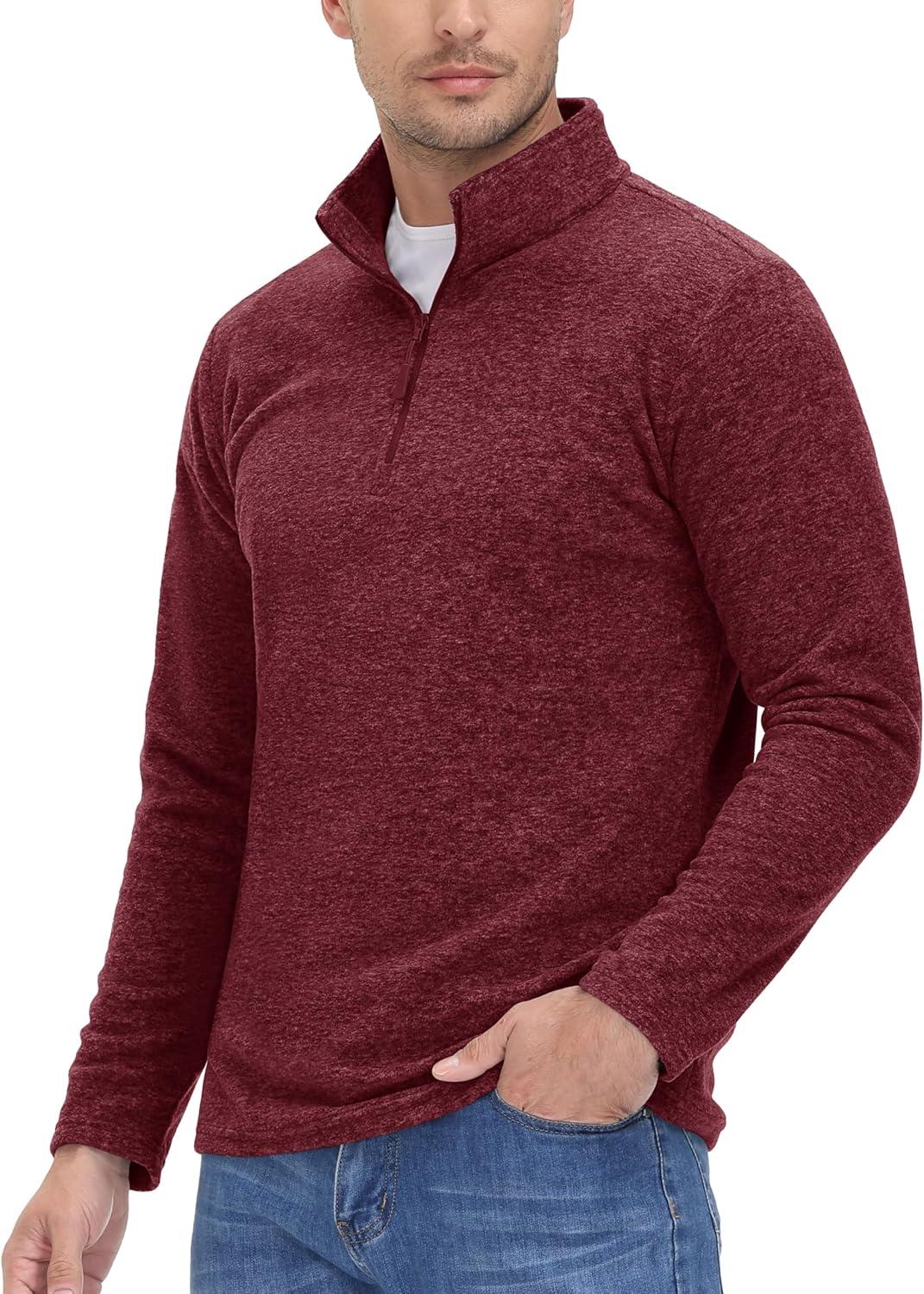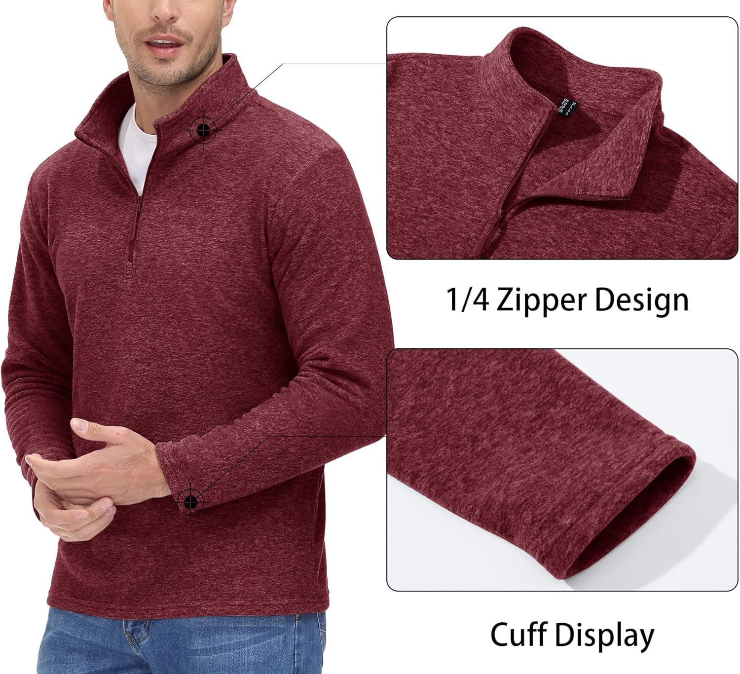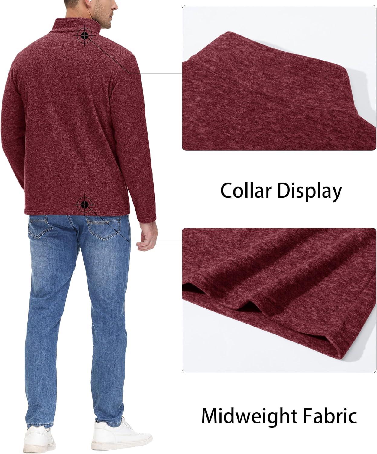 MAGCOMSEN Men’s Shirts 1/4 Zip Fleece Pullover Mid-Weight Long Sleeve Sweatshirts Athletic Shirts(Wine Red)