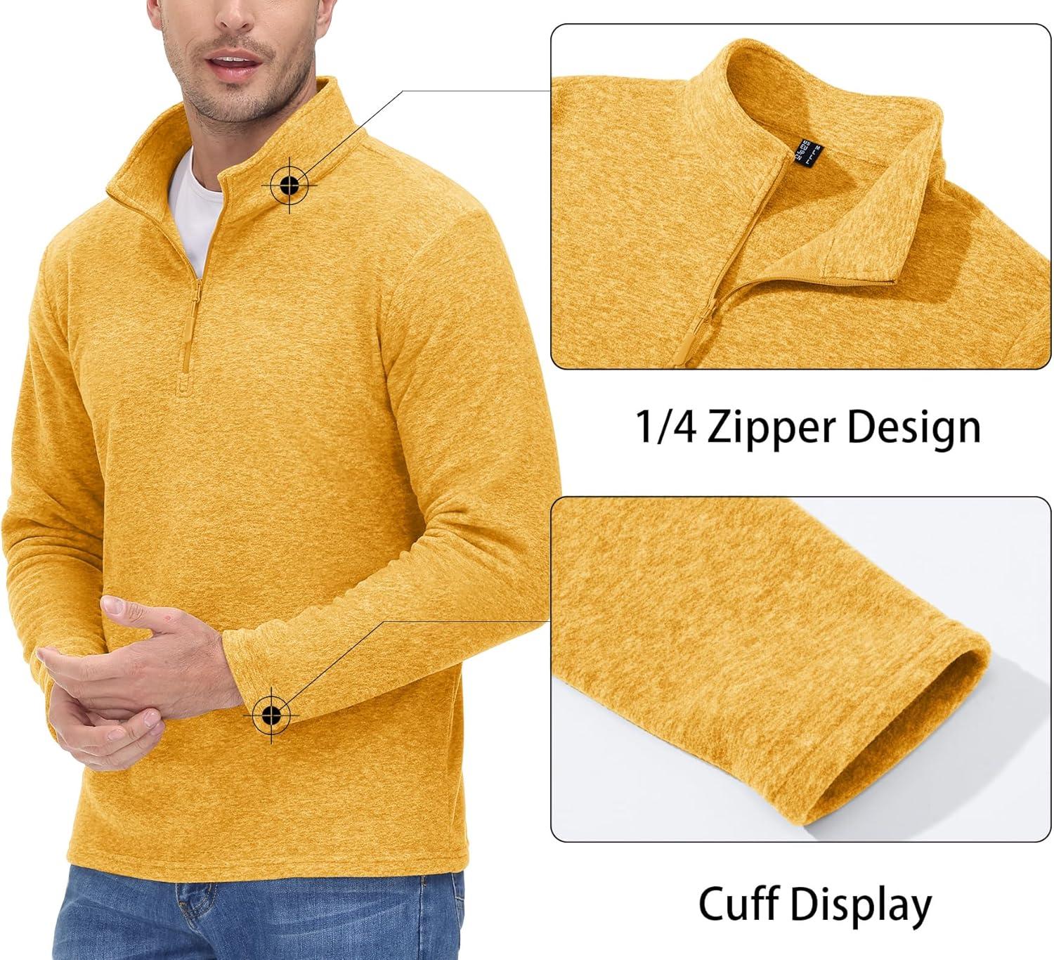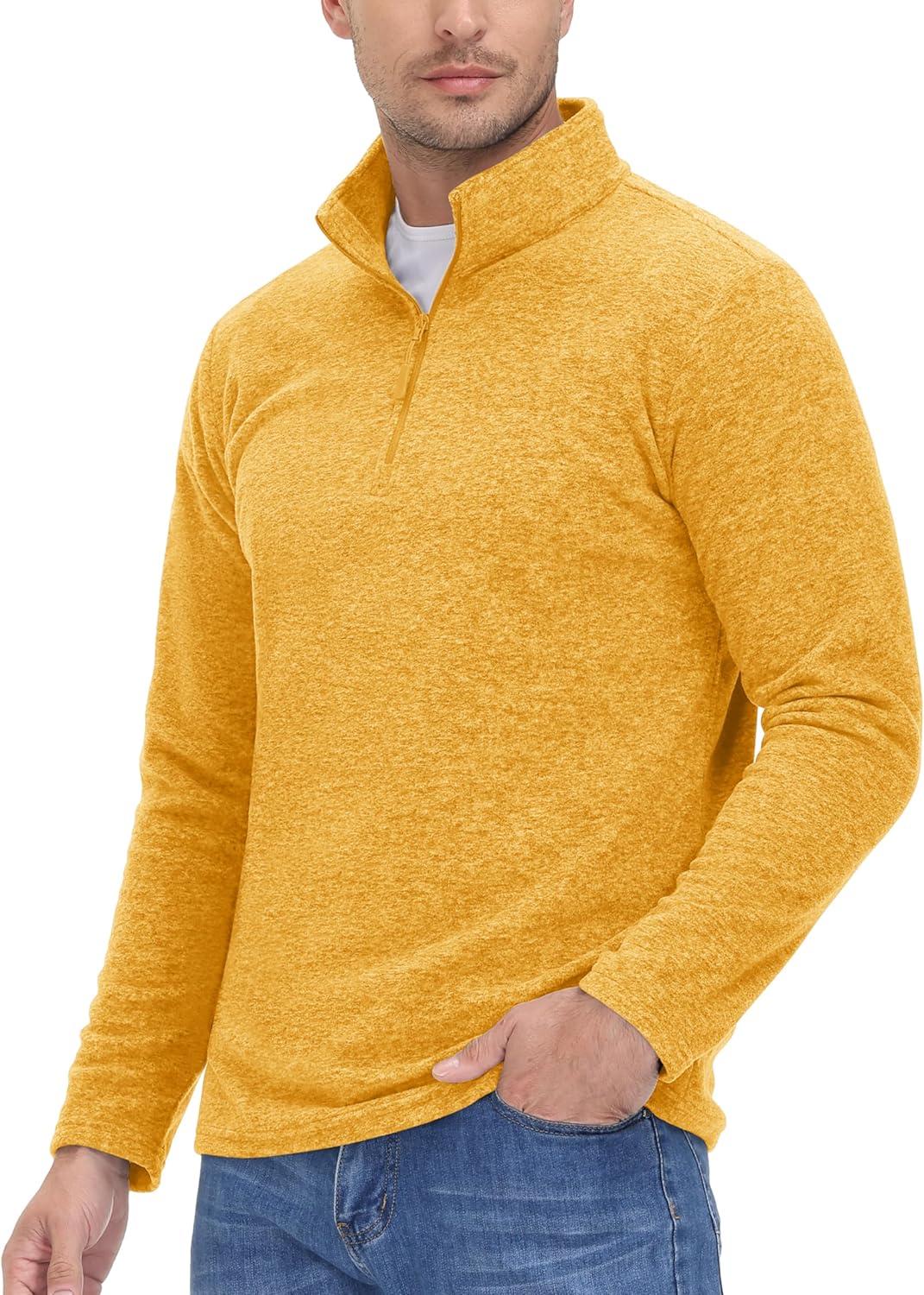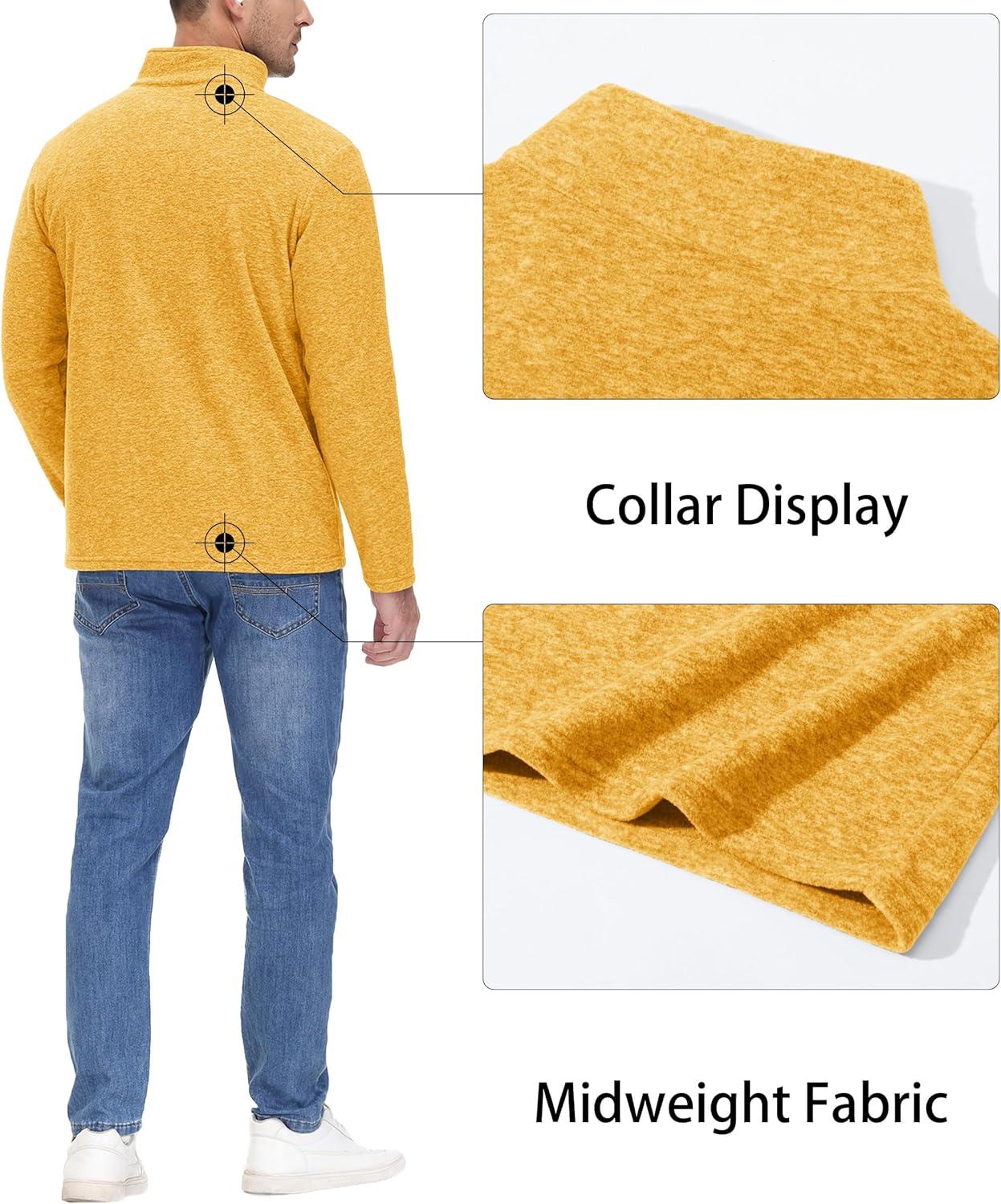 MAGCOMSEN Men’s Shirts 1/4 Zip Fleece Pullover Mid-Weight Long Sleeve Sweatshirts Athletic Shirts(Yellow)