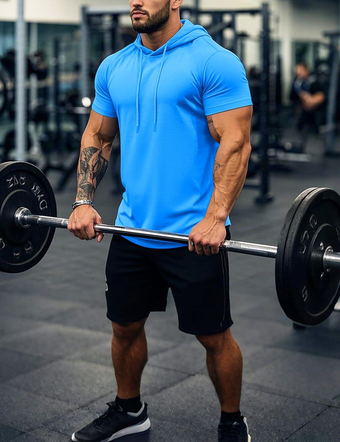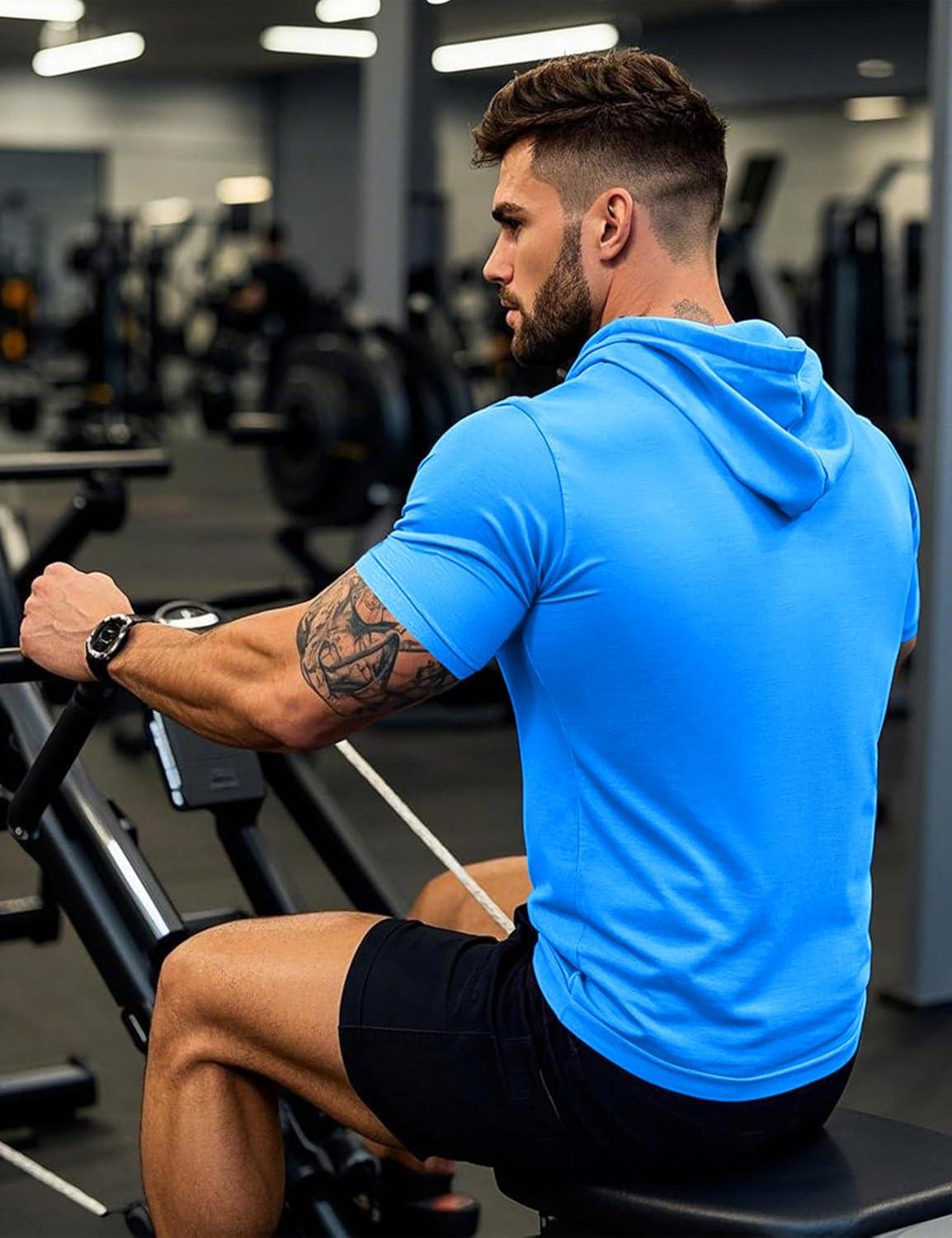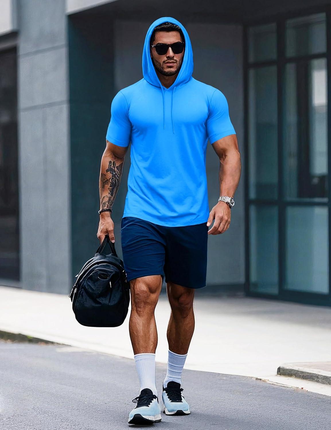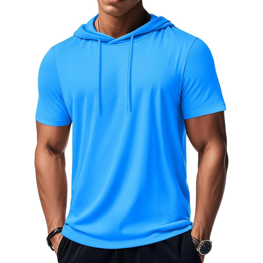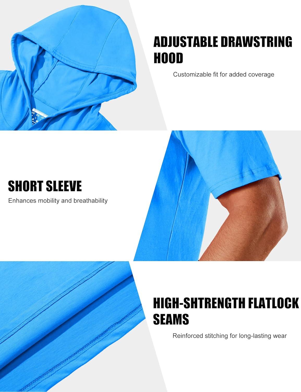 MAGCOMSEN Men’s Short Sleeve Hoodie Cotton Hooded T Shirts Lightweight Sweatshirt Hoodies Pullover(Azure)