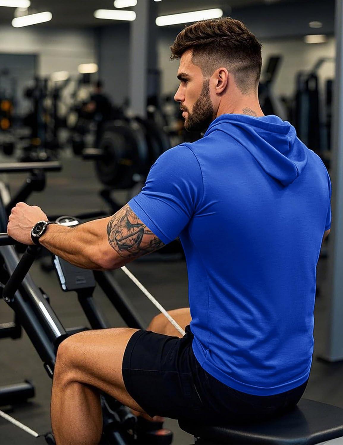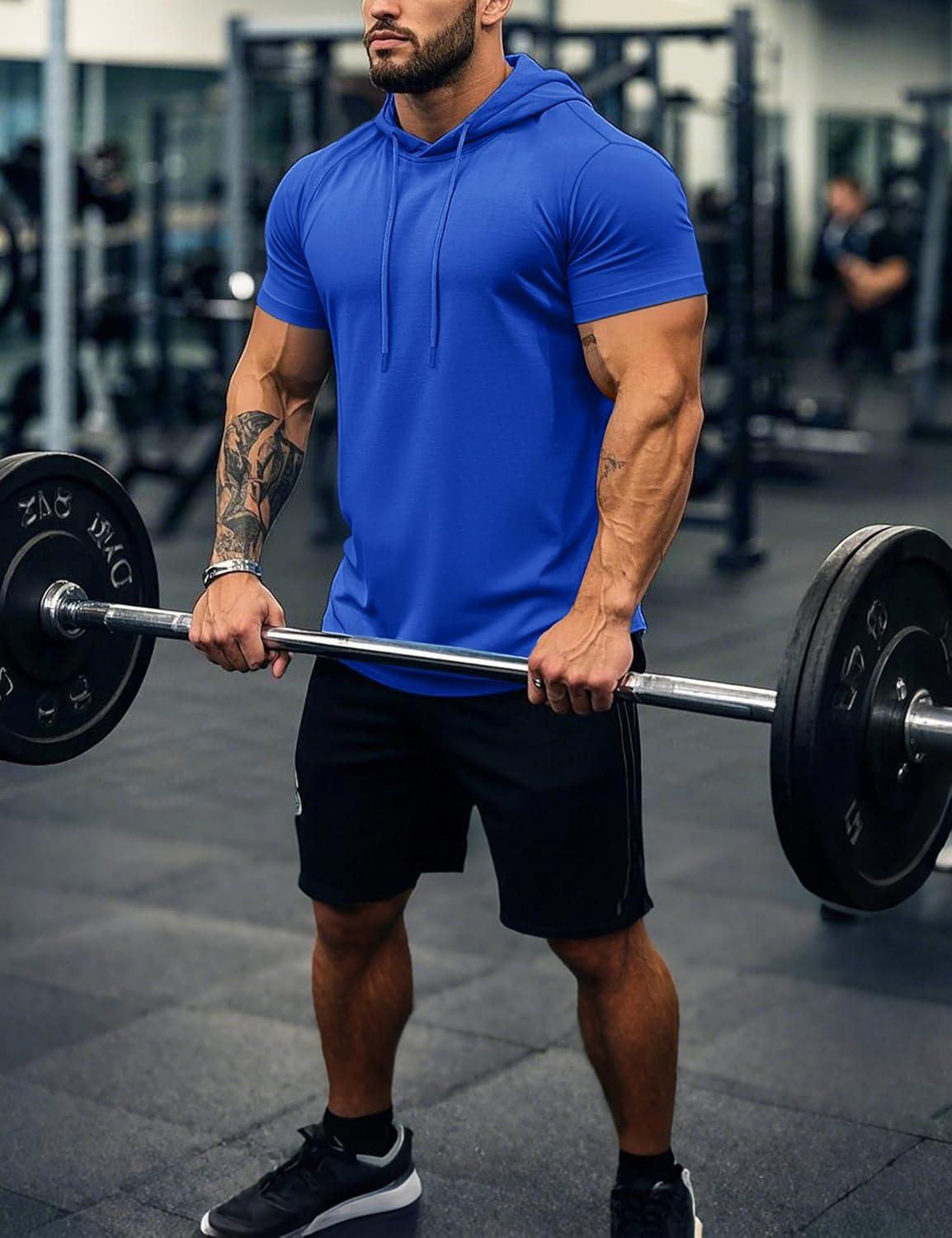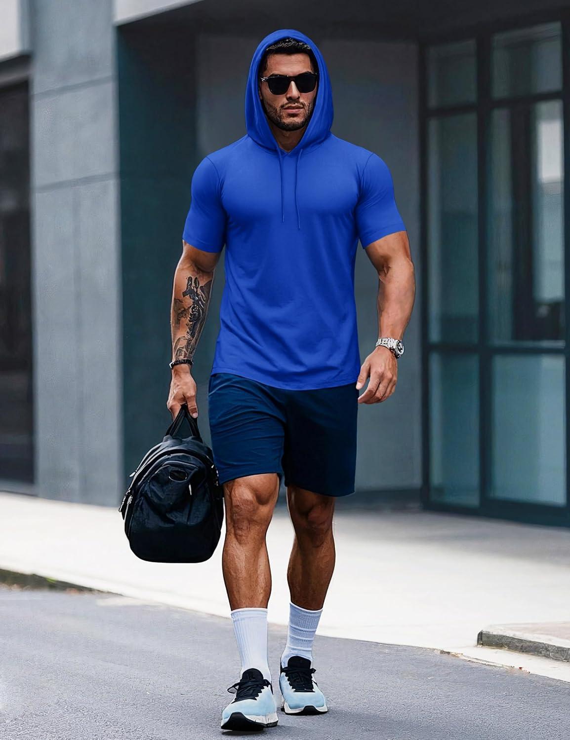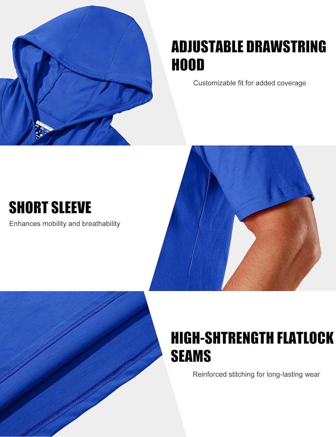 MAGCOMSEN Men’s Short Sleeve Hoodie Cotton Hooded T Shirts Lightweight Sweatshirt Hoodies Pullover(Color Blue)