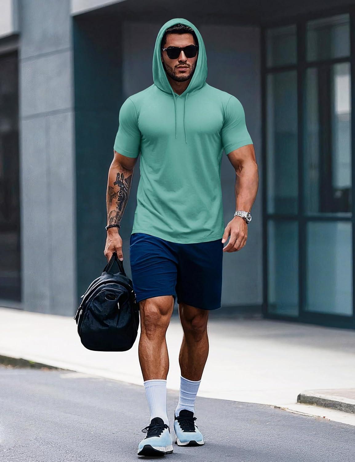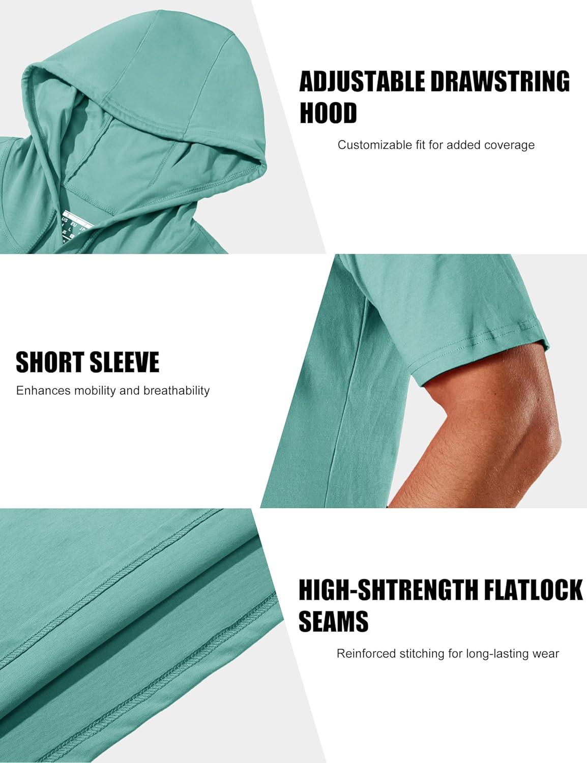 MAGCOMSEN Men’s Short Sleeve Hoodie Cotton Hooded T Shirts Lightweight Sweatshirt Hoodies Pullover(Grey Green)