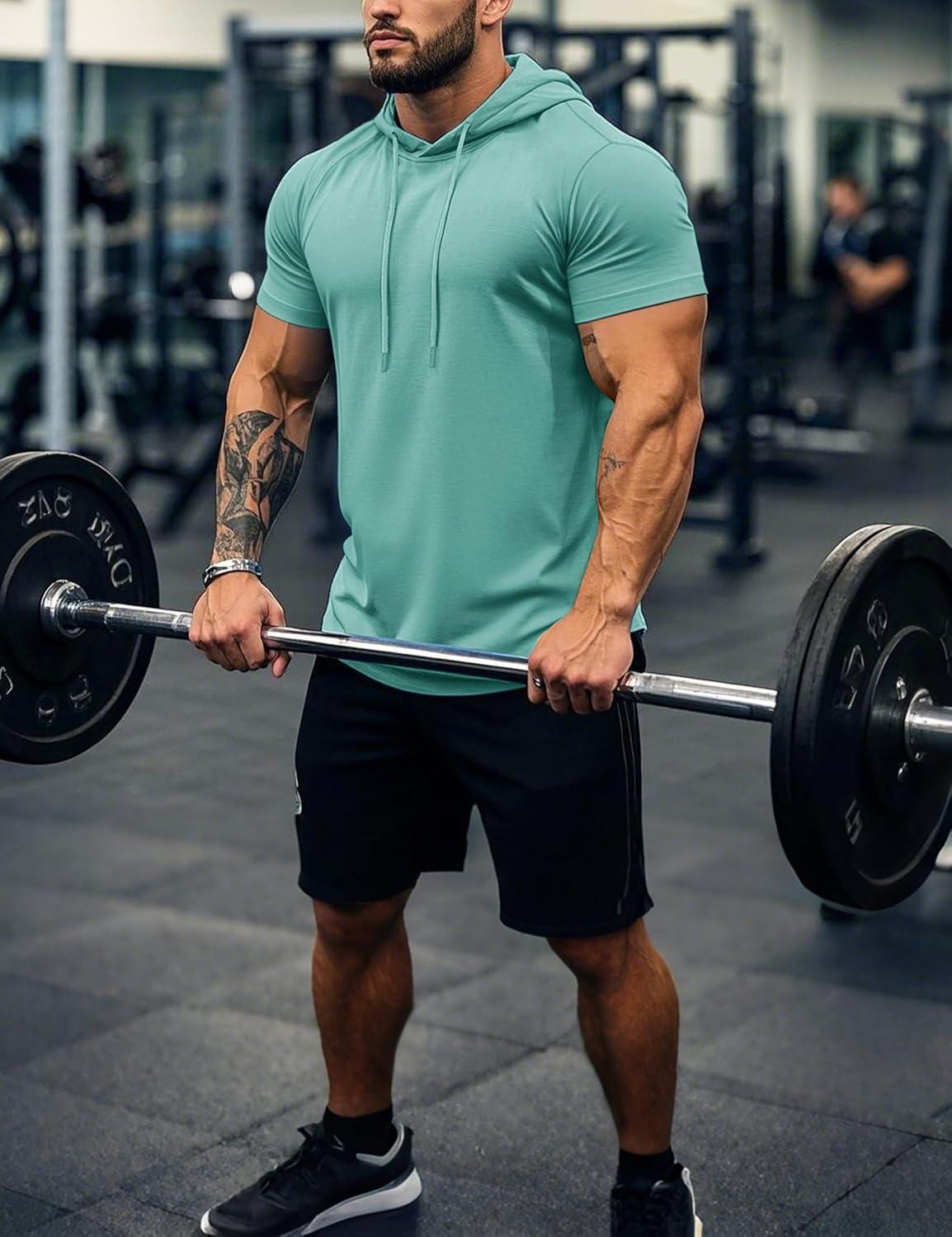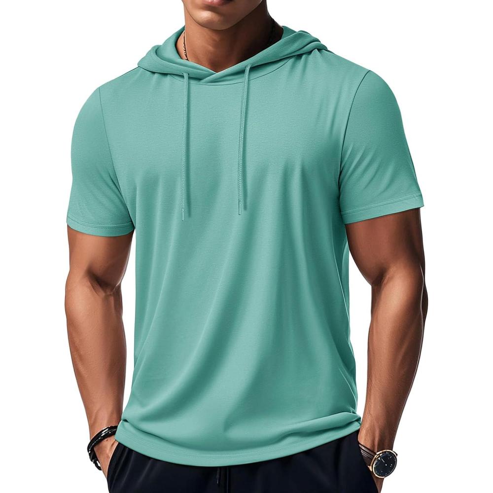 imageMAGCOMSEN Mens Short Sleeve Hoodie Cotton Hooded T Shirts Lightweight Sweatshirt Hoodies PulloverFluorescent Green