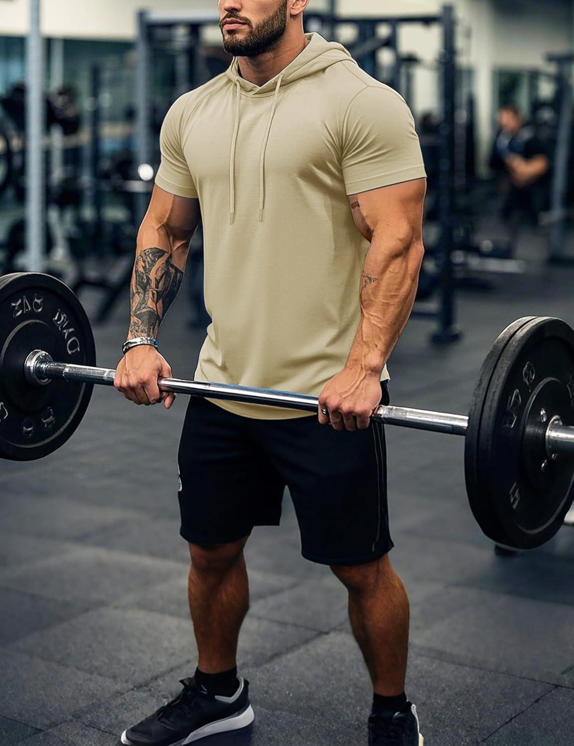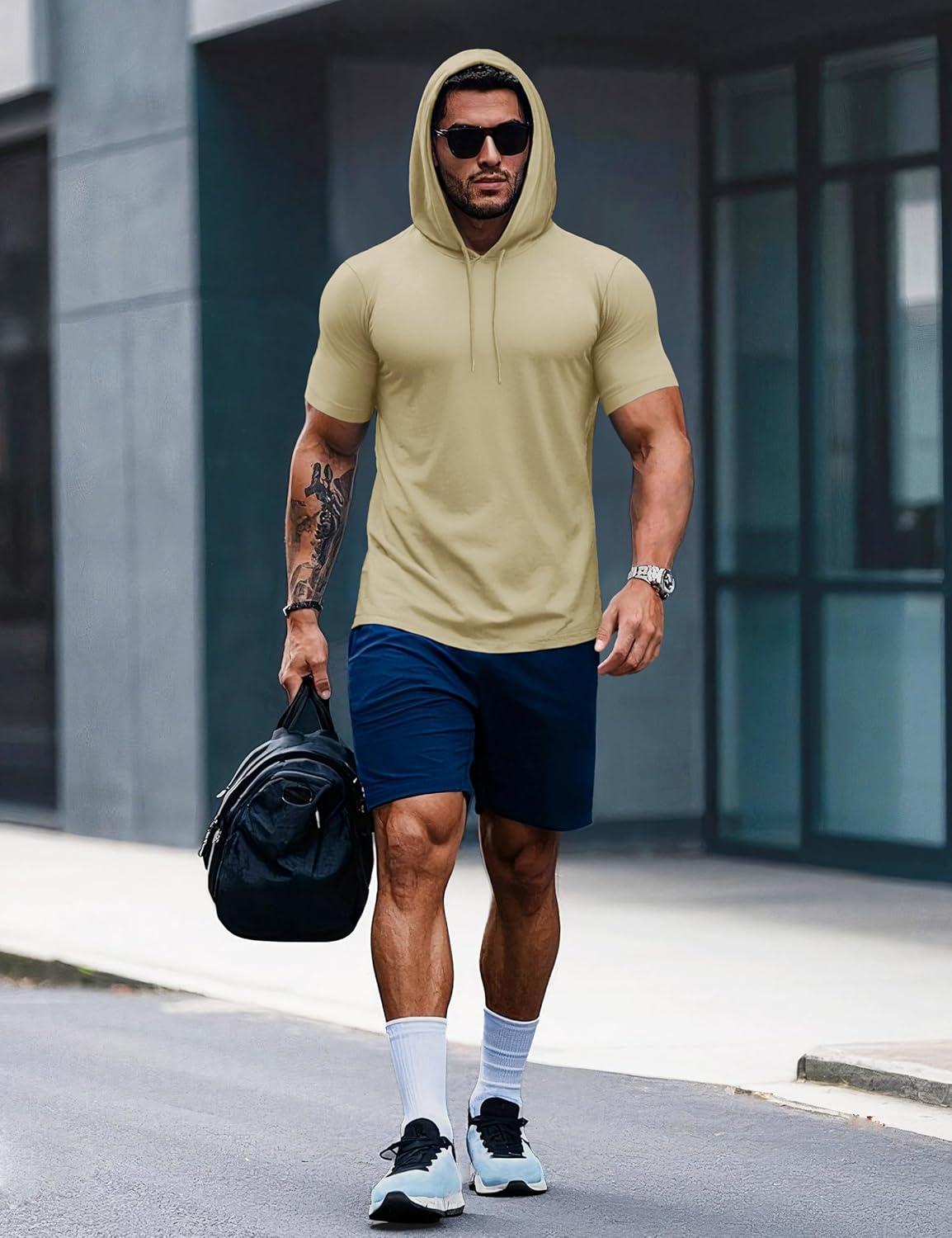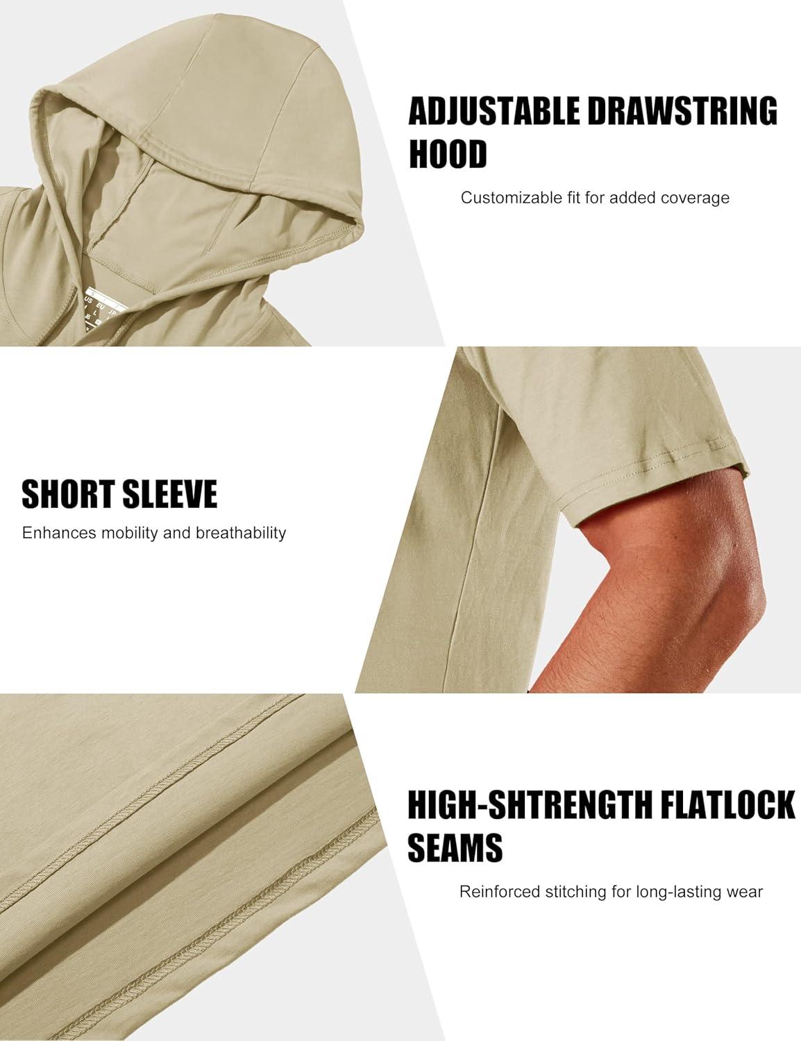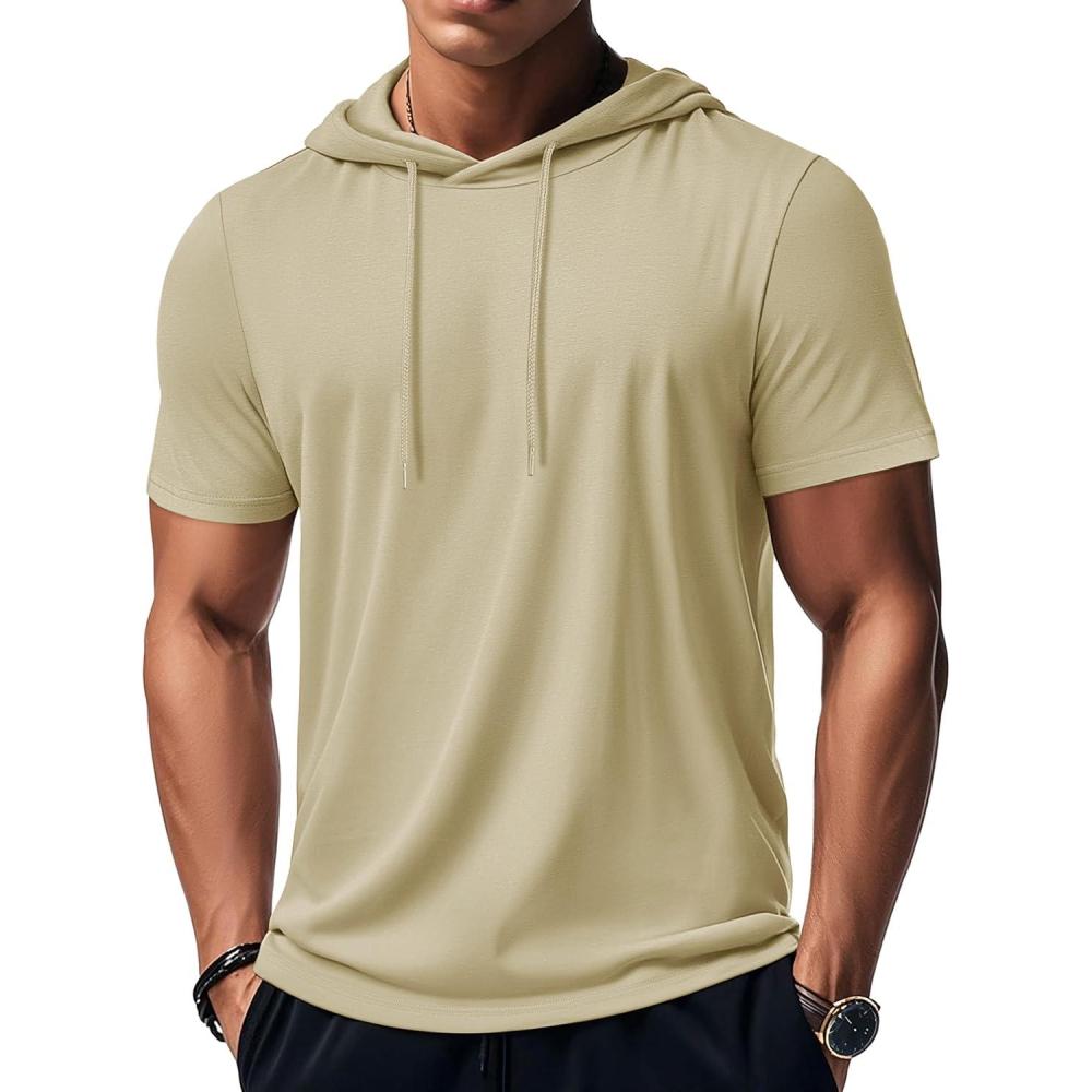 MAGCOMSEN Men’s Short Sleeve Hoodie Cotton Hooded T Shirts Lightweight Sweatshirt Hoodies Pullover(Khaki)