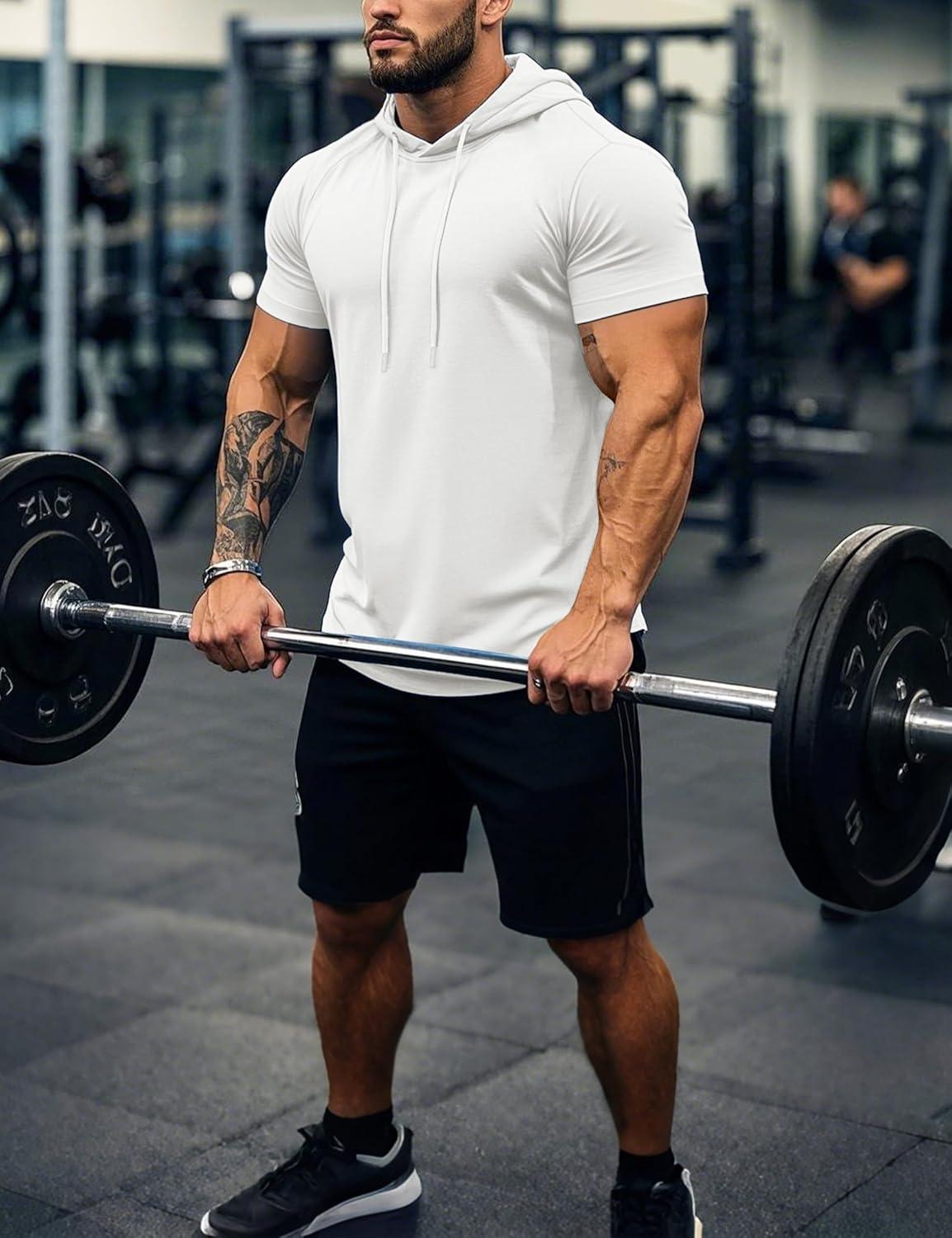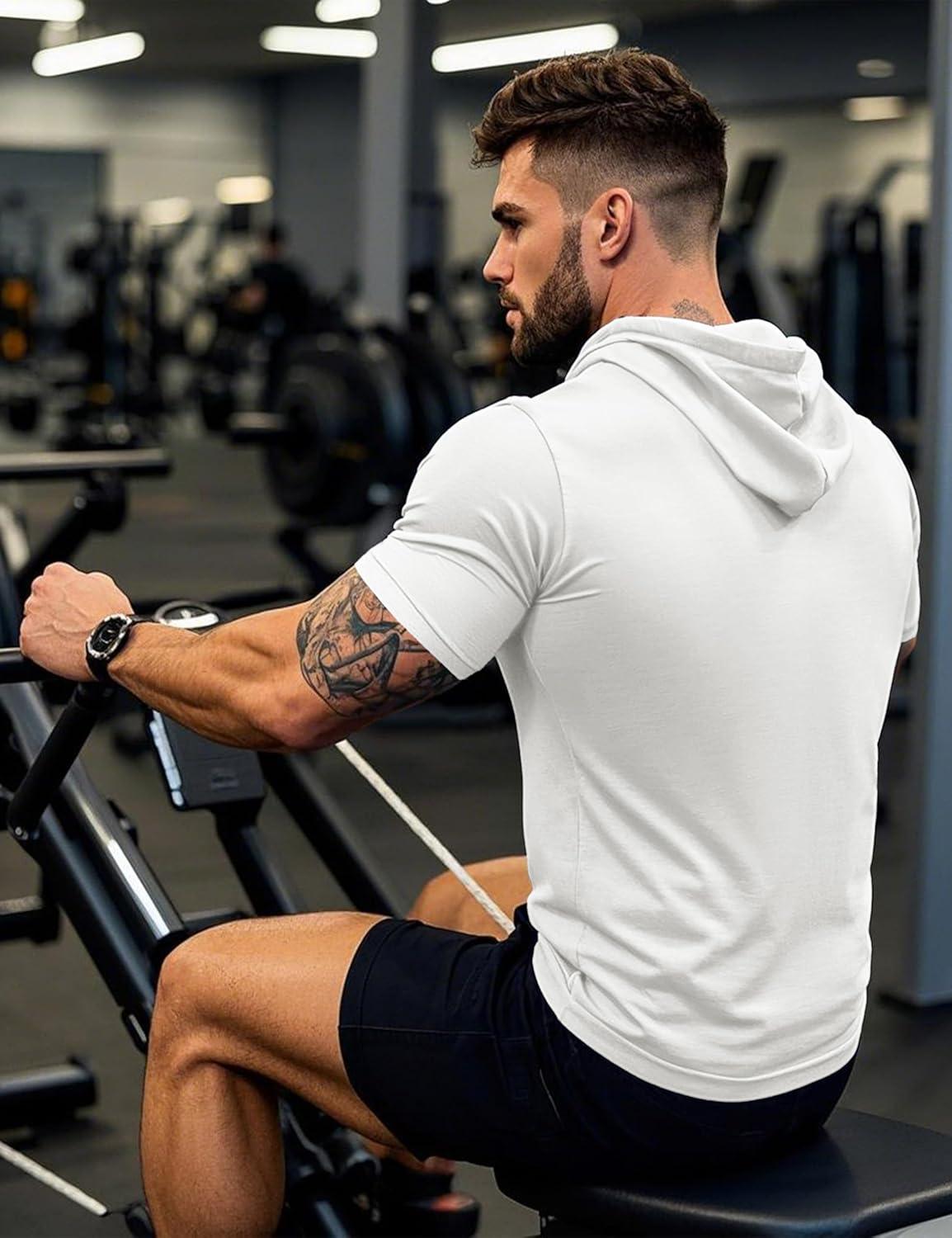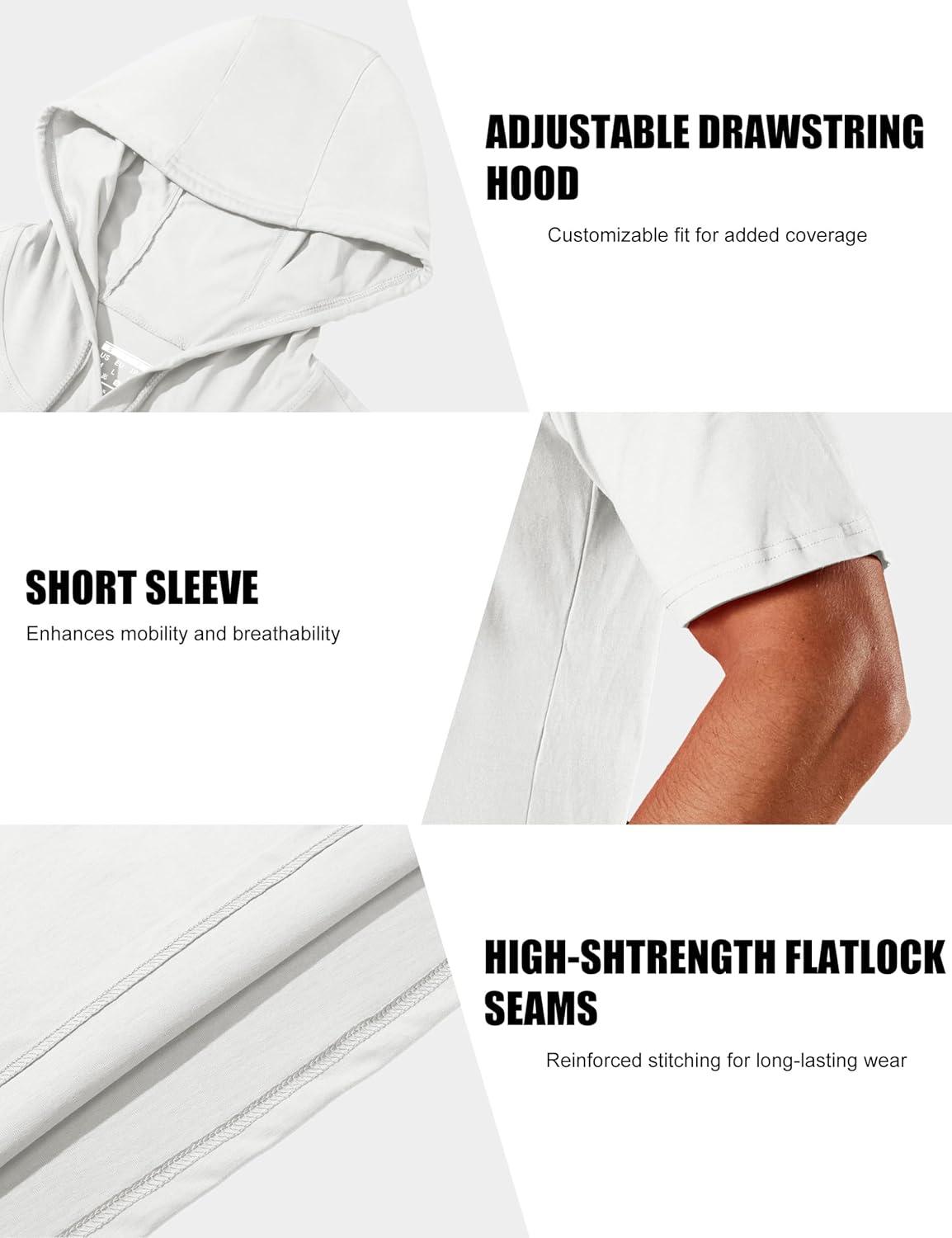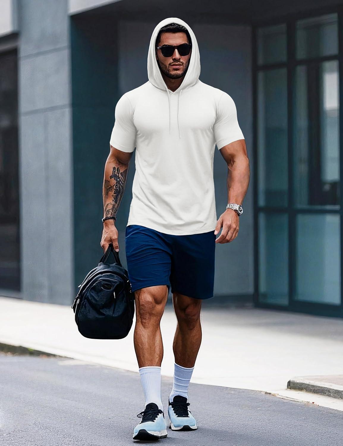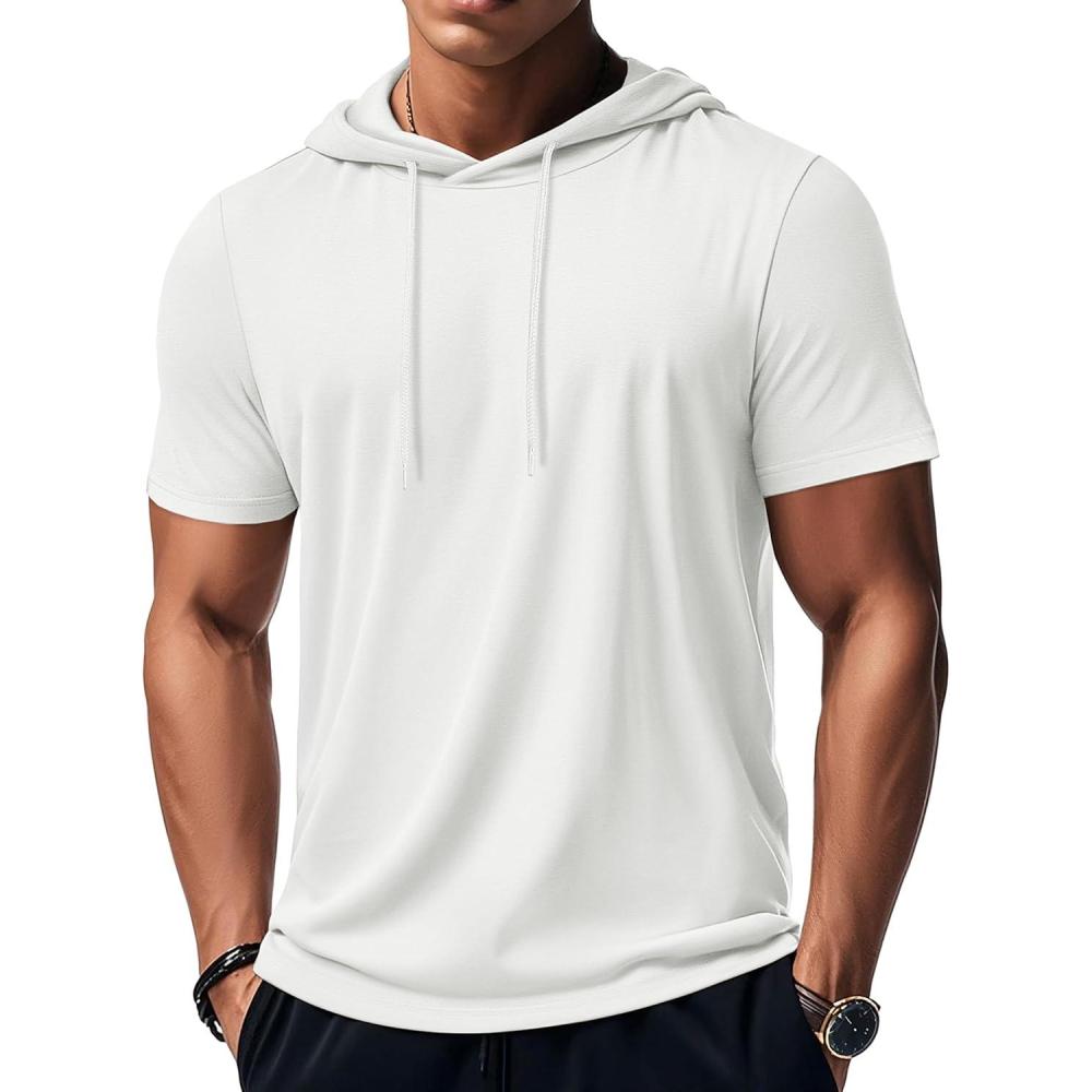 MAGCOMSEN Men’s Short Sleeve Hoodie Cotton Hooded T Shirts Lightweight Sweatshirt Hoodies Pullover(White)