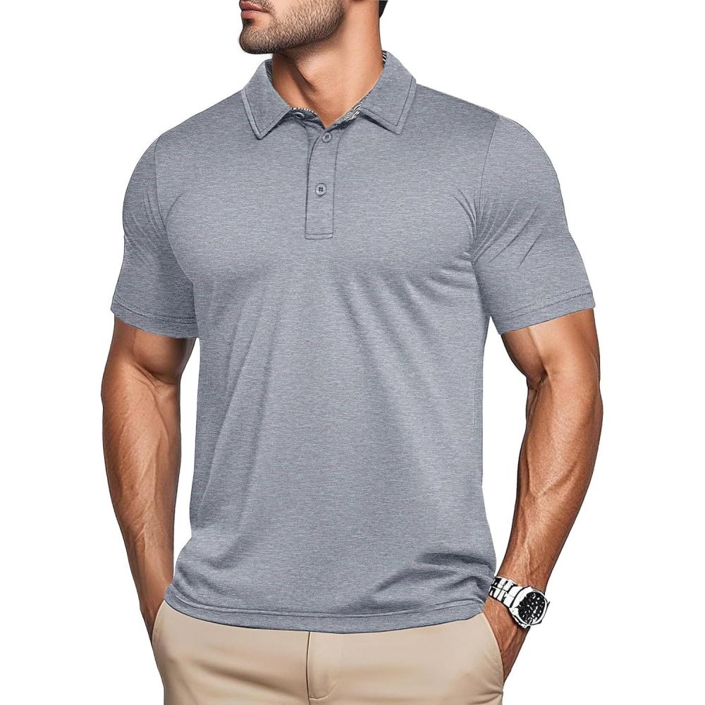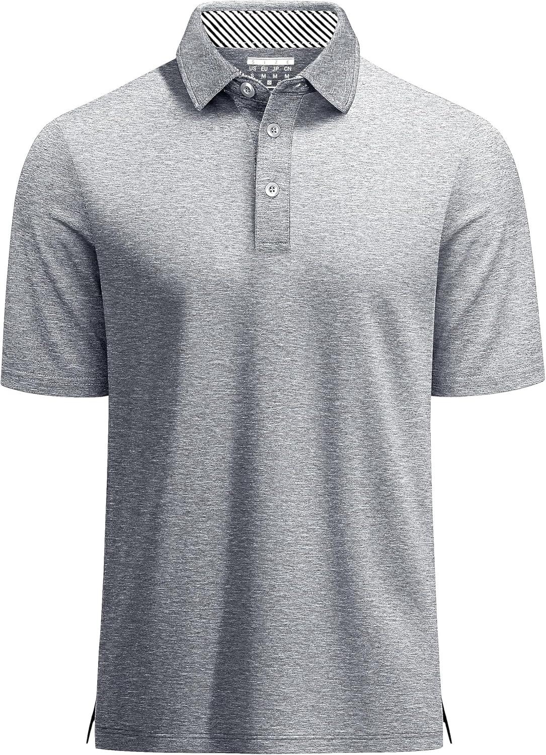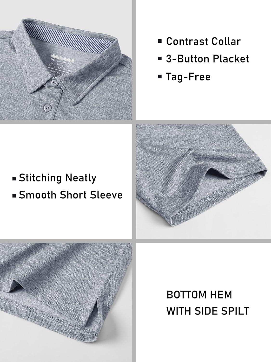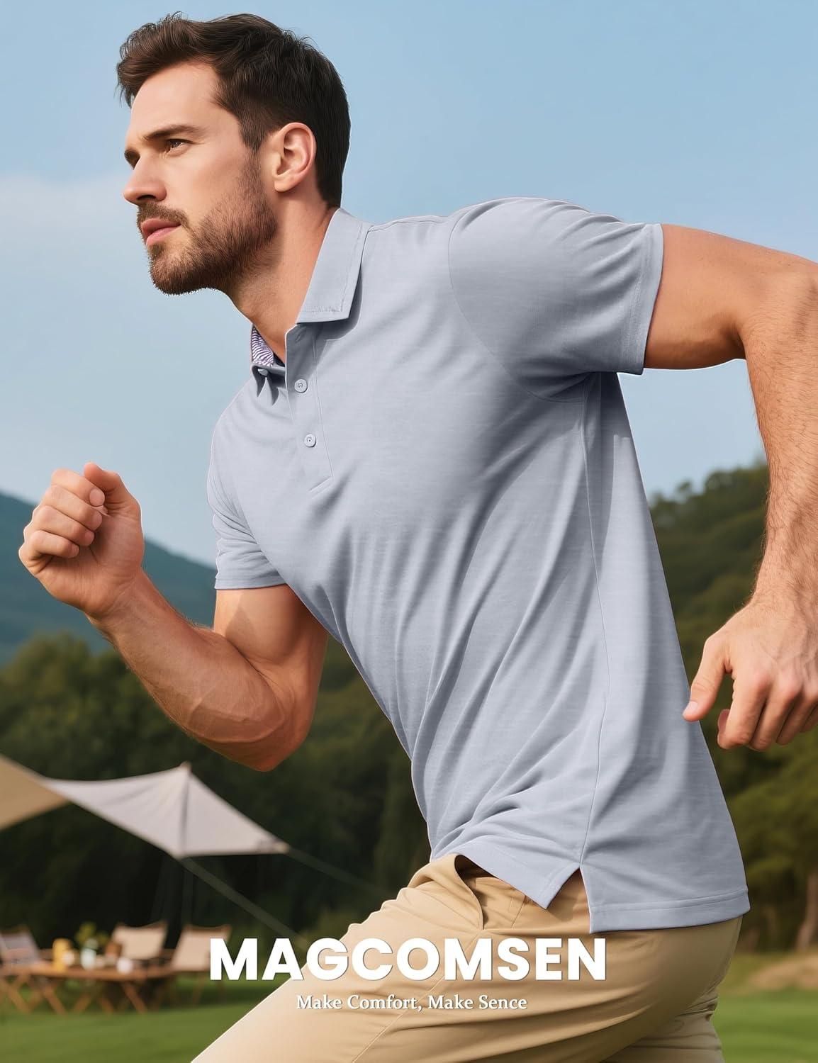 MAGCOMSEN Men’s Short Sleeve Polo Golf Shirts 3-Button Moisture Wicking Athletic T-Shirts Casual Collared Shirt(Light Grey)