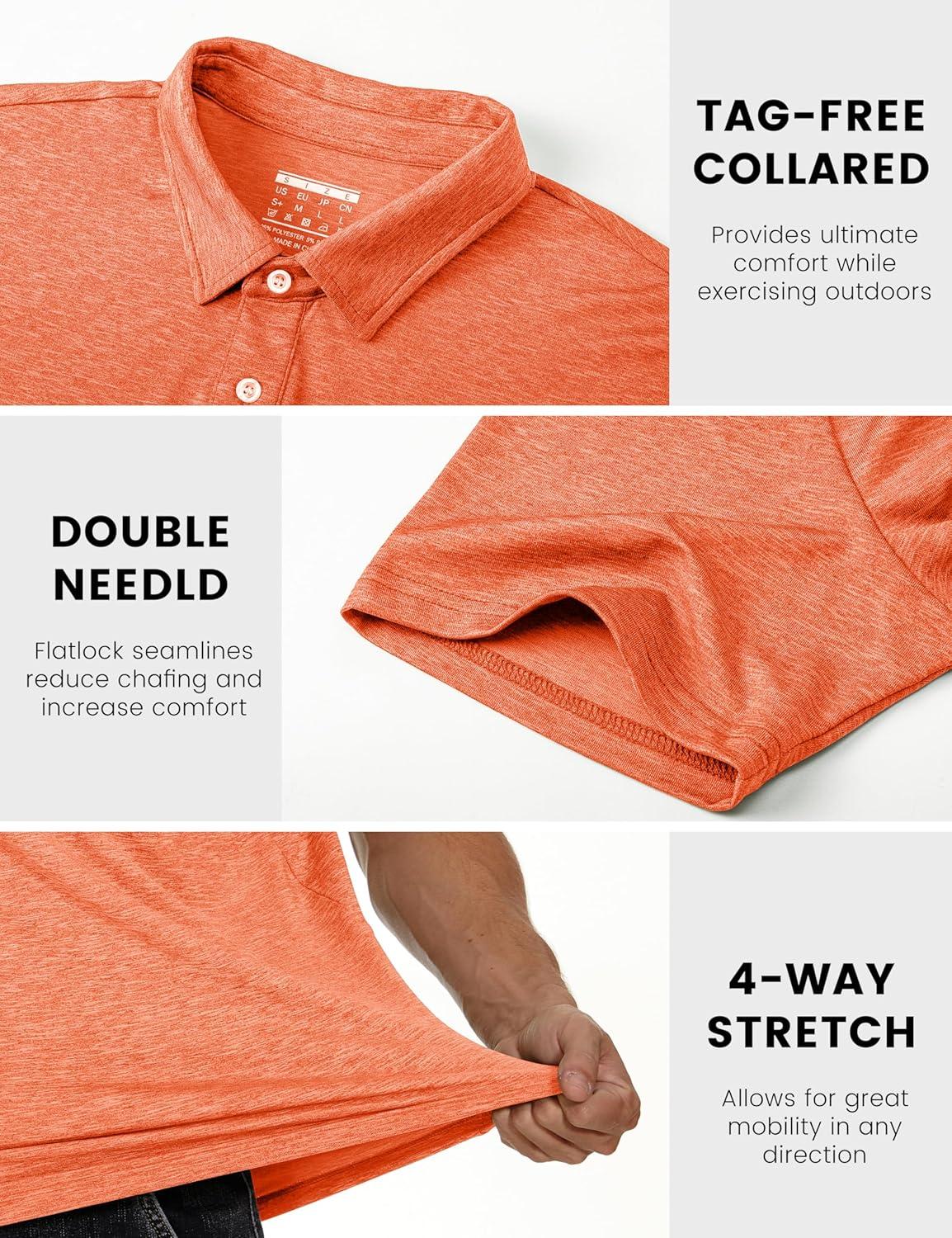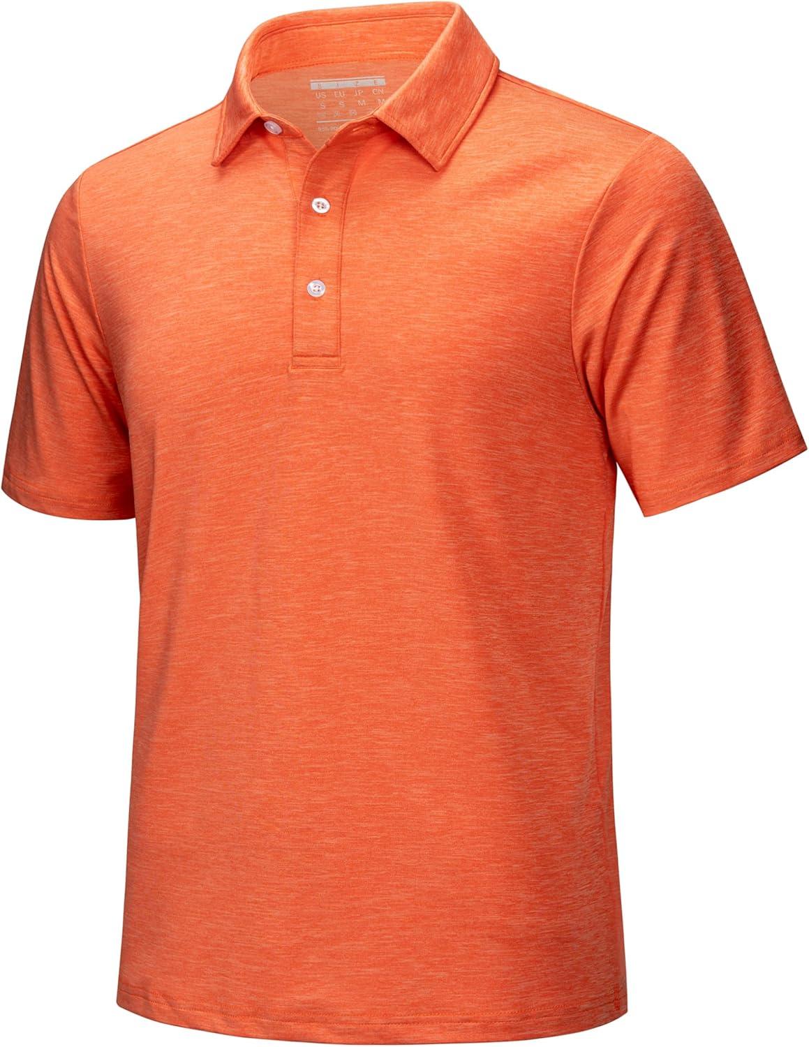 MAGCOMSEN Men’s Short-Sleeve Polo,Golf Shirts for Men 3-Button Moisture Wicking,Athletic Outdoor Collared T-Shirt(Orange)