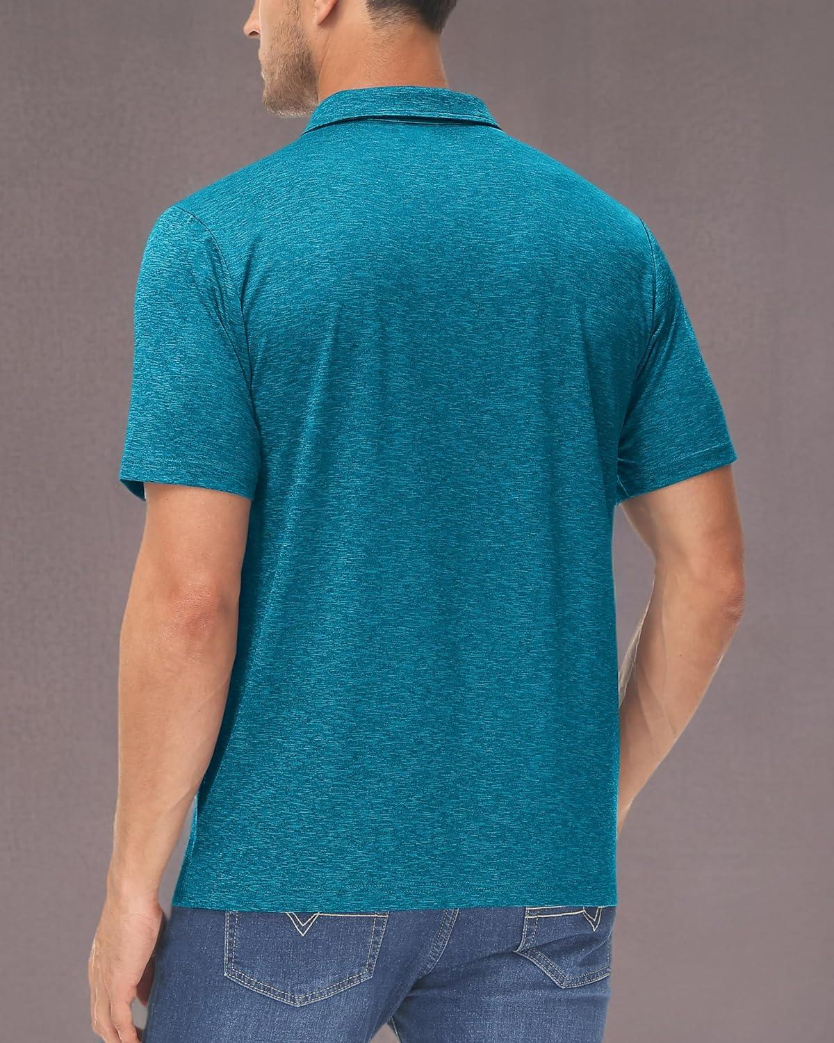 MAGCOMSEN Men’s Short-Sleeve Polo,Golf Shirts for Men 3-Button Moisture Wicking,Athletic Outdoor Collared T-Shirt(Peacock Blue)