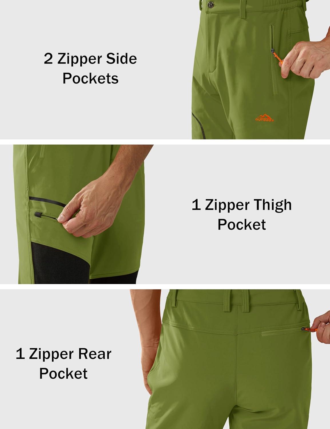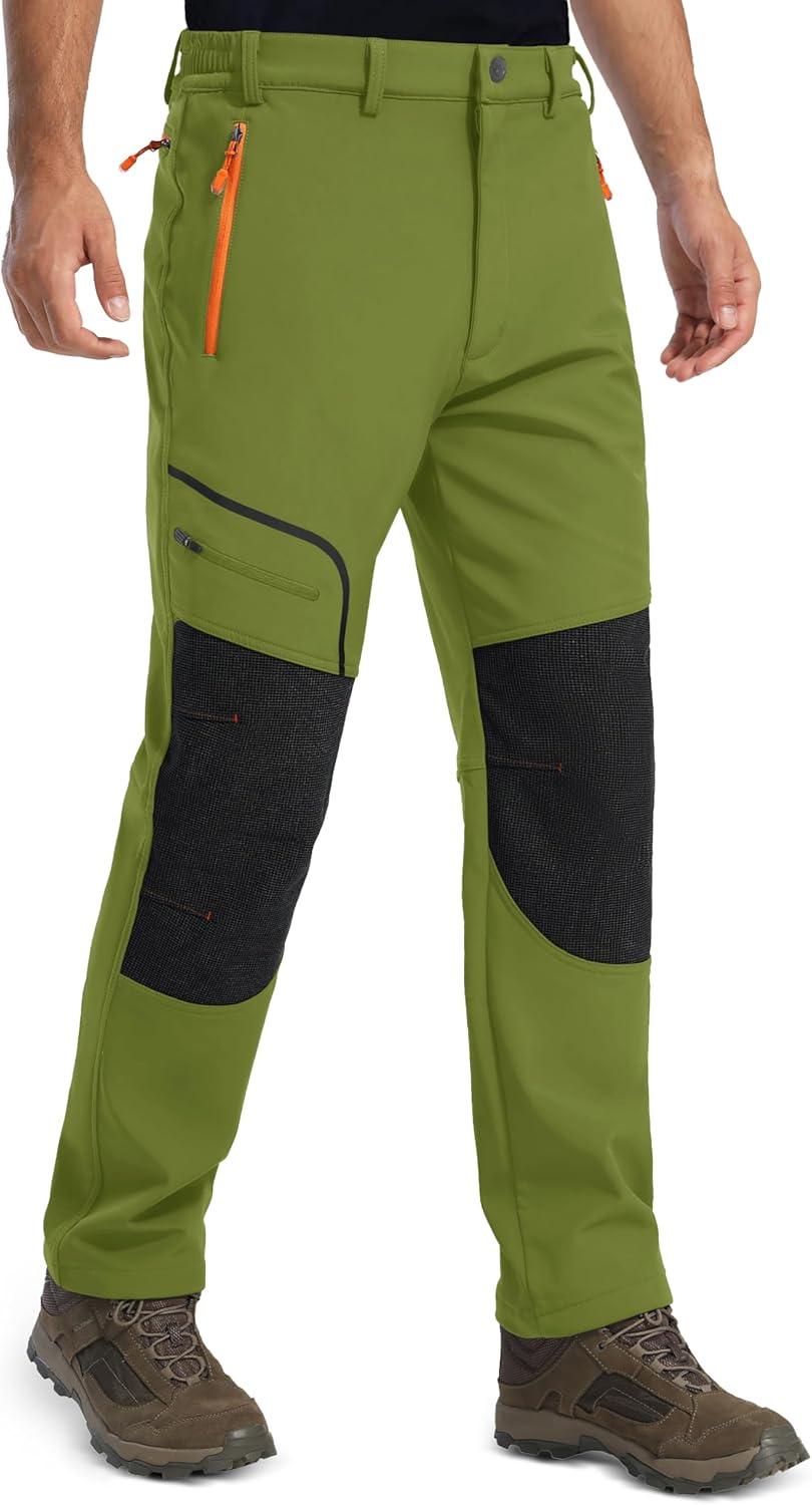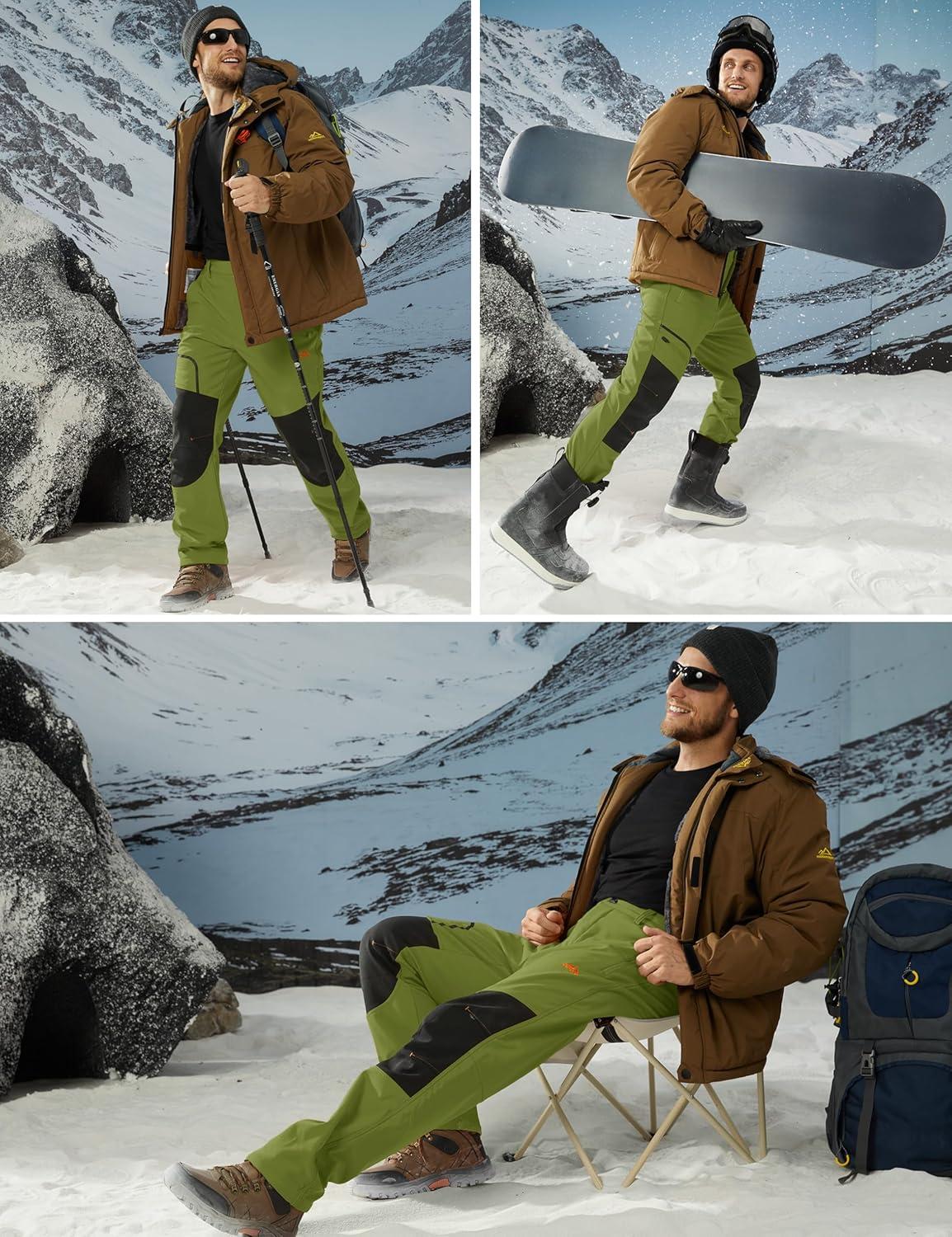 MAGCOMSEN Men’s Snow Ski Pants Fleece Lined Winter Water Resistant Insulated Work Hiking Snowboard Pants 4 Pockets(Dark Green)