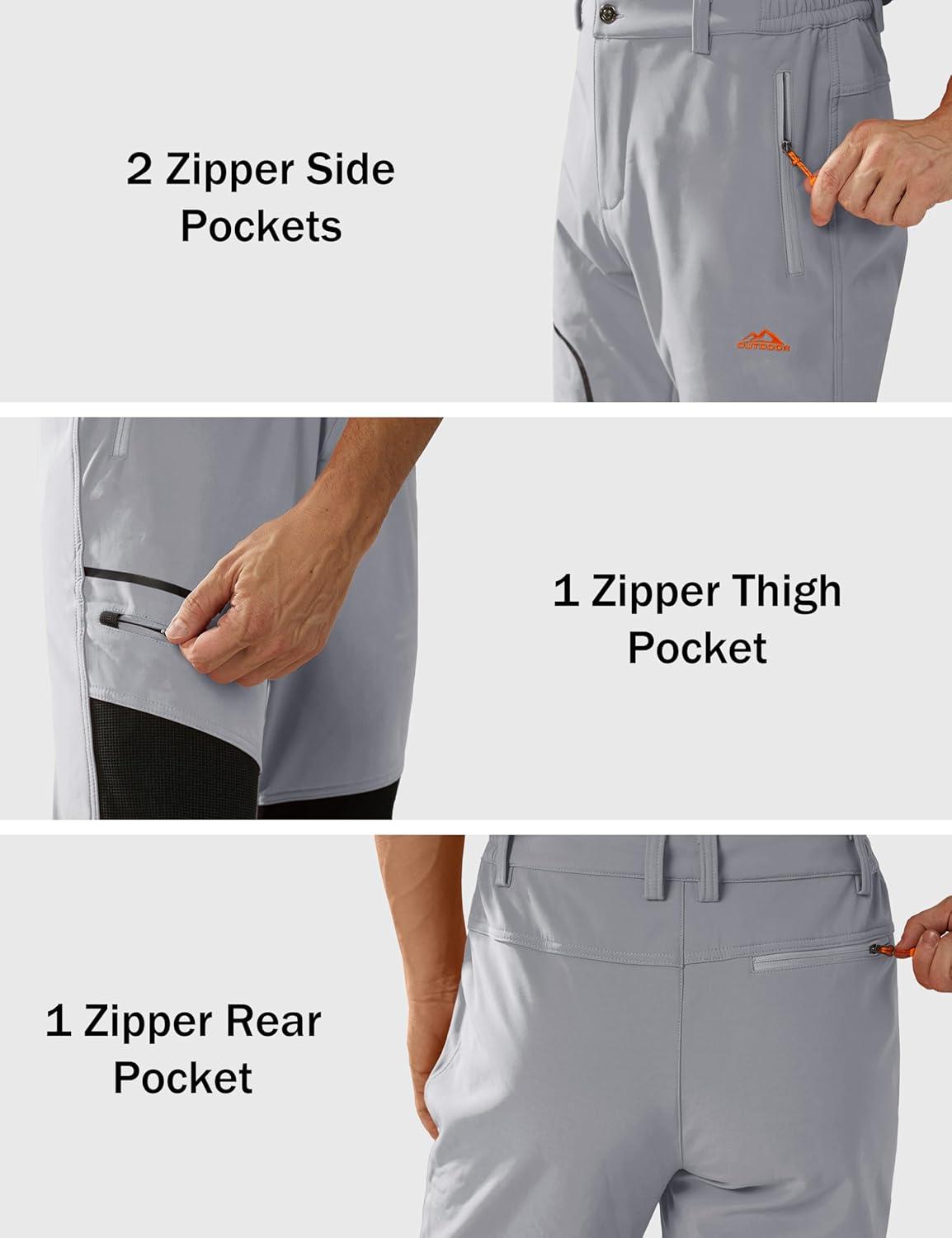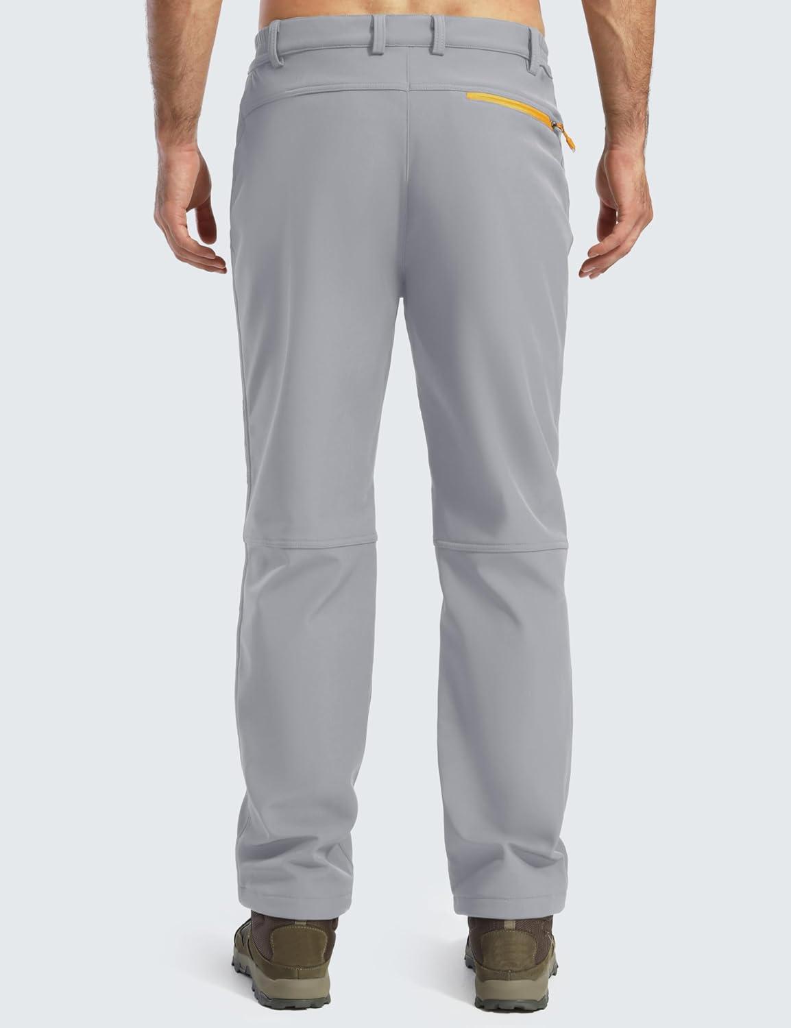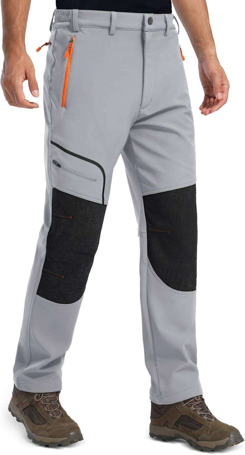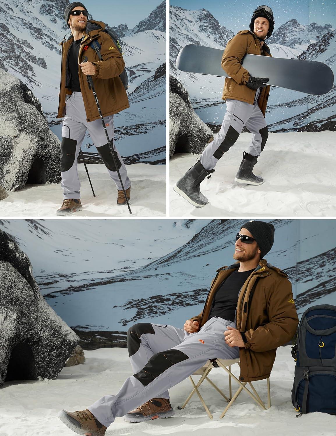 MAGCOMSEN Men’s Snow Ski Pants Fleece Lined Winter Water Resistant Insulated Work Hiking Snowboard Pants 4 Pockets(Light Grey)