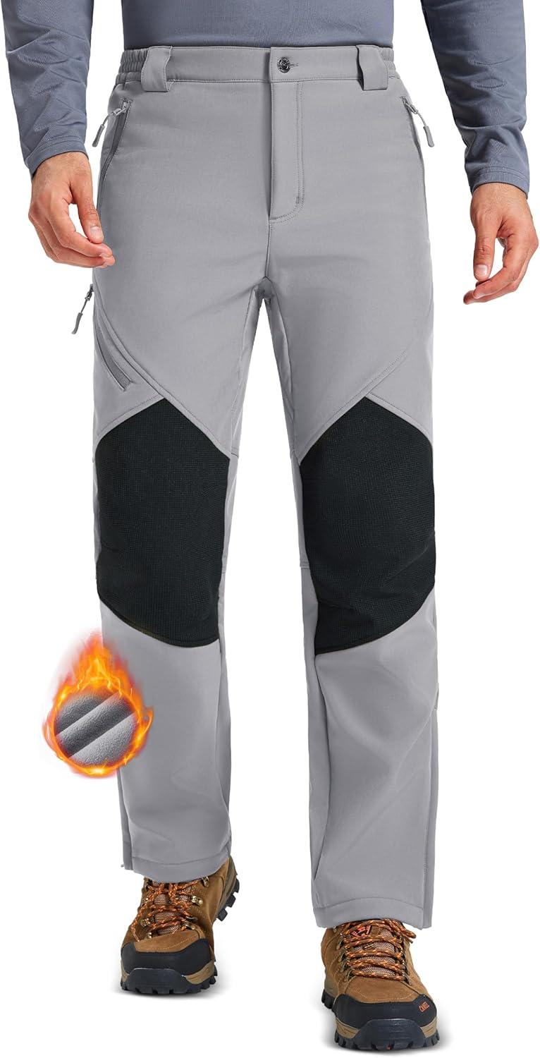 MAGCOMSEN Men’s Snow Ski Waterproof Pants Winter Fleece Lined Insulated Work Outdoor Hiking Snowboard Pants 4 Pockets(Light Gray)