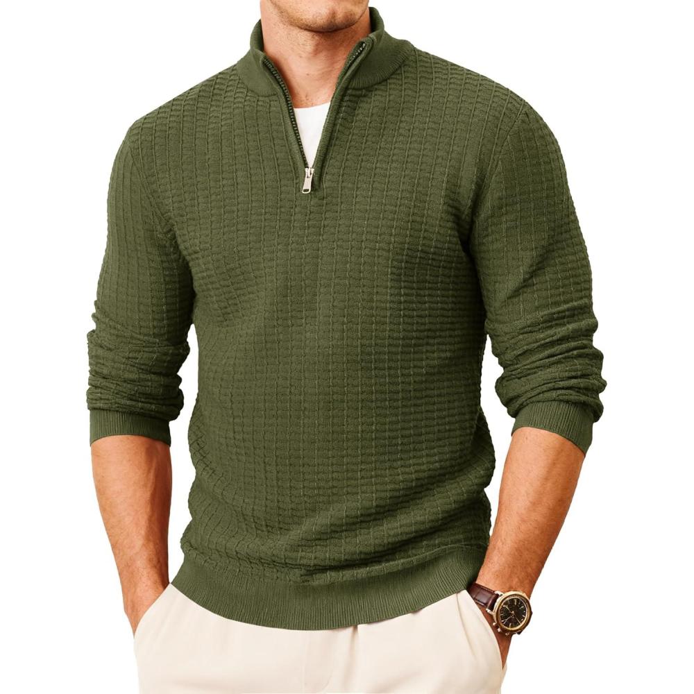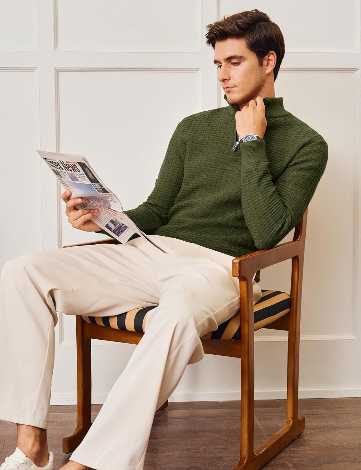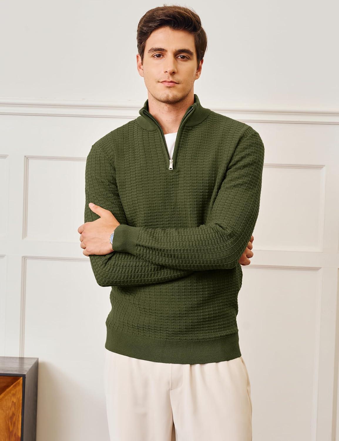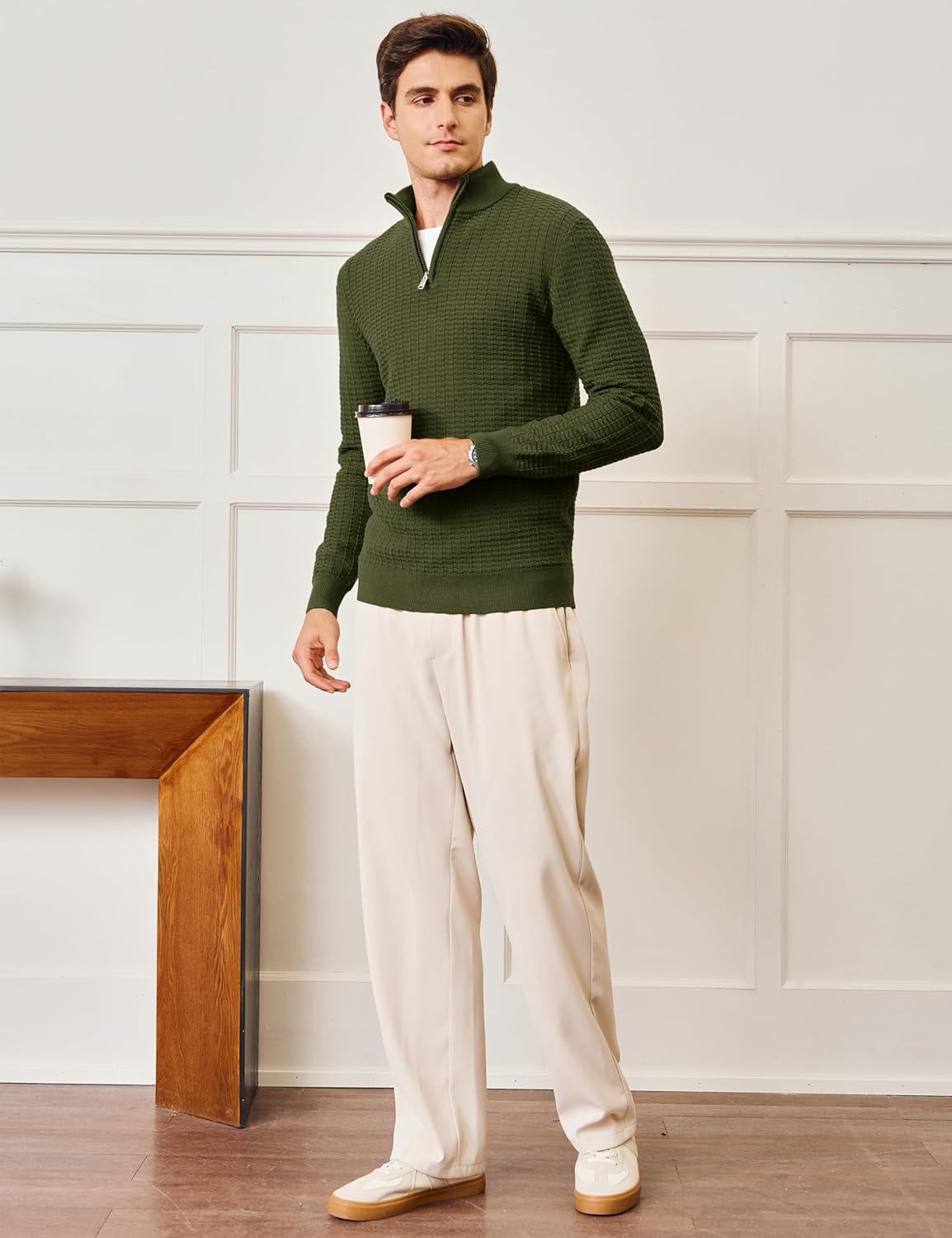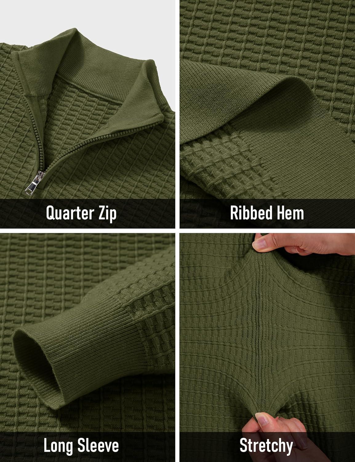 MAGCOMSEN Men’s Sweaters 1/4 Zip Knit Waffle Textured Pullover for Fall Winter Warm Soft Sweater(Army Green)