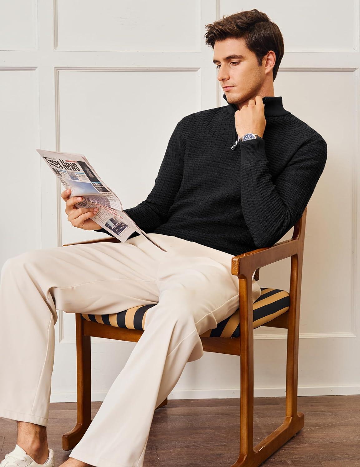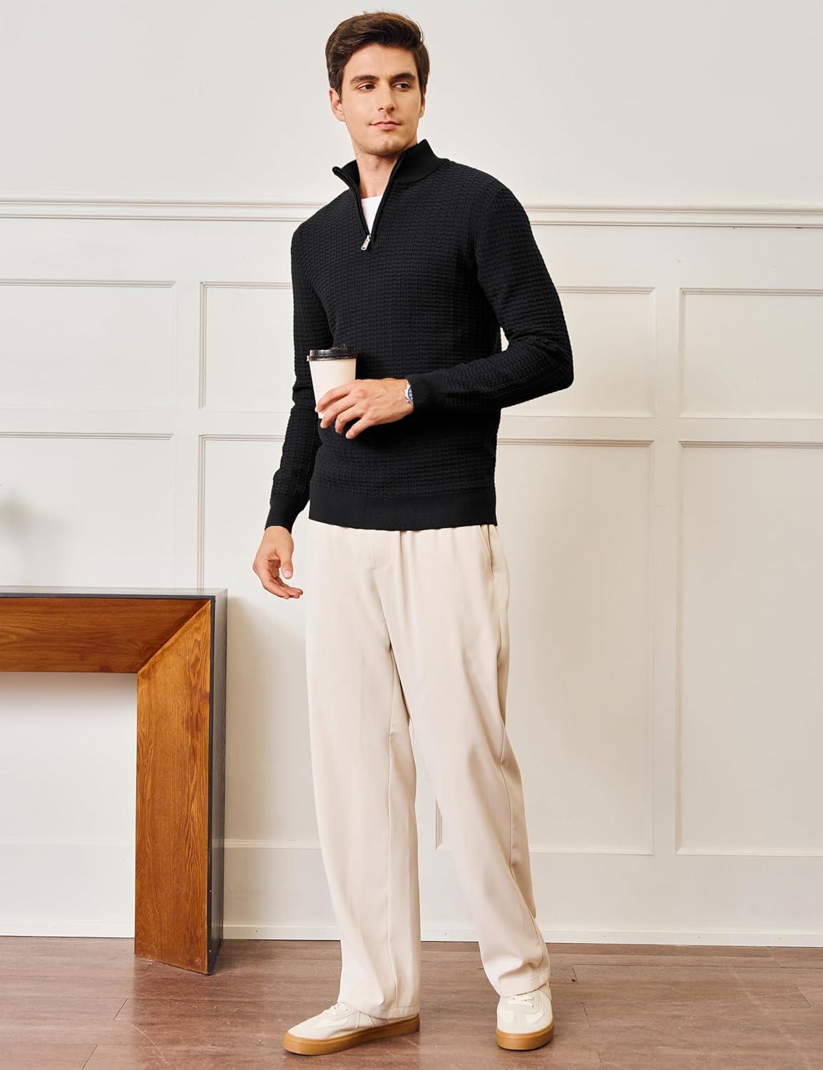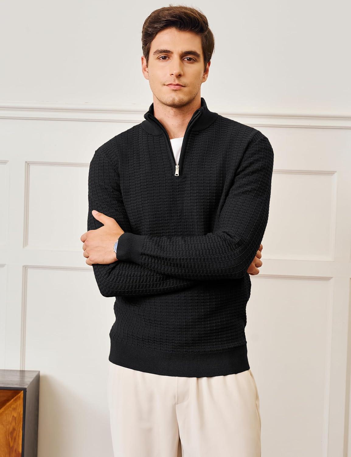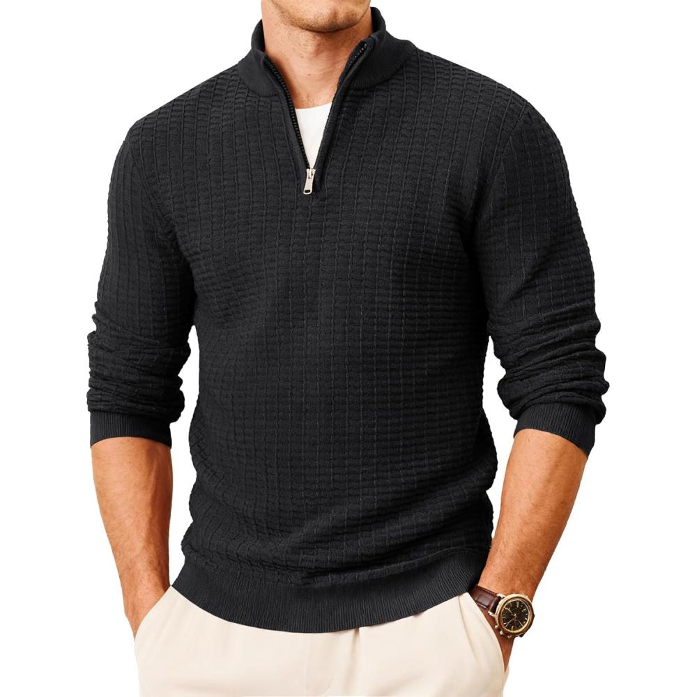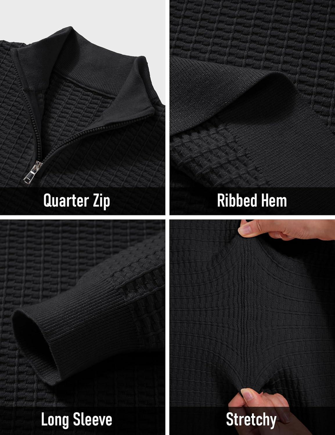 MAGCOMSEN Men’s Sweaters 1/4 Zip Knit Waffle Textured Pullover for Fall Winter Warm Soft Sweater(Black)