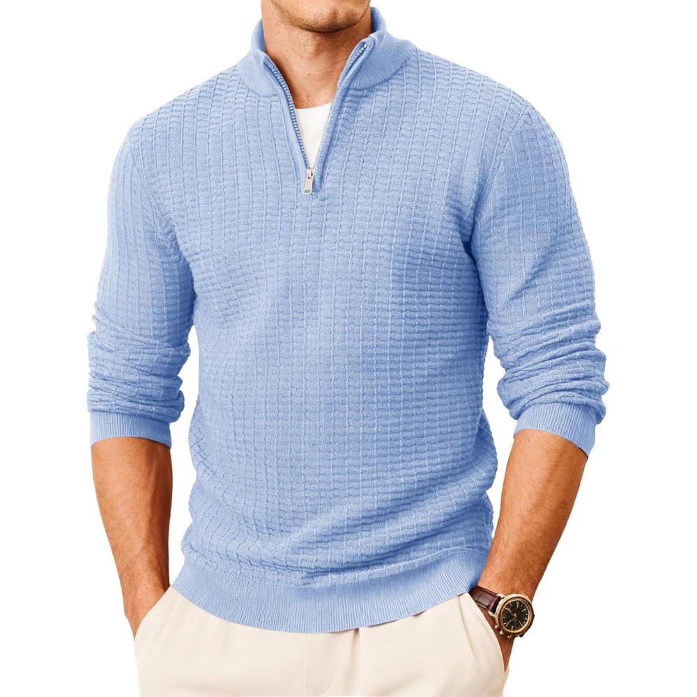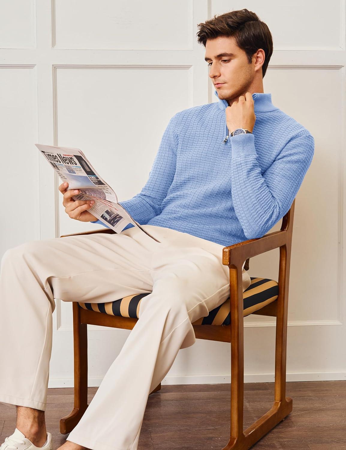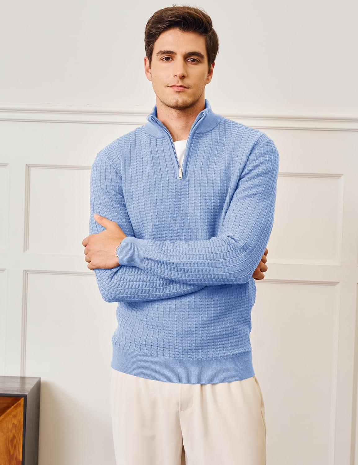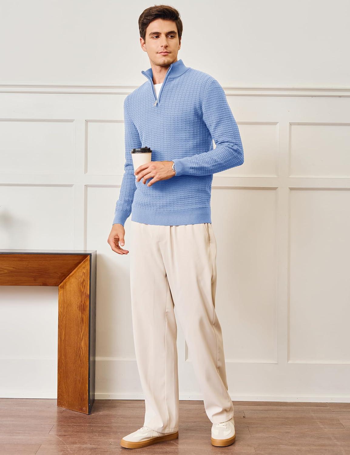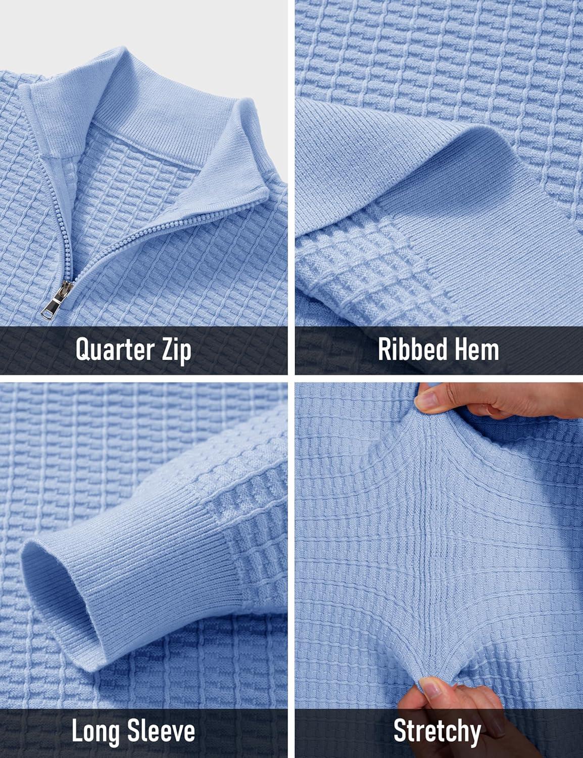 MAGCOMSEN Men’s Sweaters 1/4 Zip Knit Waffle Textured Pullover for Fall Winter Warm Soft Sweater(Blue)