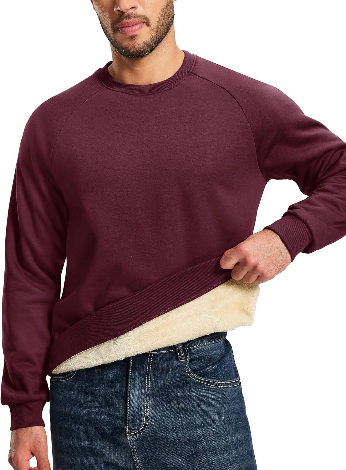 MAGCOMSEN Men’s Sweatshirts Sherpa Lined, Heavyweight Fleece Pullover, Warm Crewneck Winter Sweatshirt(Wine Red)