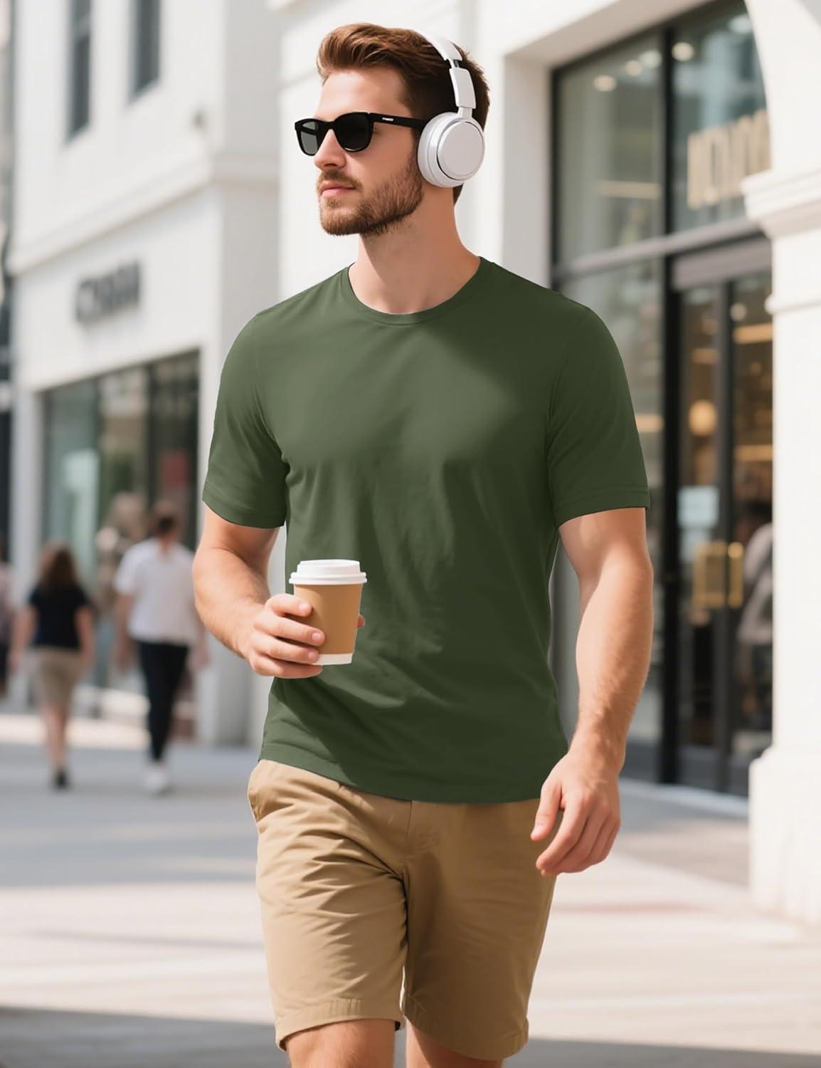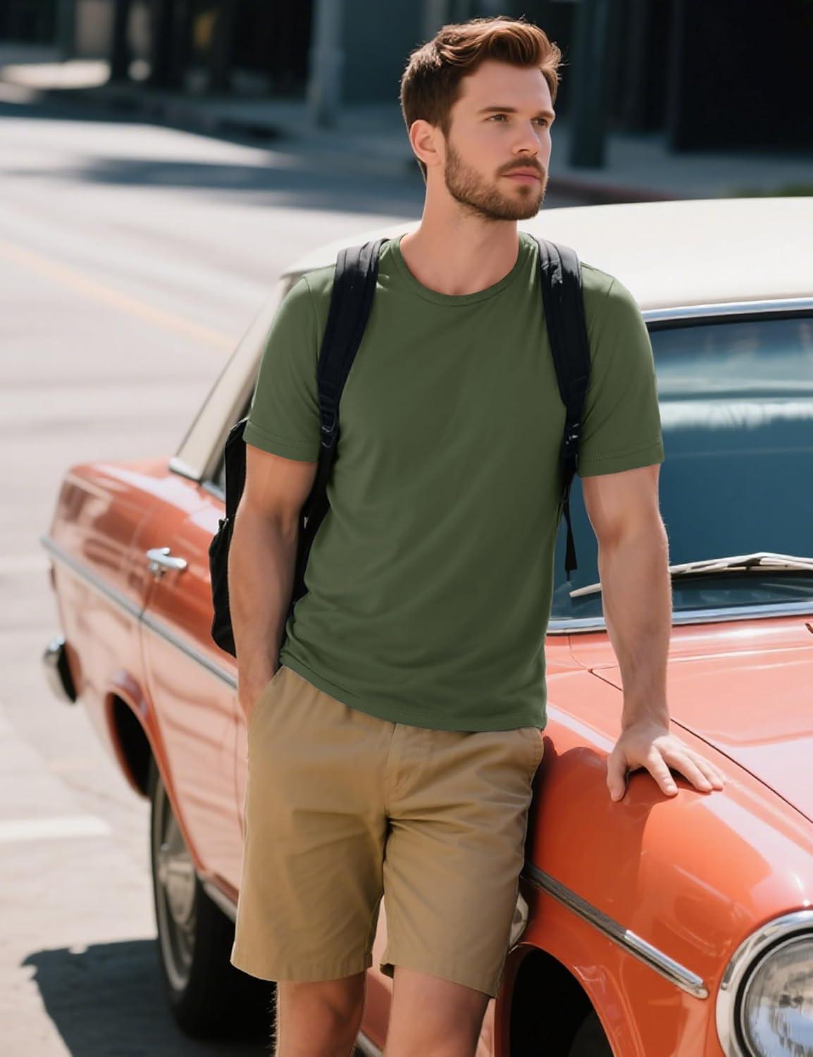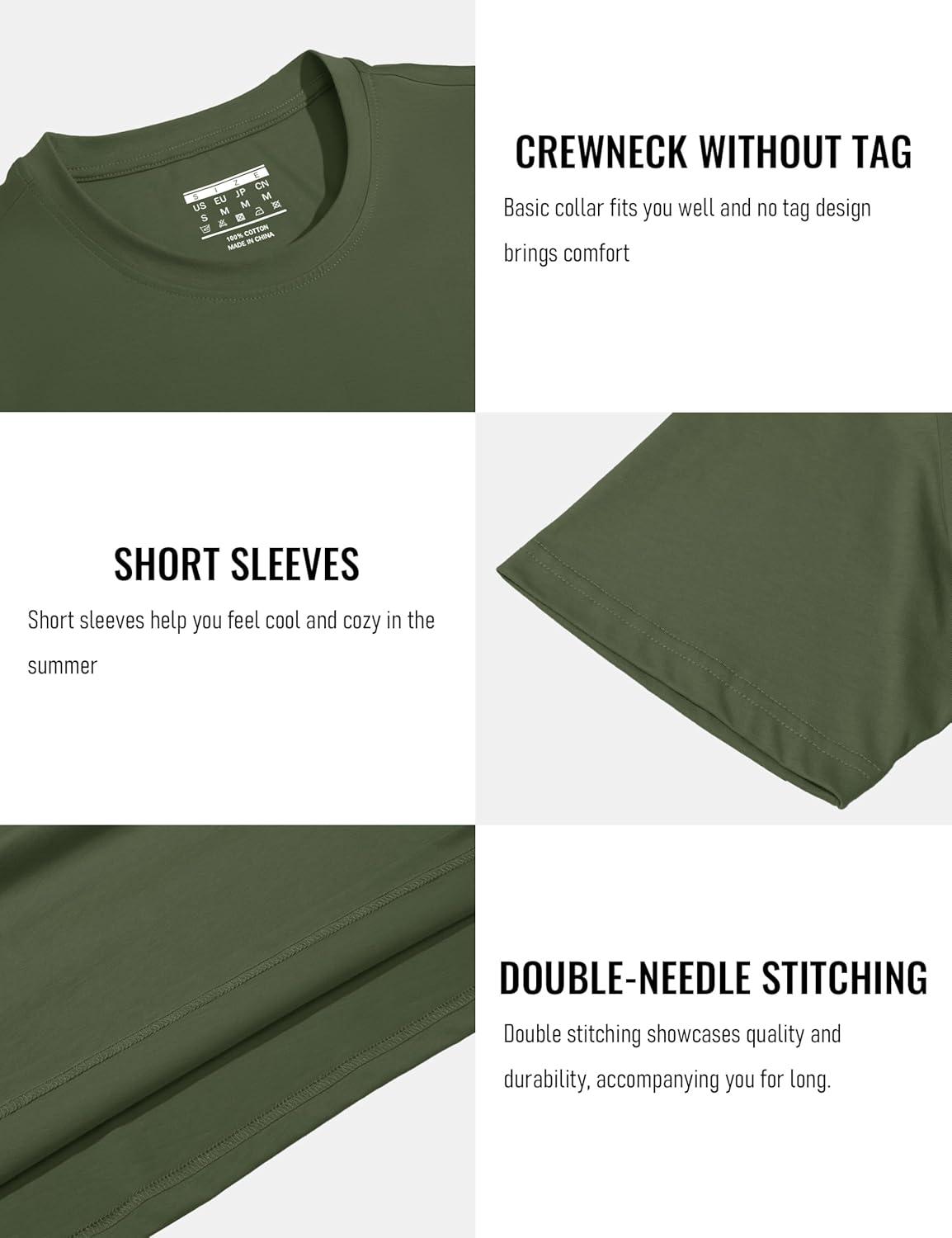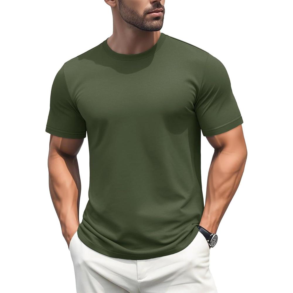 MAGCOMSEN Men’s T-Shirts Short Sleeve Cotton Crew Neck Soft Breathable T Shirts Casual Plain Classic Summer Tees(Army Green)