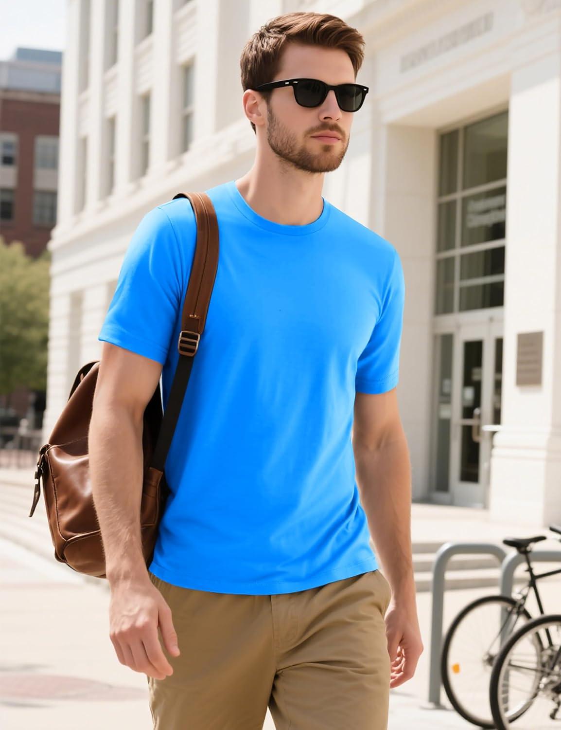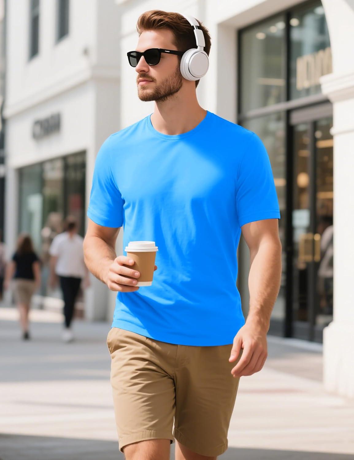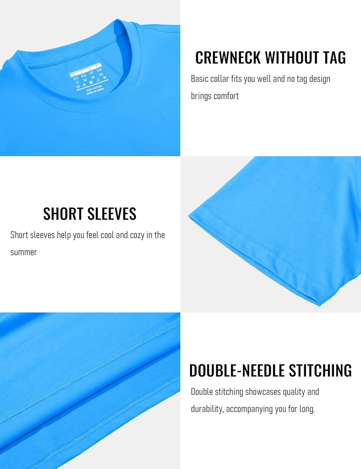 MAGCOMSEN Men’s T-Shirts Short Sleeve Cotton Crew Neck Soft Breathable T Shirts Casual Plain Classic Summer Tees(Azure)