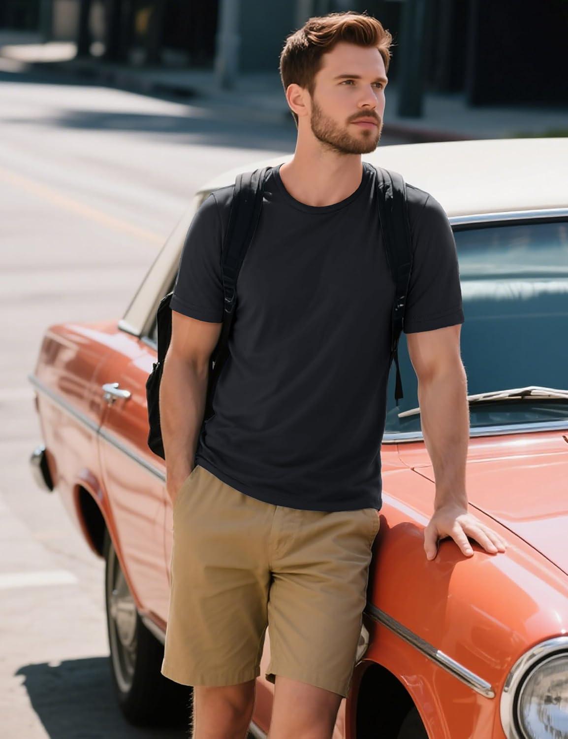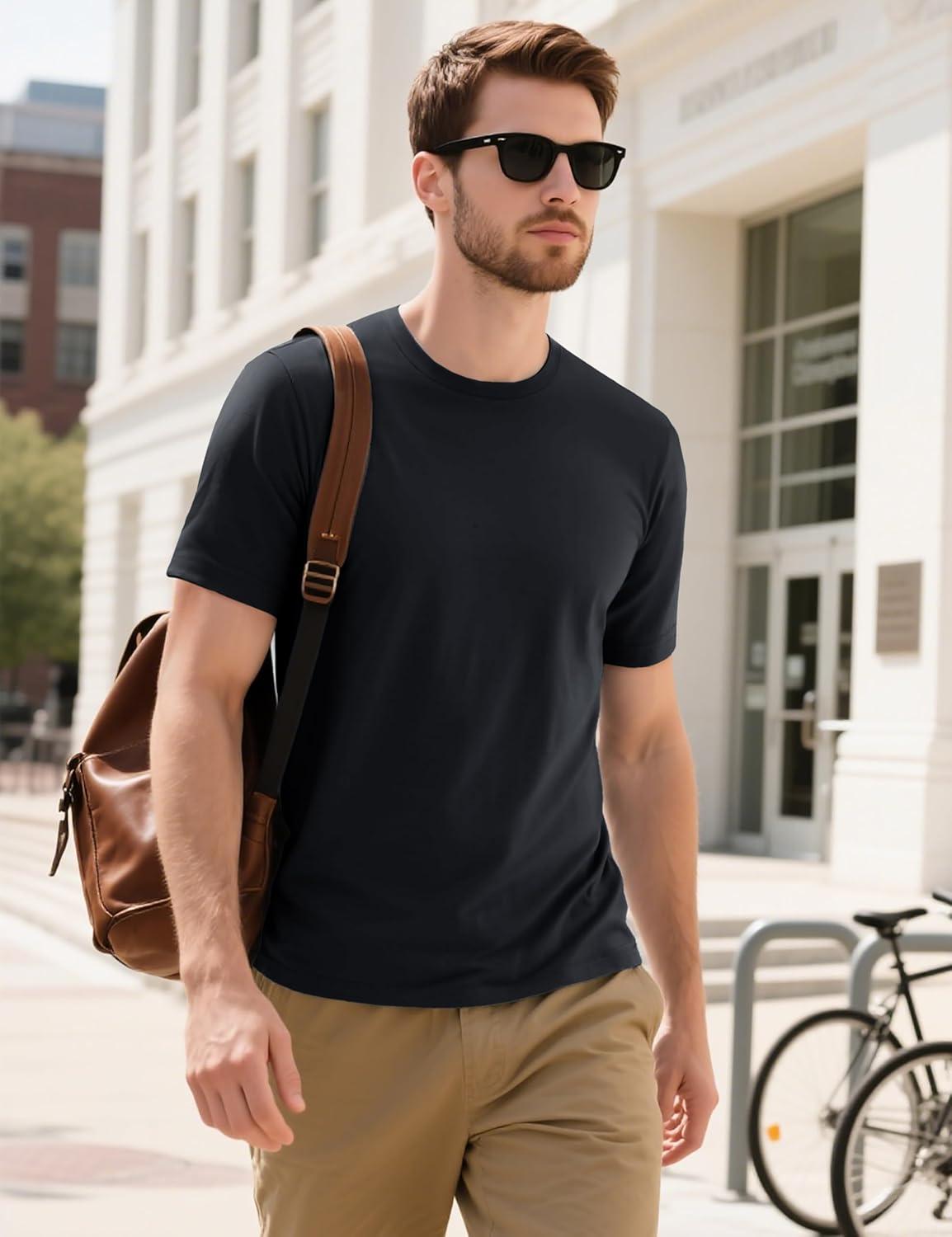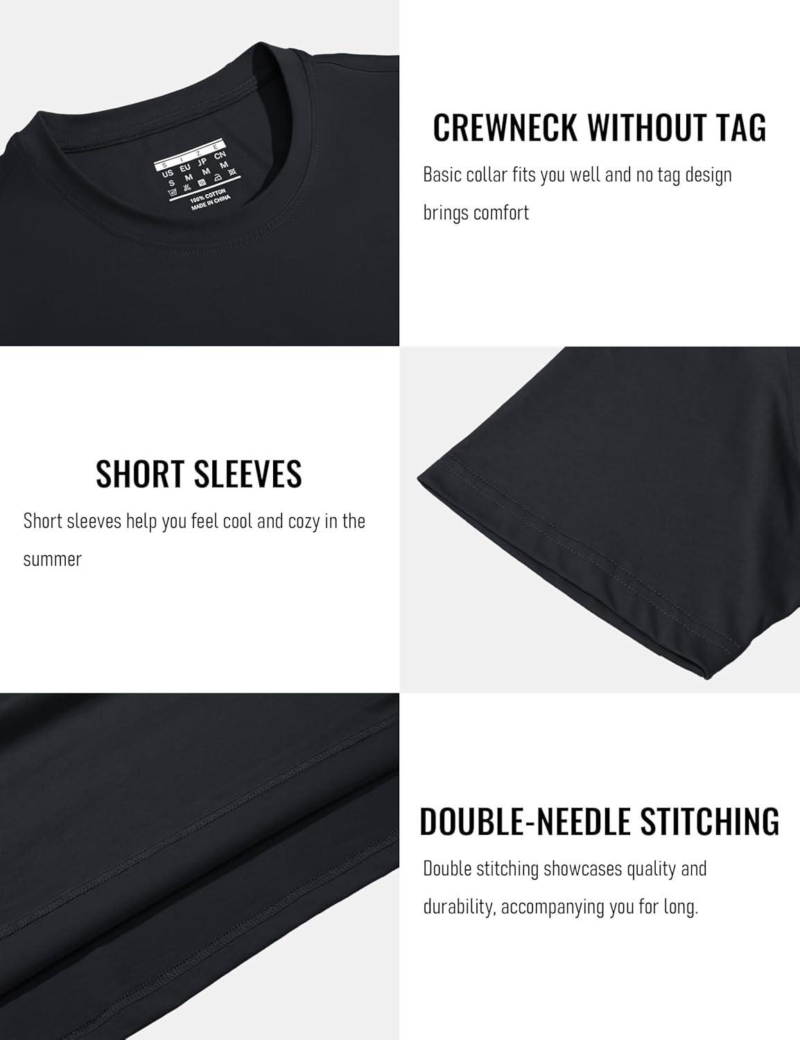 MAGCOMSEN Men’s T-Shirts Short Sleeve Cotton Crew Neck Soft Breathable T Shirts Casual Plain Classic Summer Tees(Black)