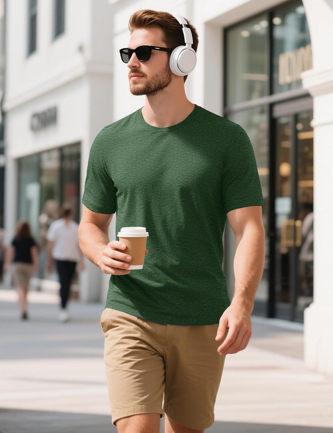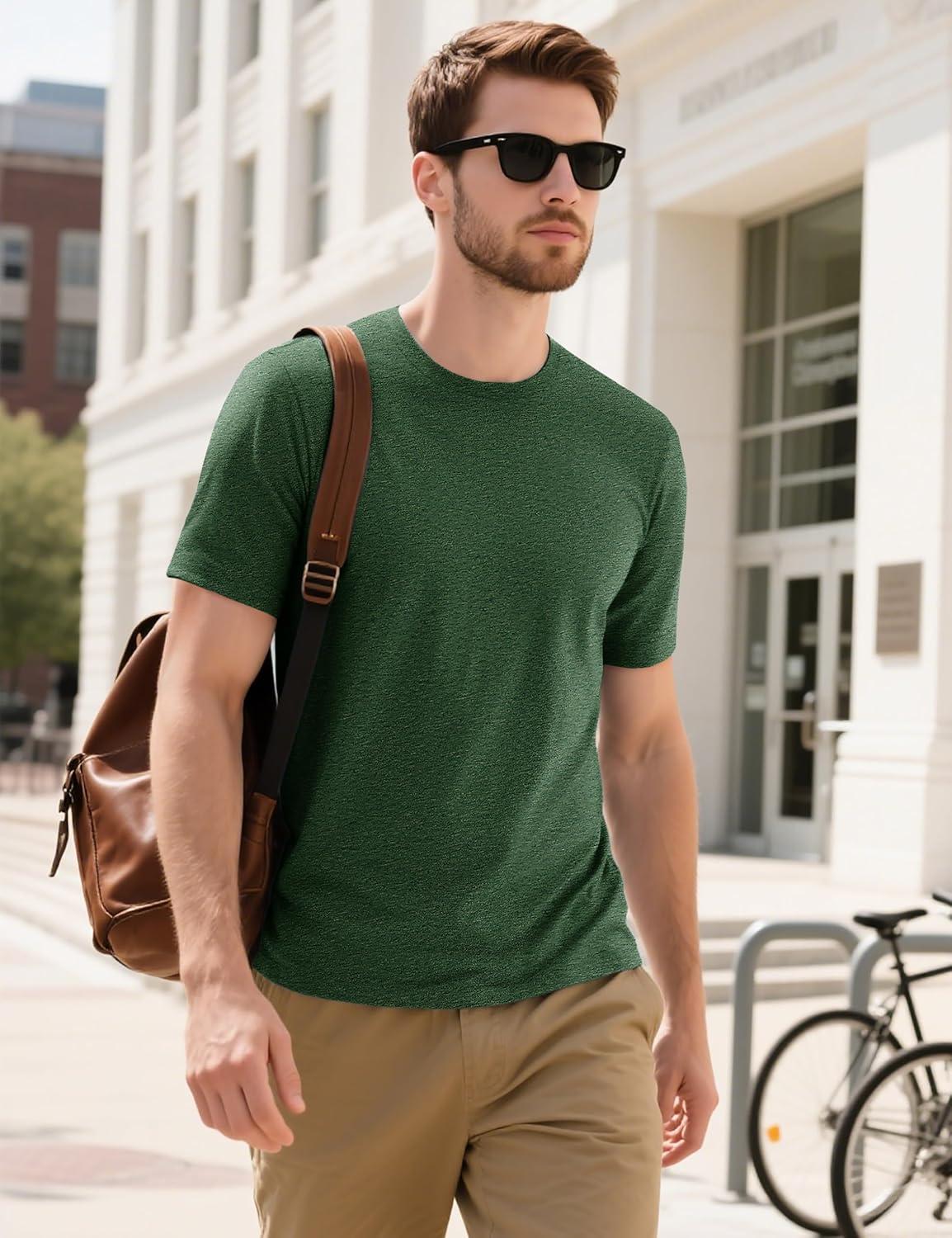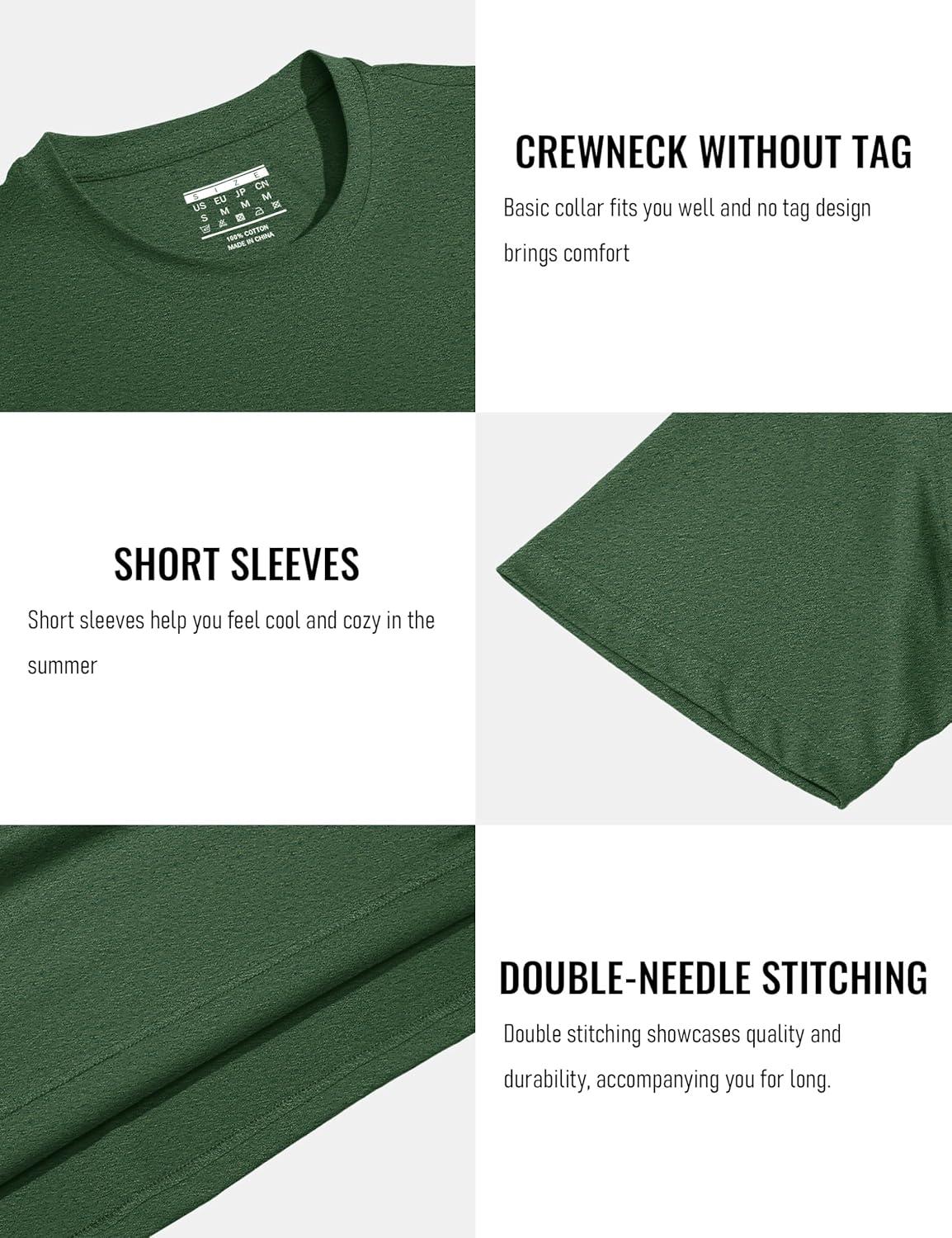 MAGCOMSEN Men’s T-Shirts Short Sleeve Cotton Crew Neck Soft Breathable T Shirts Casual Plain Classic Summer Tees(Dark Green)