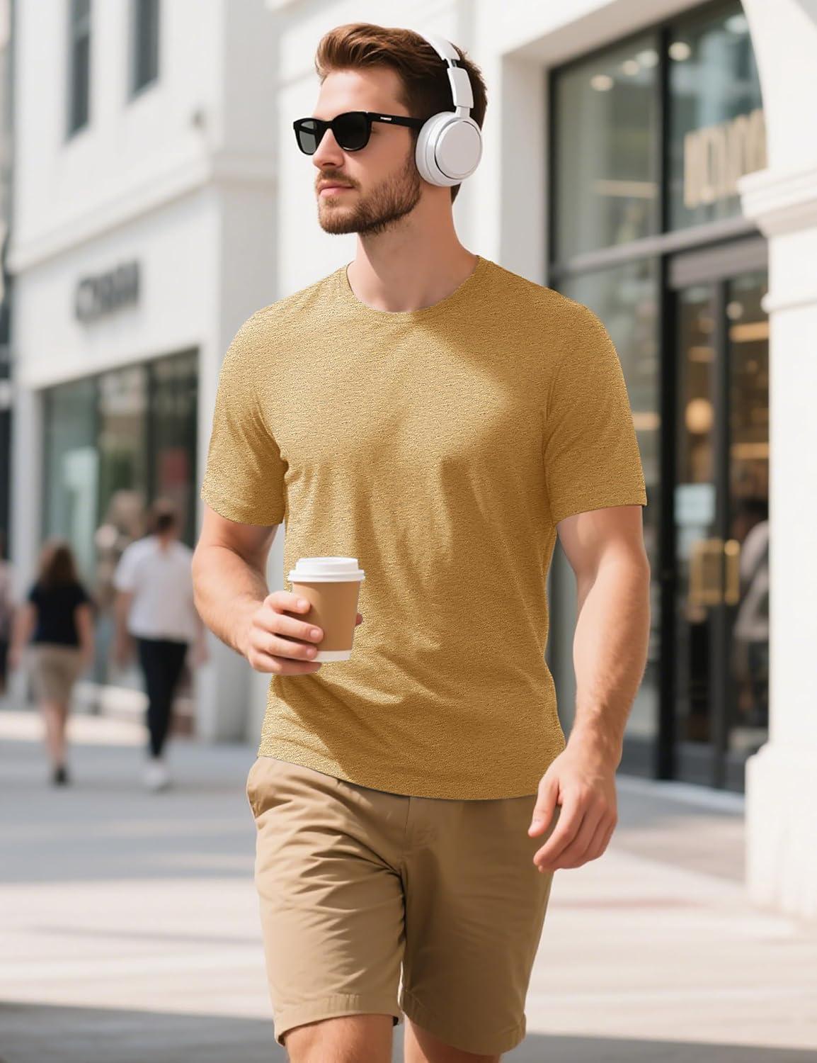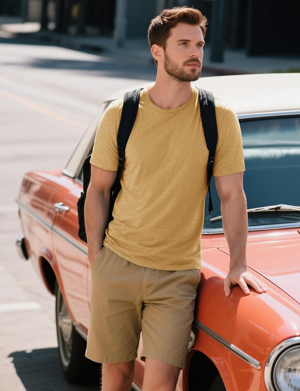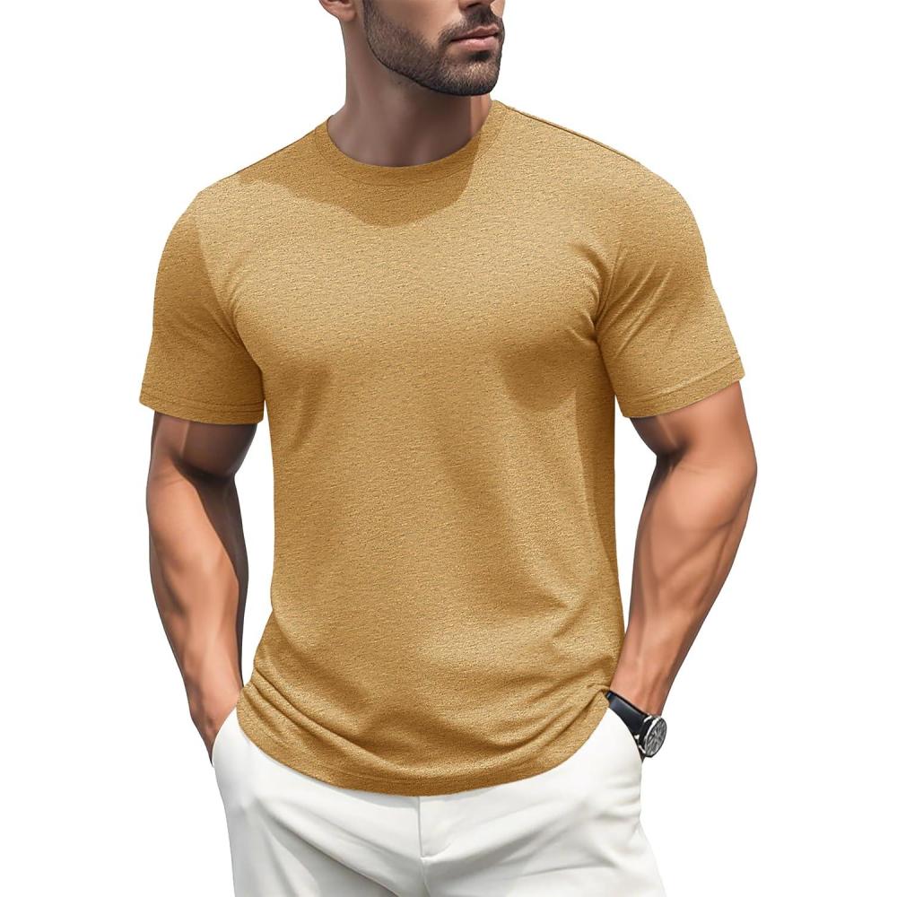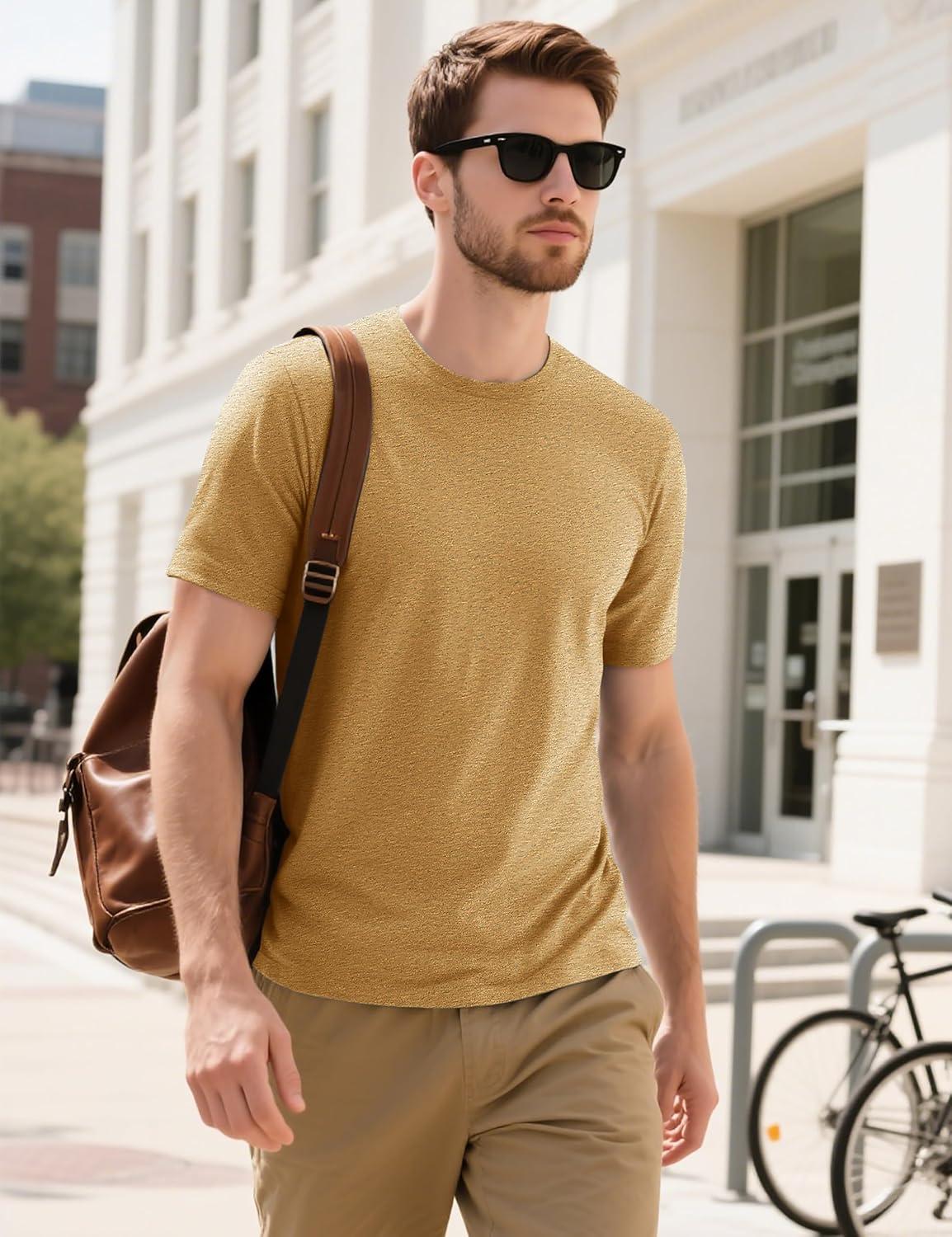 MAGCOMSEN Men’s T-Shirts Short Sleeve Cotton Crew Neck Soft Breathable T Shirts Casual Plain Classic Summer Tees(Earthy Yellow)