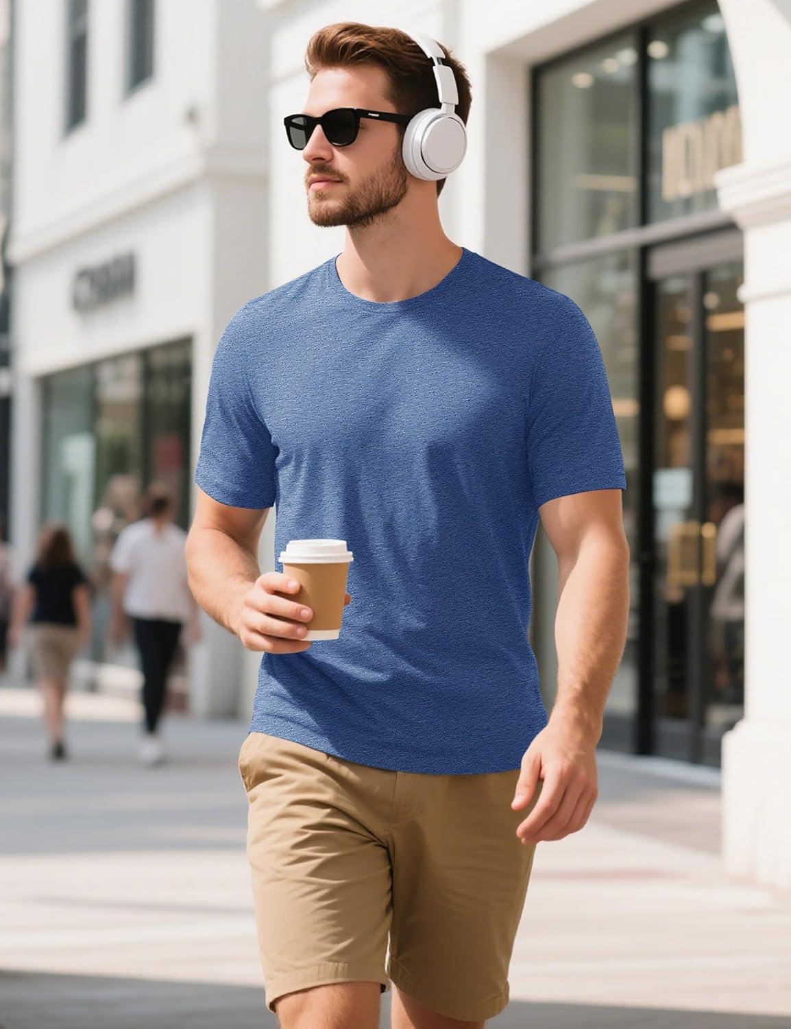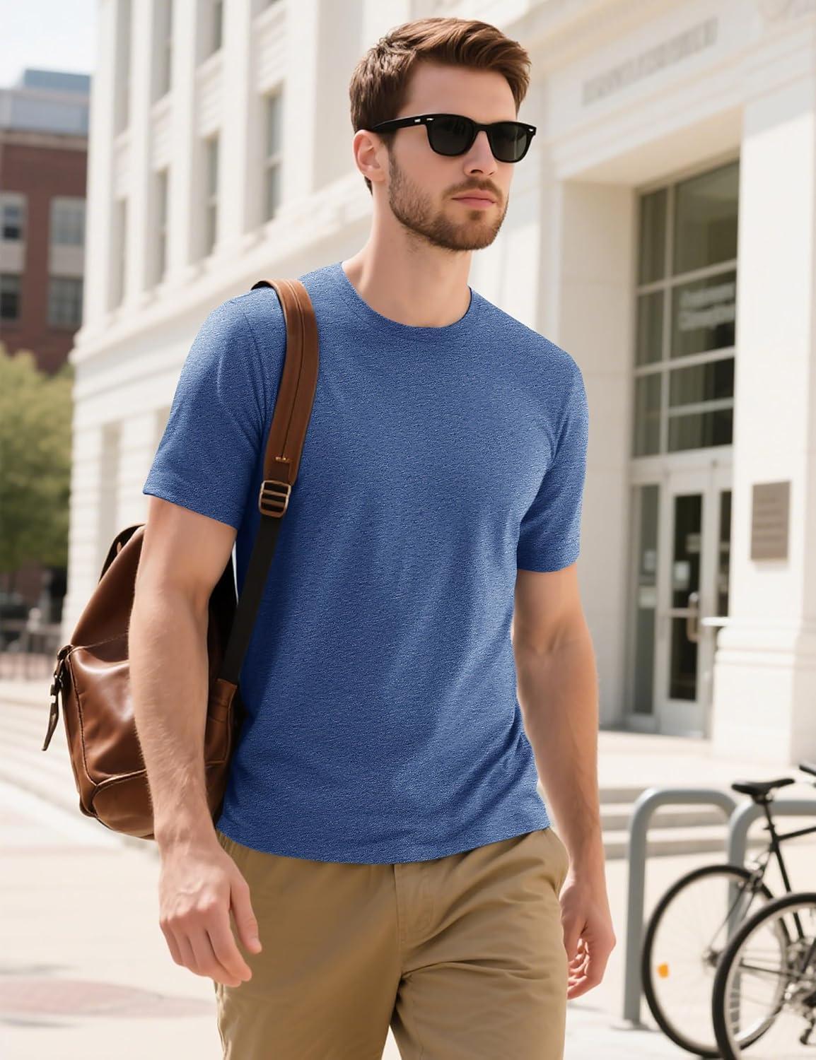 MAGCOMSEN Men’s T-Shirts Short Sleeve Cotton Crew Neck Soft Breathable T Shirts Casual Plain Classic Summer Tees(Grey Blue)