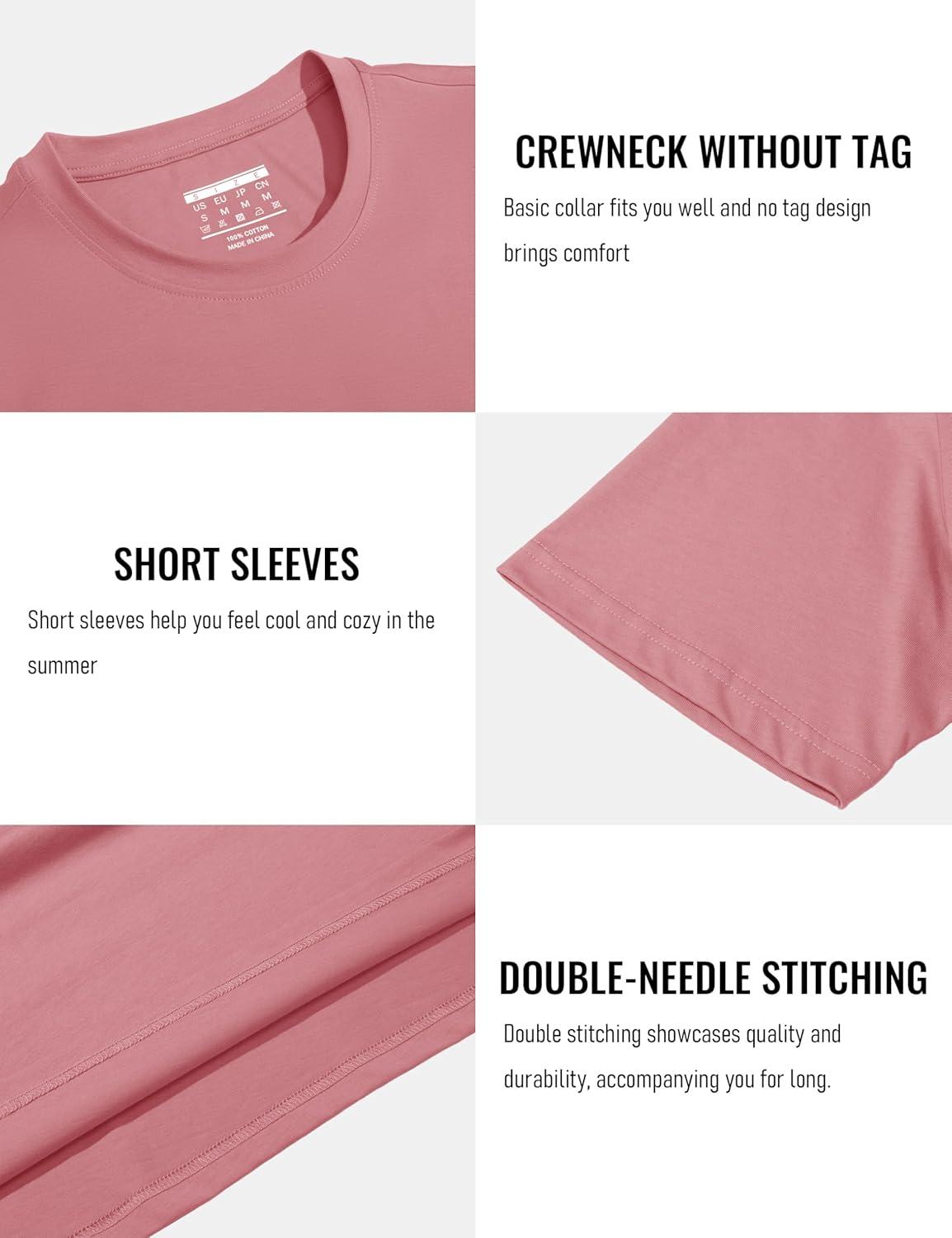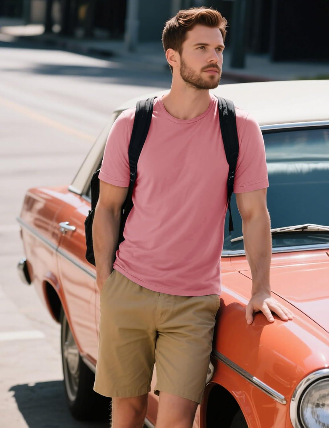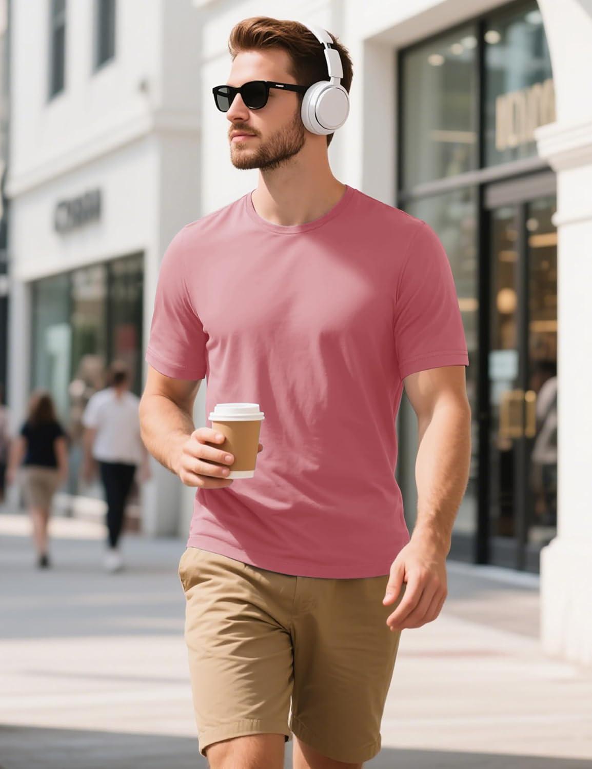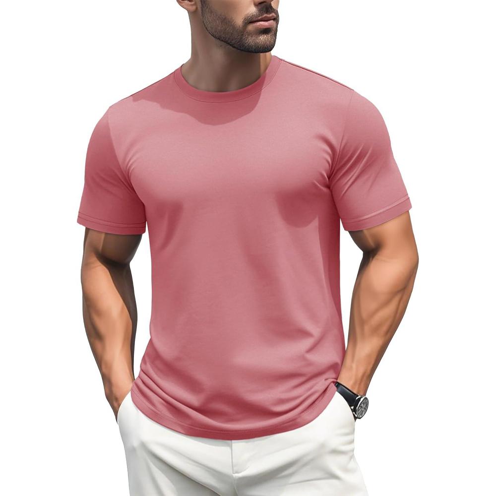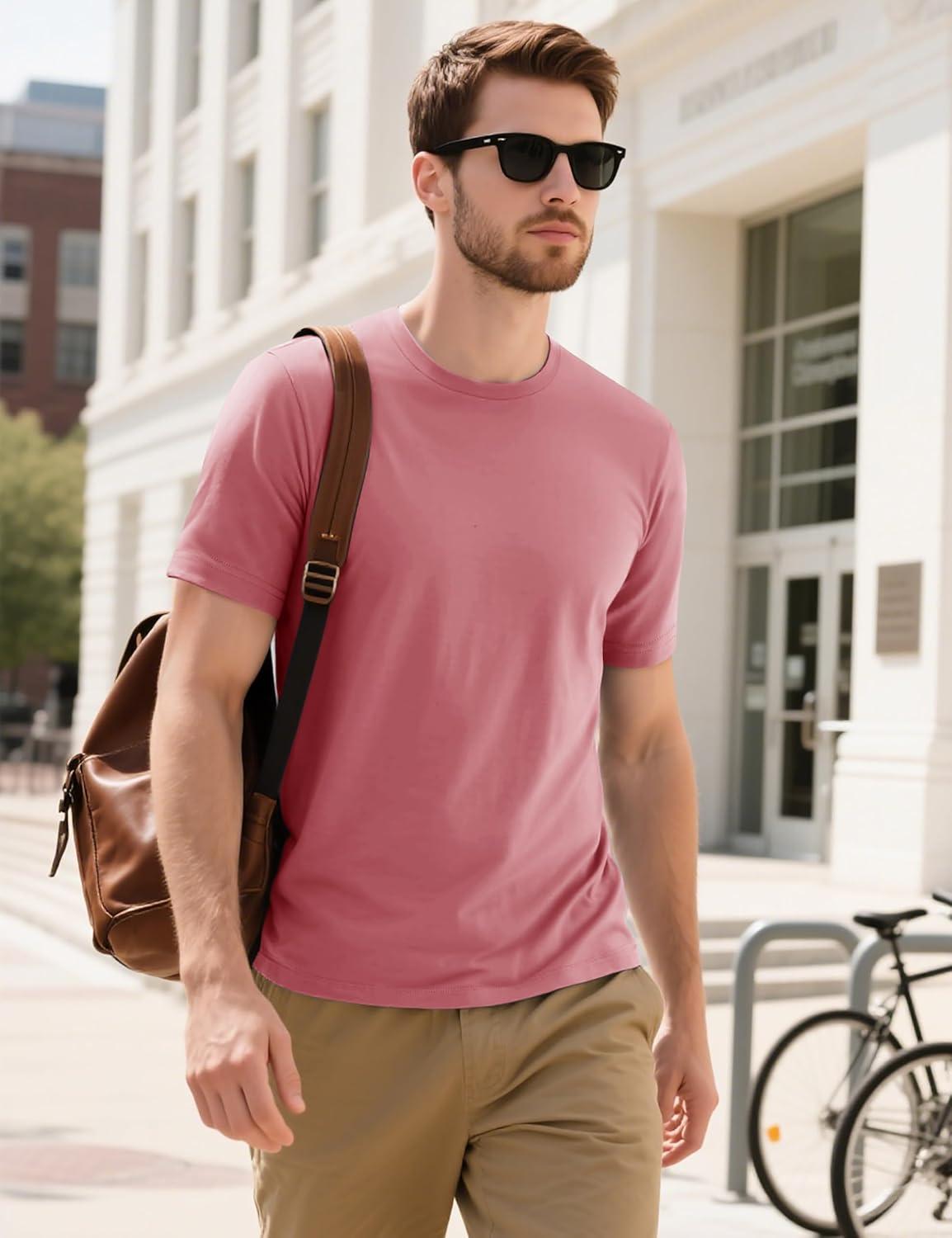 MAGCOMSEN Men’s T-Shirts Short Sleeve Cotton Crew Neck Soft Breathable T Shirts Casual Plain Classic Summer Tees(Grey Pink)