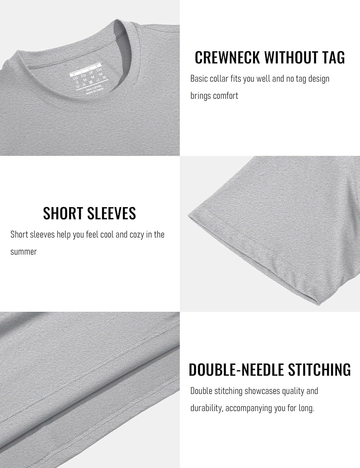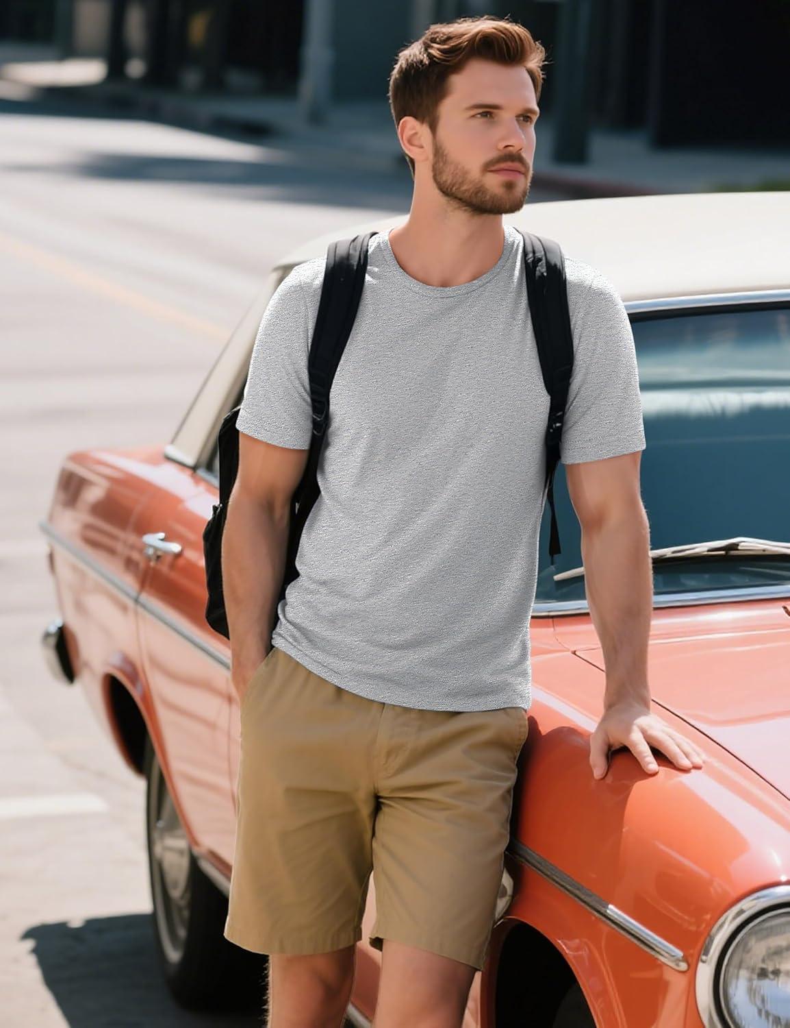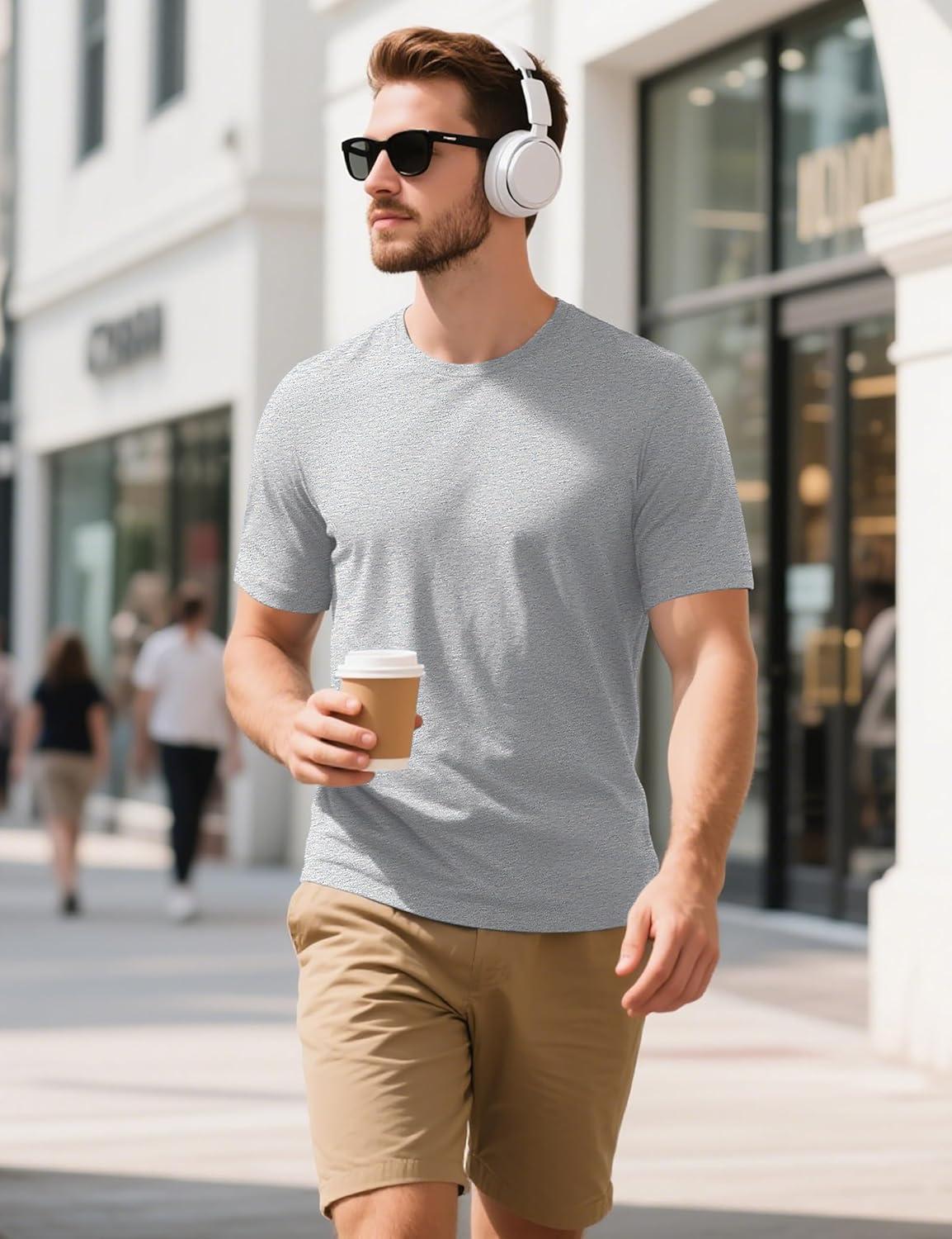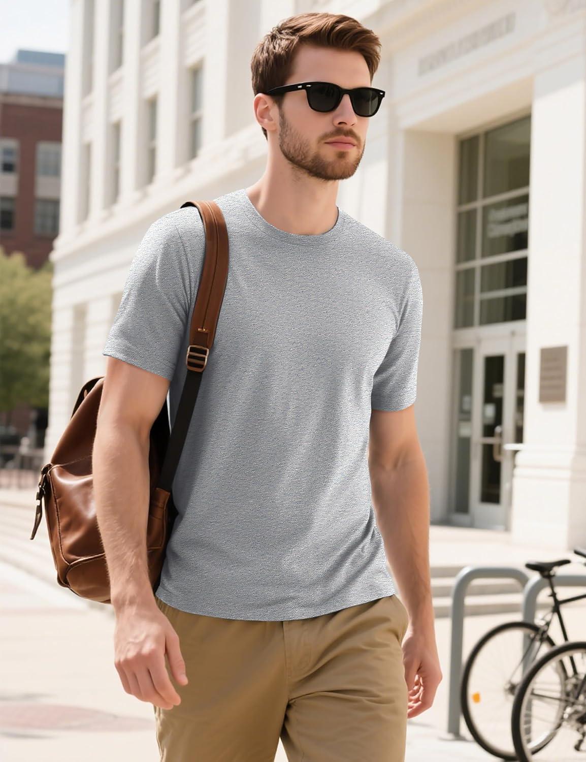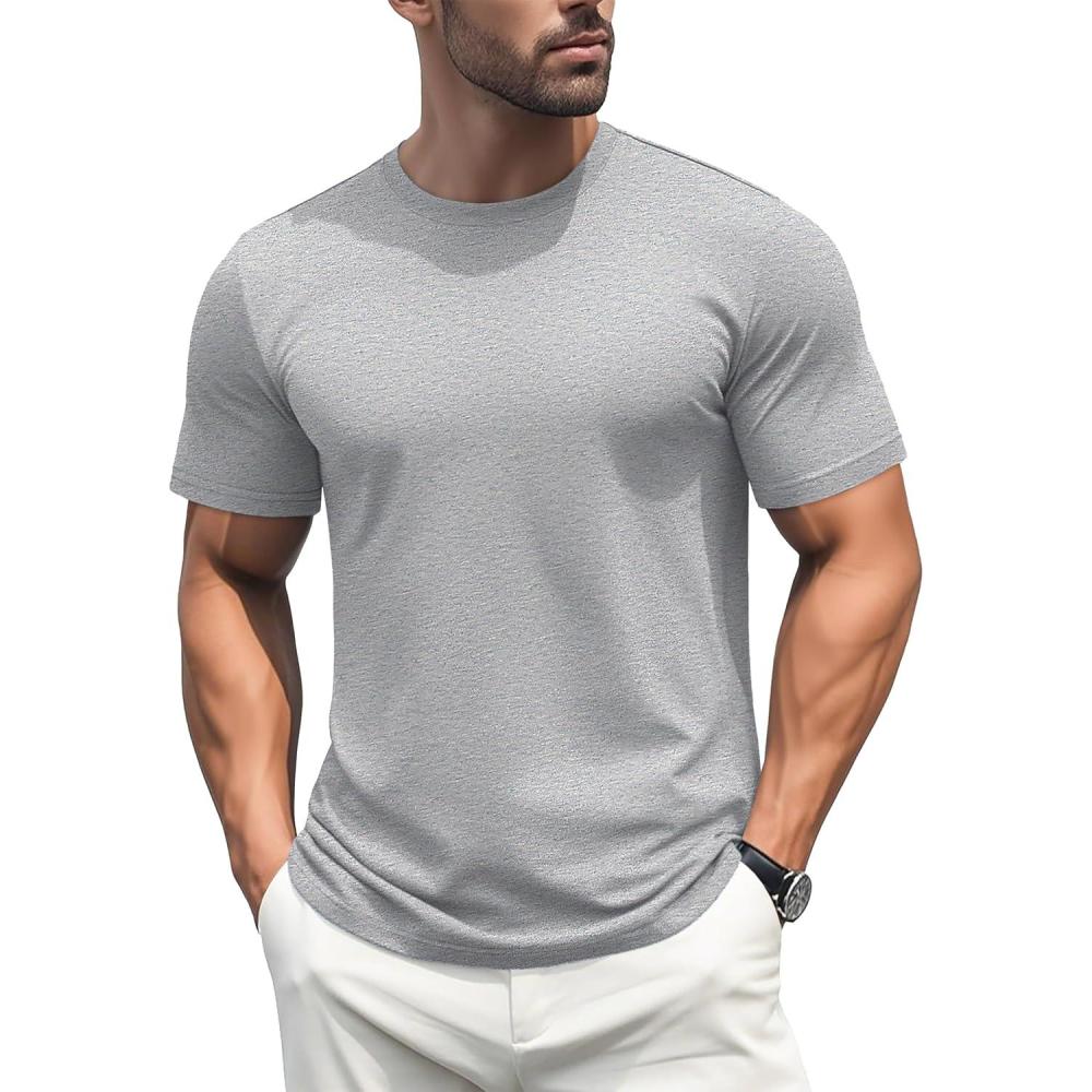 MAGCOMSEN Men’s T-Shirts Short Sleeve Cotton Crew Neck Soft Breathable T Shirts Casual Plain Classic Summer Tees(Light Grey)